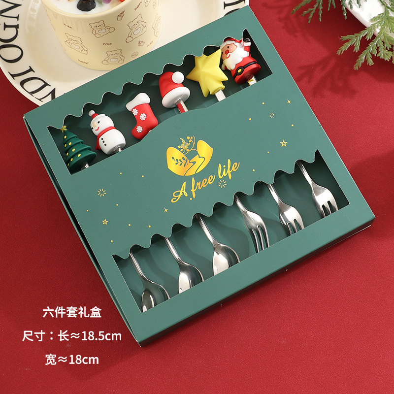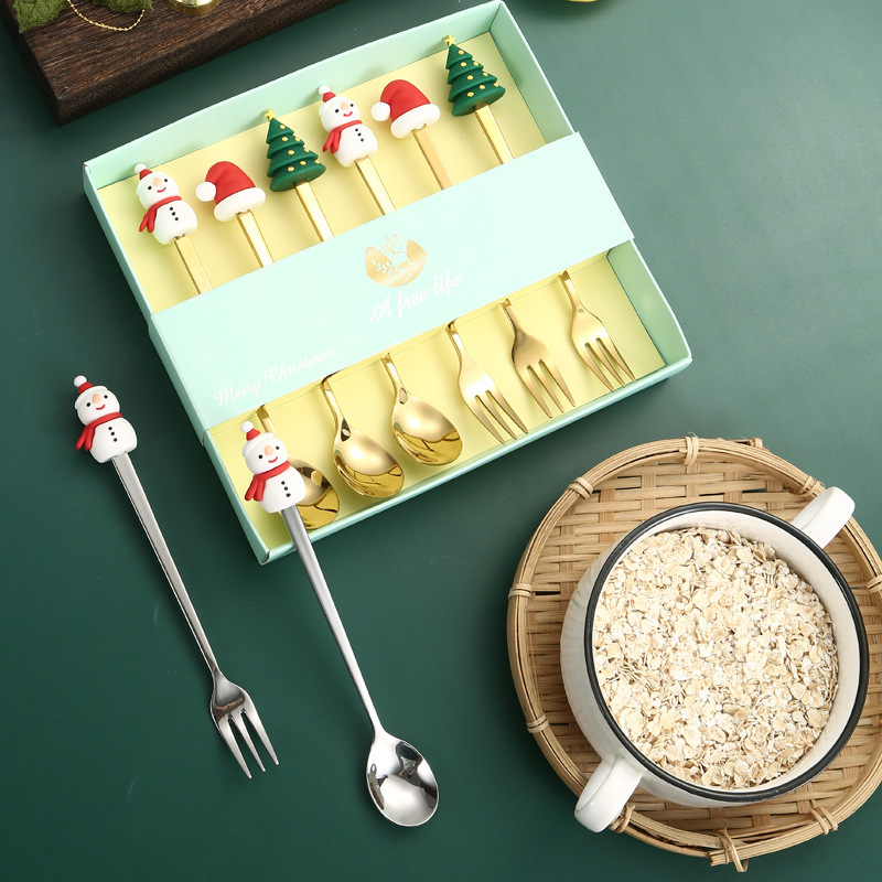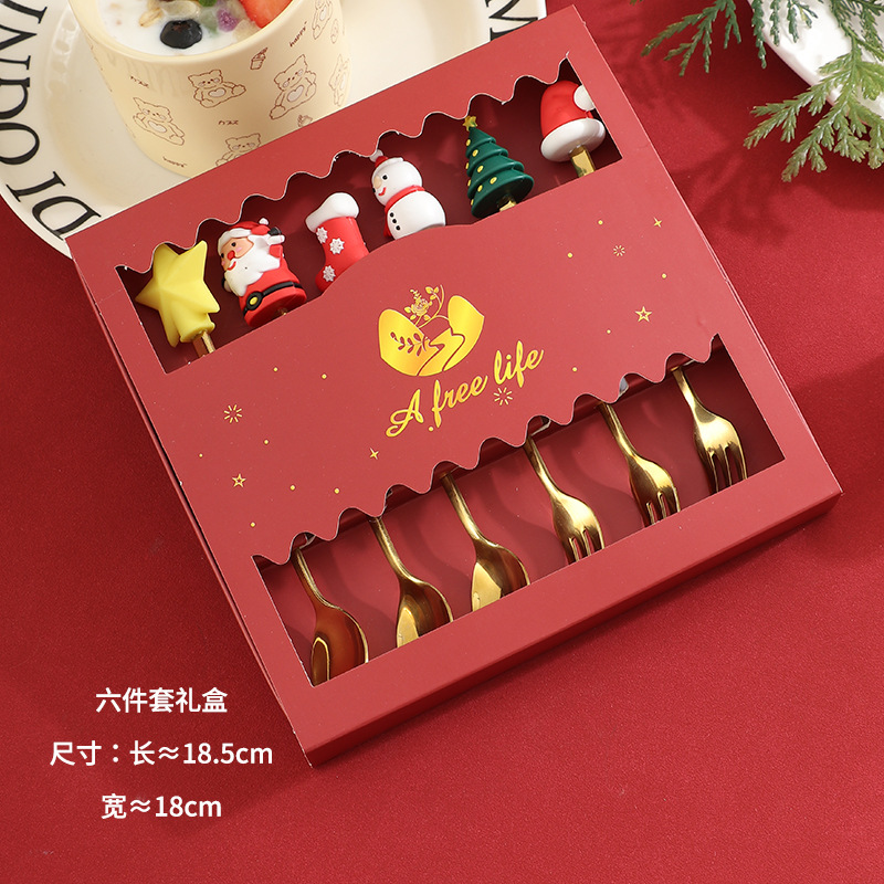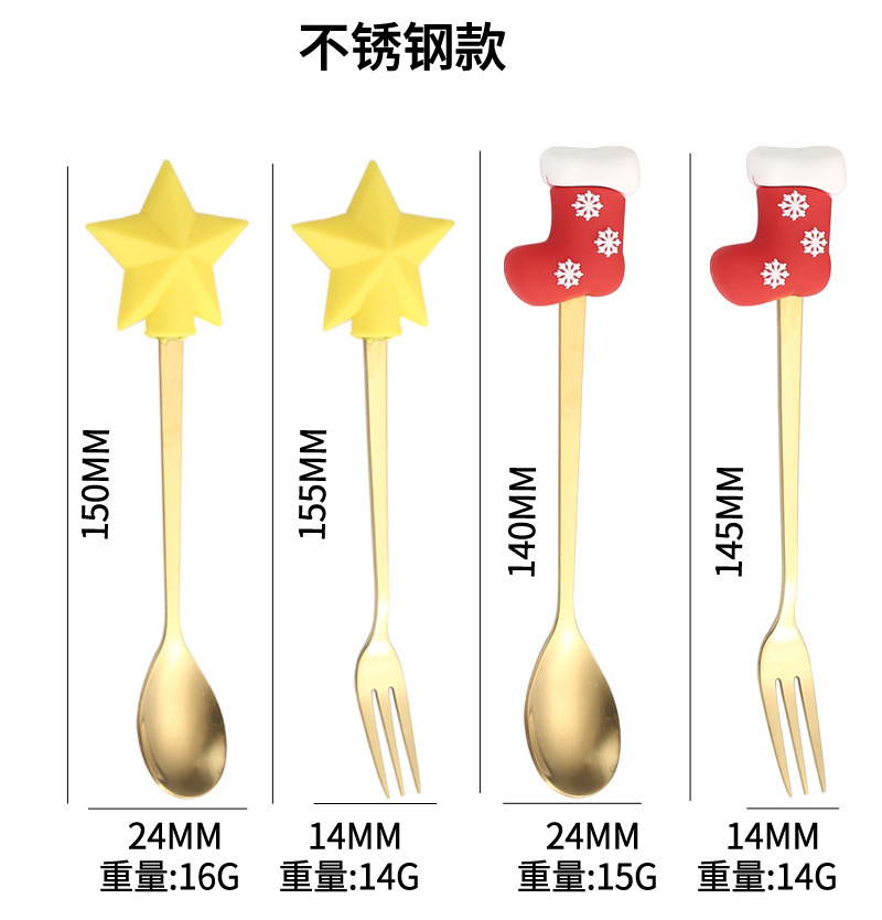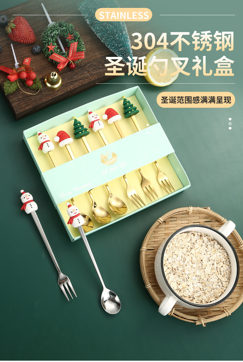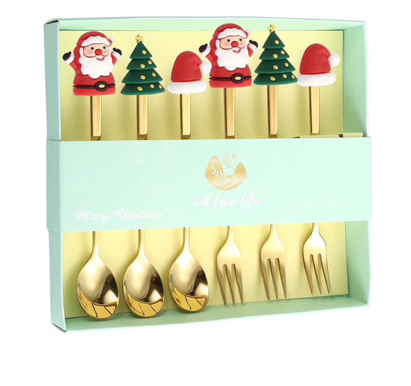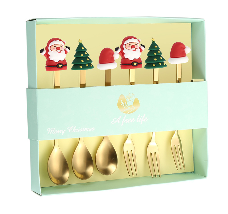 Набор подарочных ложек и вилок из нержавеющей стали для рождественского экспорта, креативный стиль ins, высококачественная десертная вилка для перемешивания