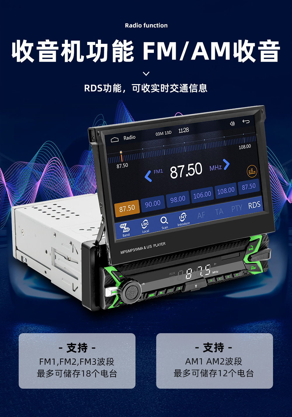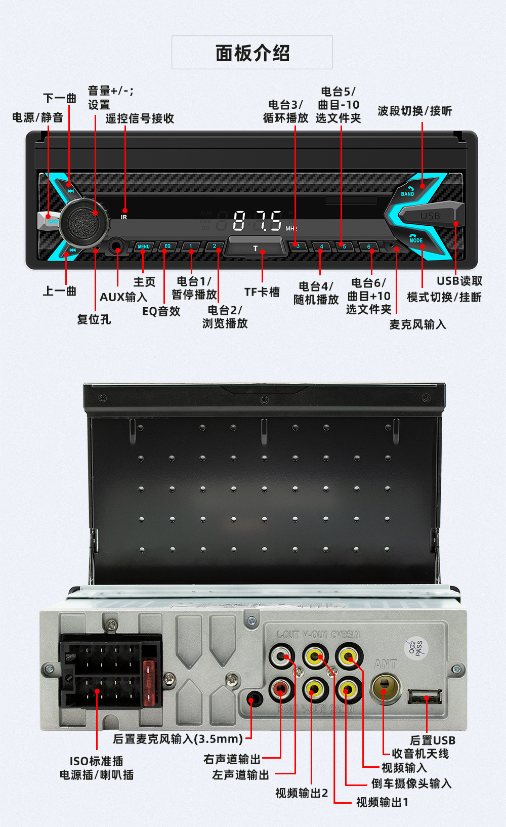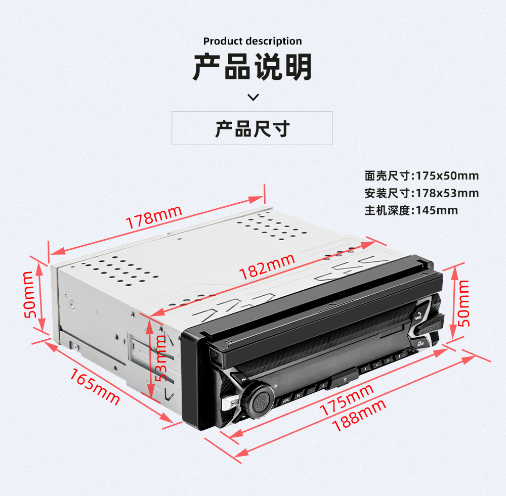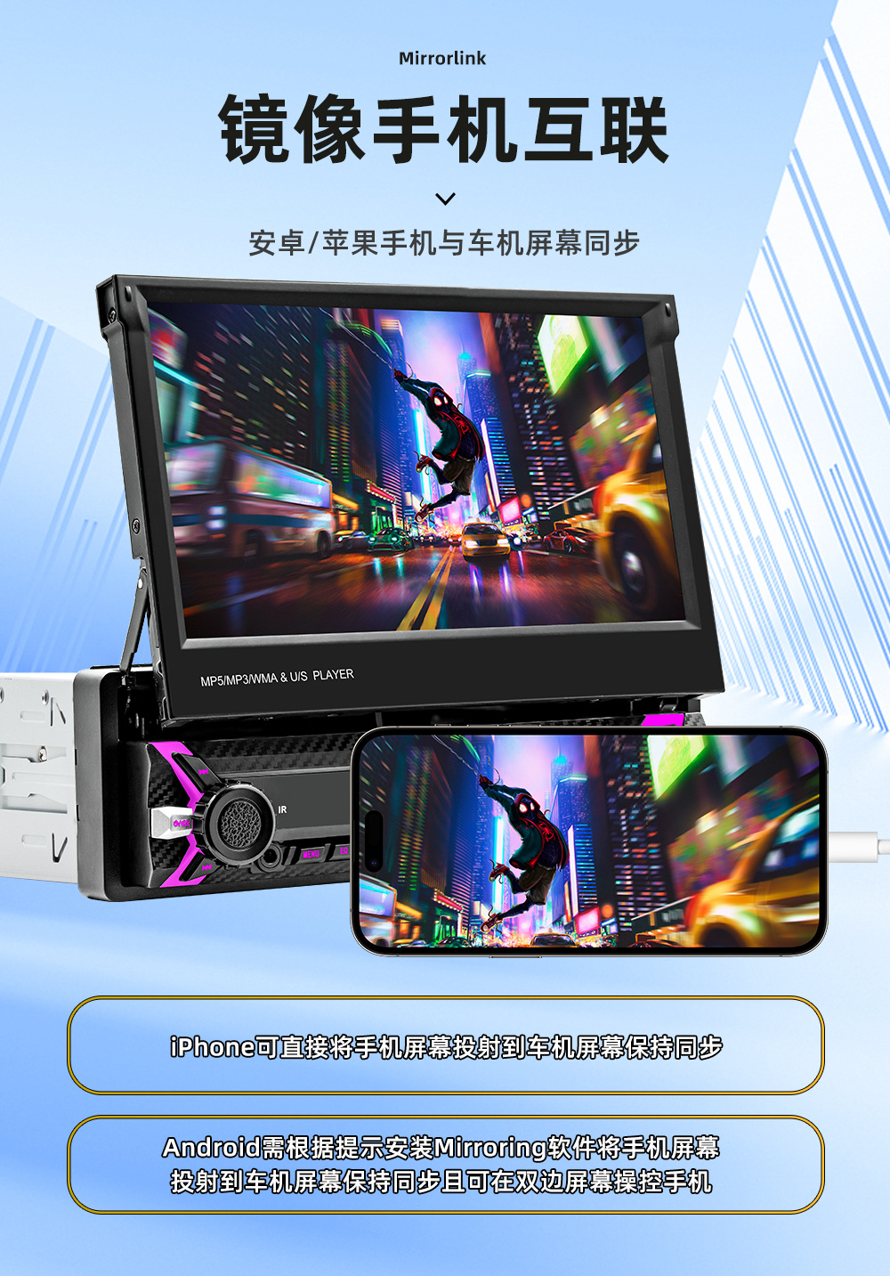 类型:车载MP5-手动伸缩屏 (可选配电动伸缩)