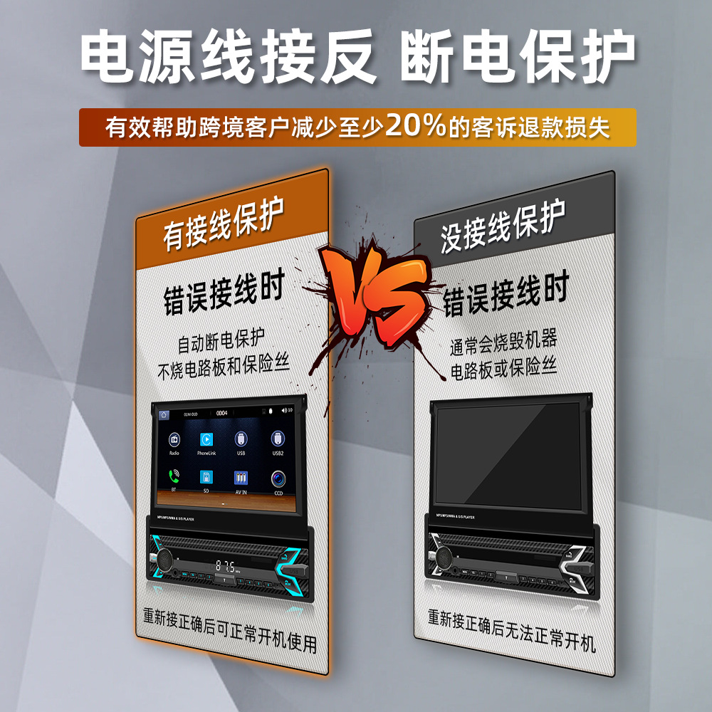 ♥接线保护功能直接帮跨境客户减少至少20%客诉退款损失(跨境客户零售到国外,客人自己安装接线,正负极分不清接错时候正常会直接烧坏机器主板或者保险丝,导致客诉退货或者差评,我司最新研发此产品电源线随便接N次都不会烧机器和保险丝,直到客户接对为止)