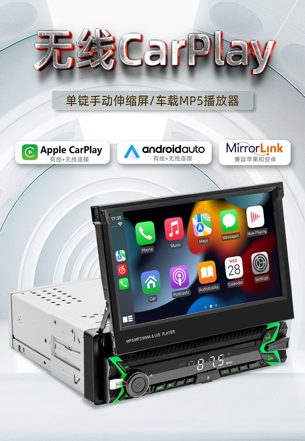 无线carplay单锭车载MP5