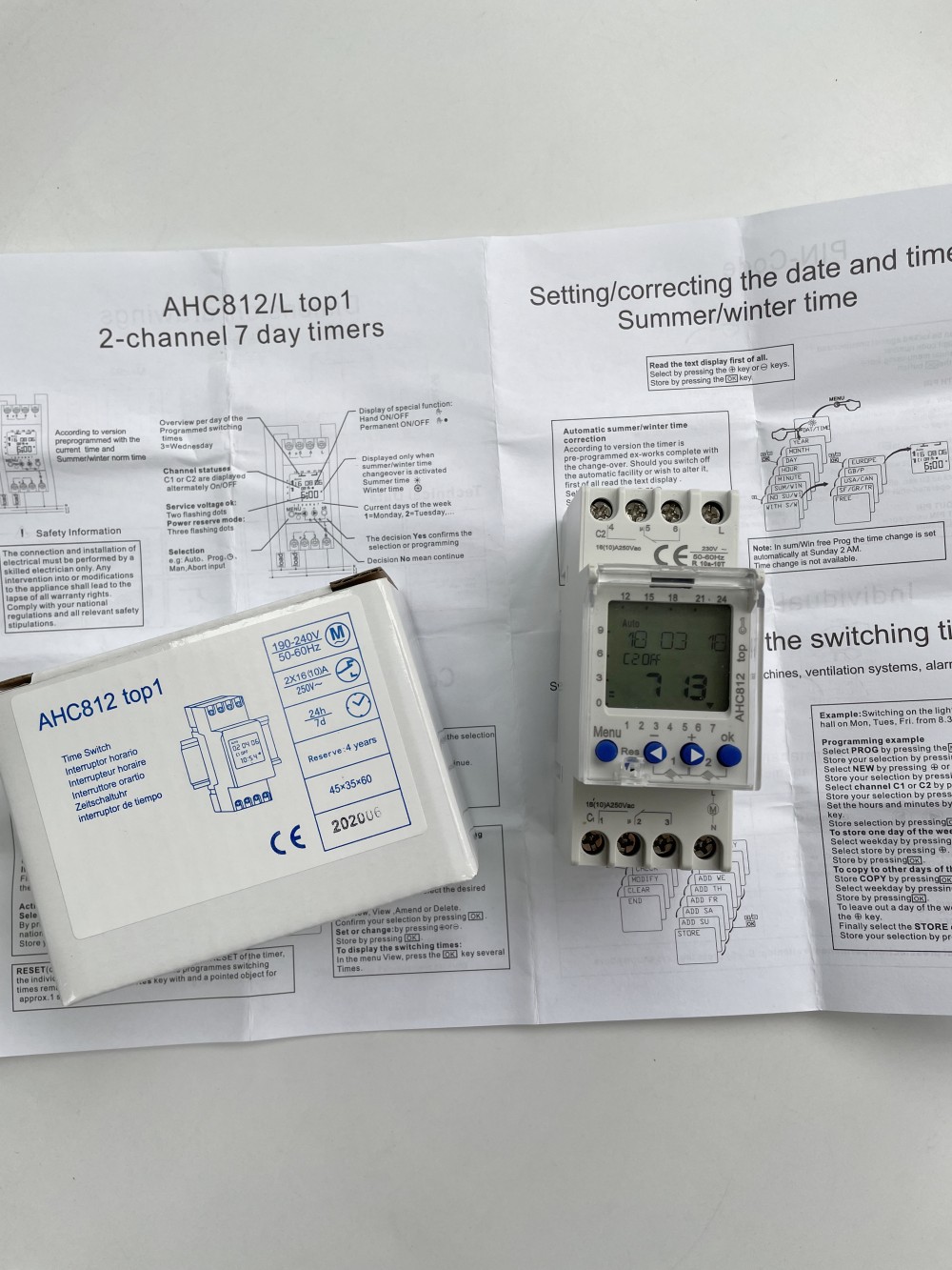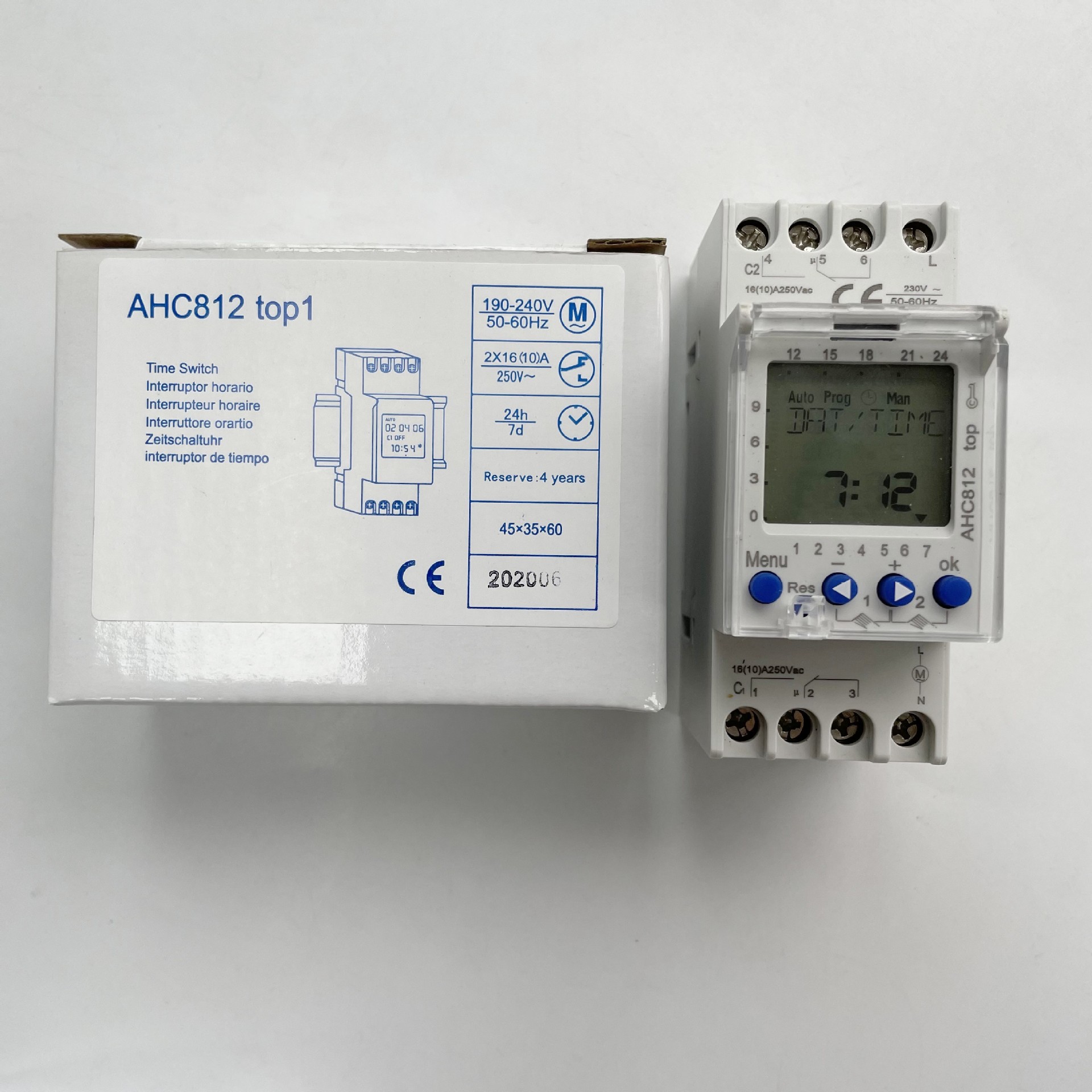 The AHC810/812 Din rail weekly program digital time switch have a wide screen, display more information, and unit have seven kinds of language to choice.