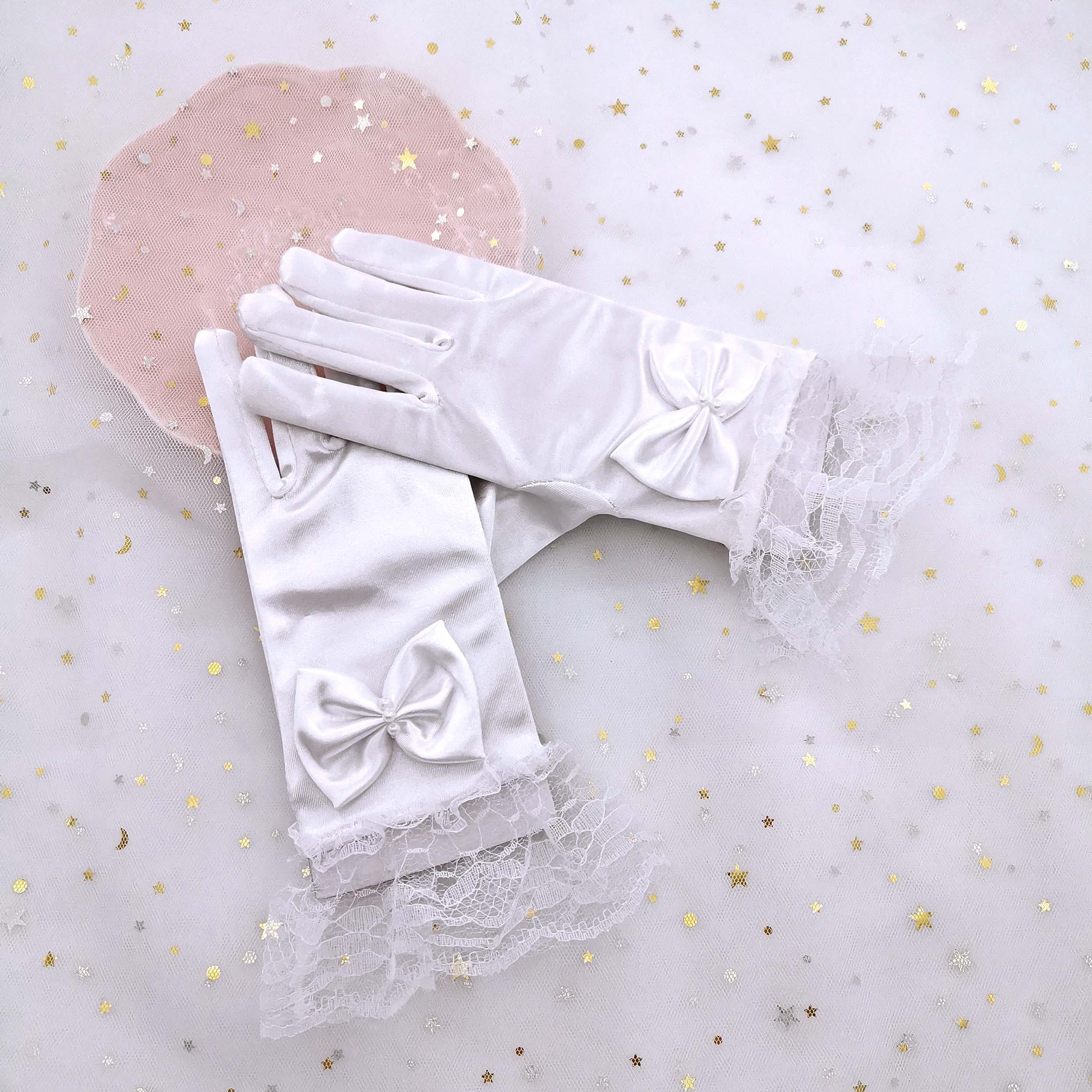Перчатки для девочек, кружевной атласный бант, эластичное детское платье для девочек-цветочниц, танцевальный этикет, внешняя торговля, трансграничная