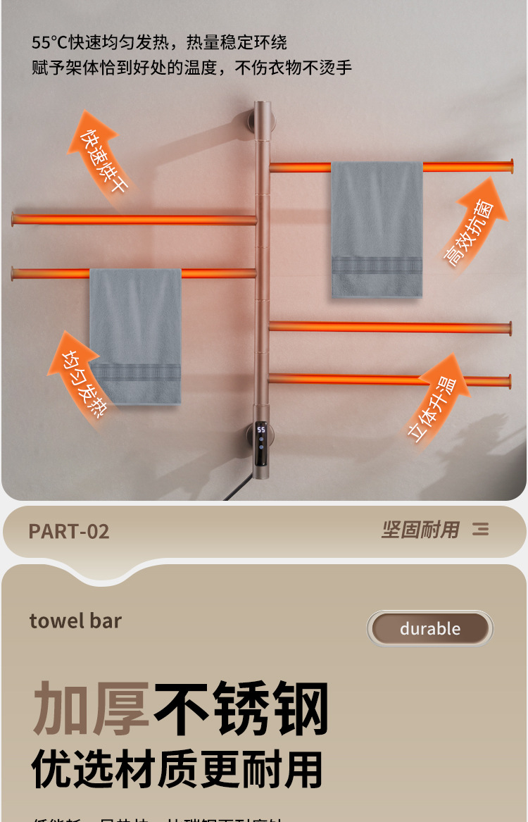 Нержавеющая сталь интеллектуальная электрическая подогреваемая вешалка для полотенец может вращаться ванная комната без перфорации сушка для отопления трансграничная амазонка