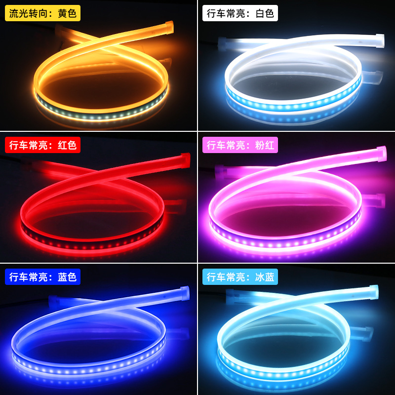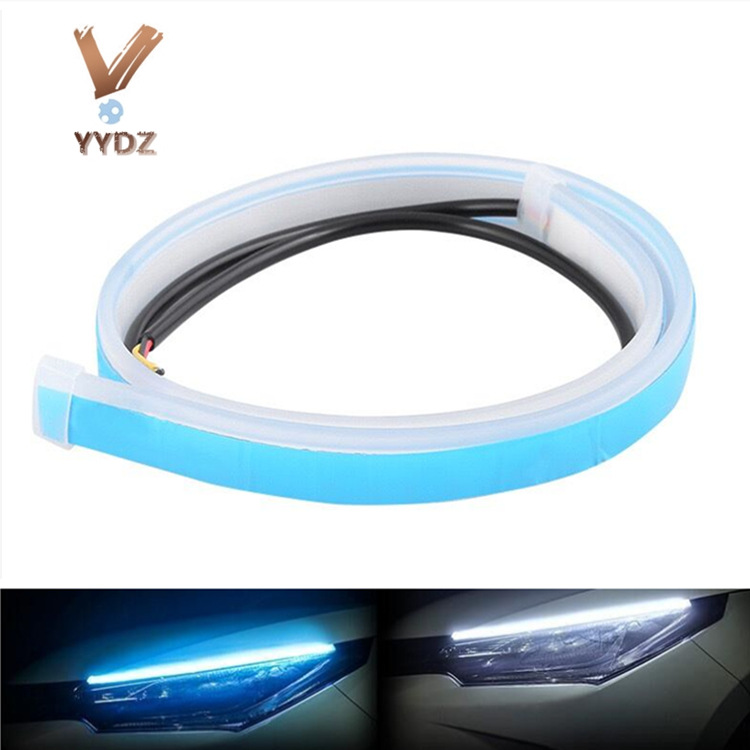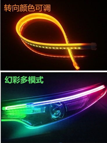 Оптовые Автомобильные светодиодные ультратонкие дневные ходовые огни двухцветные интегрированные рулевые фары световая направляющая полоса украшения модифицированные стримерные огни