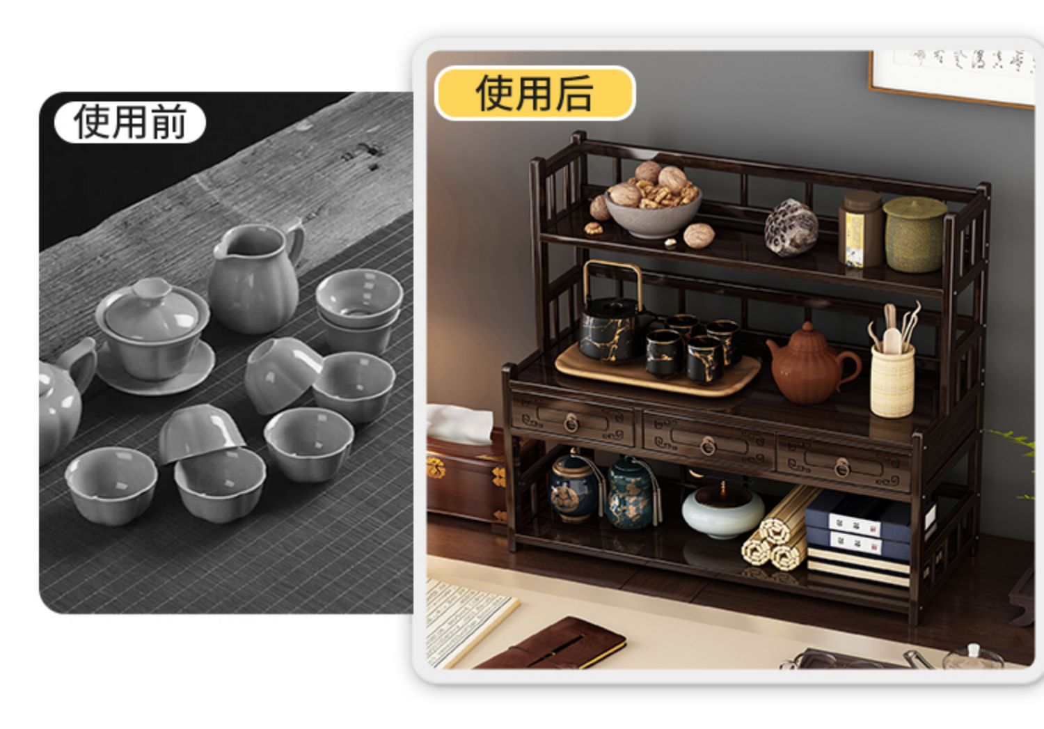 Настольная антикварная стойка Маленький чайный столик Стеллаж для чайного набора Стеллаж для хранения Настольная чайная чаша Чайные банки Стеллаж для хранения Стеллаж для размещения