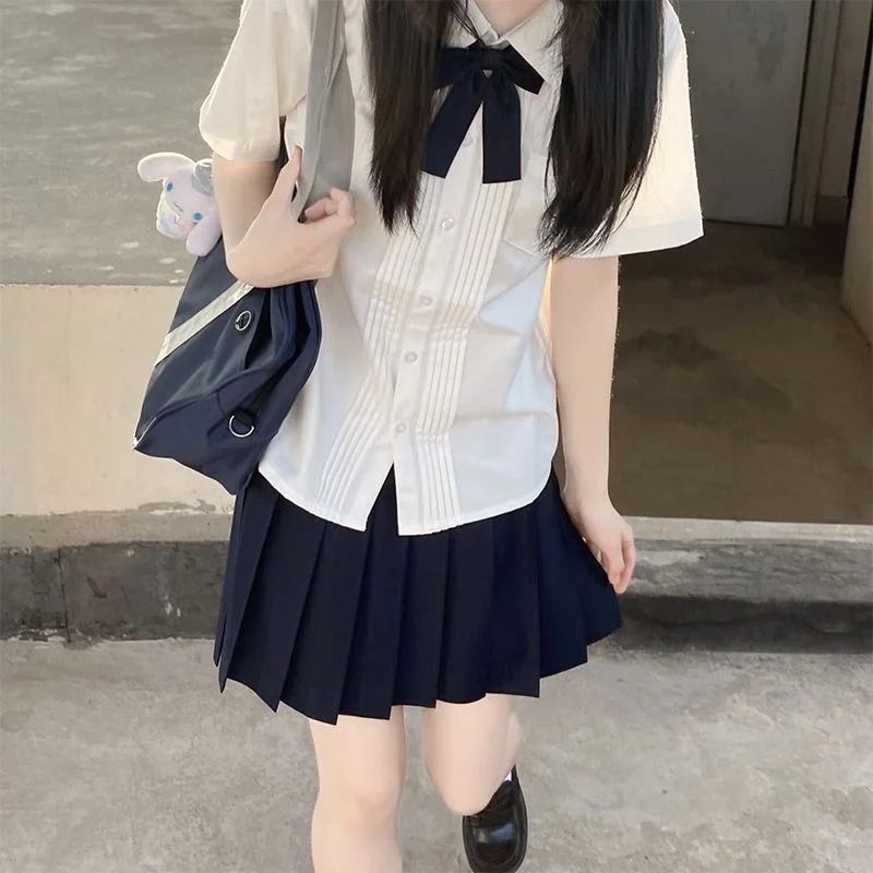 JK Униформа блузка с коротким рукавом летняя школа для колледжа акустика плиссированная рубашка белые топы