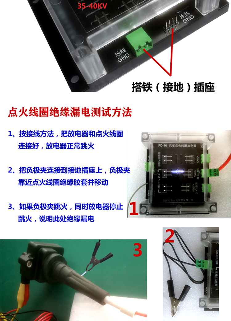Тестер производительности пробоя катушки зажигания Тестер высокого напряжения при обнаружении утечки разрядника зажигания FD-10