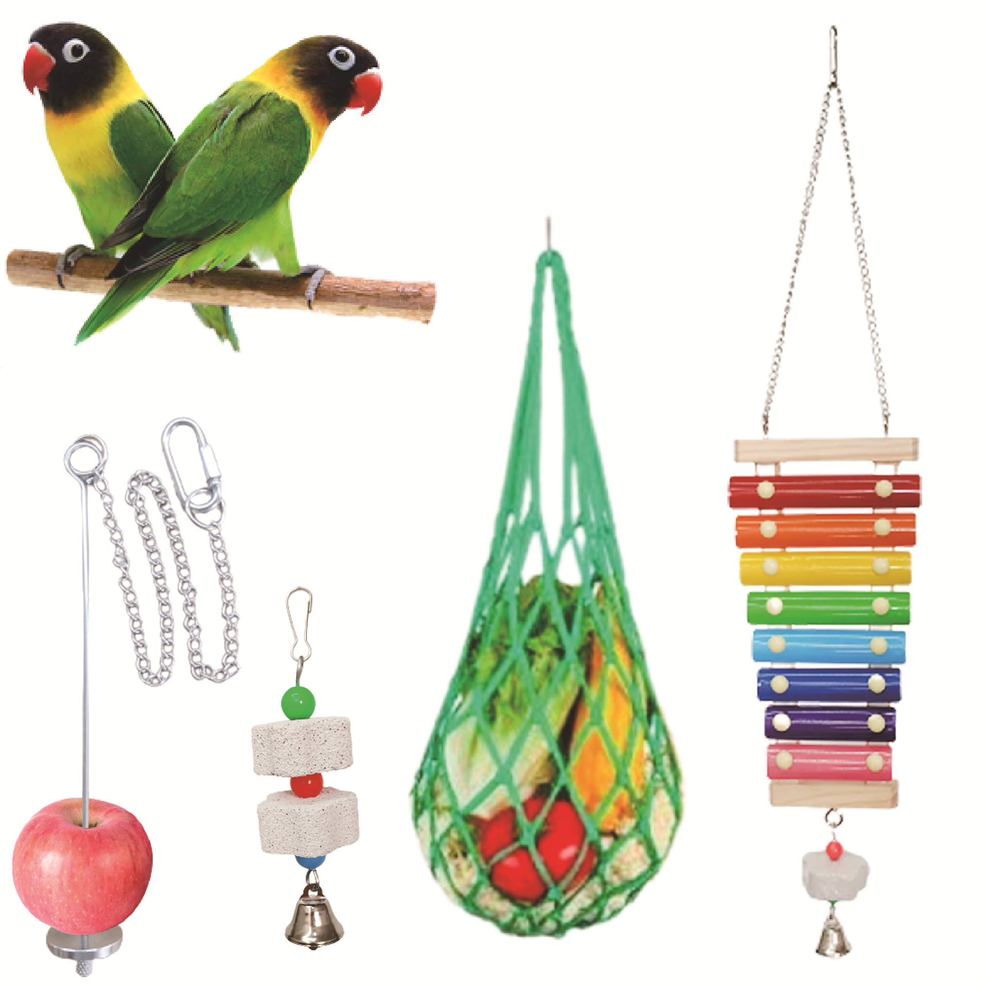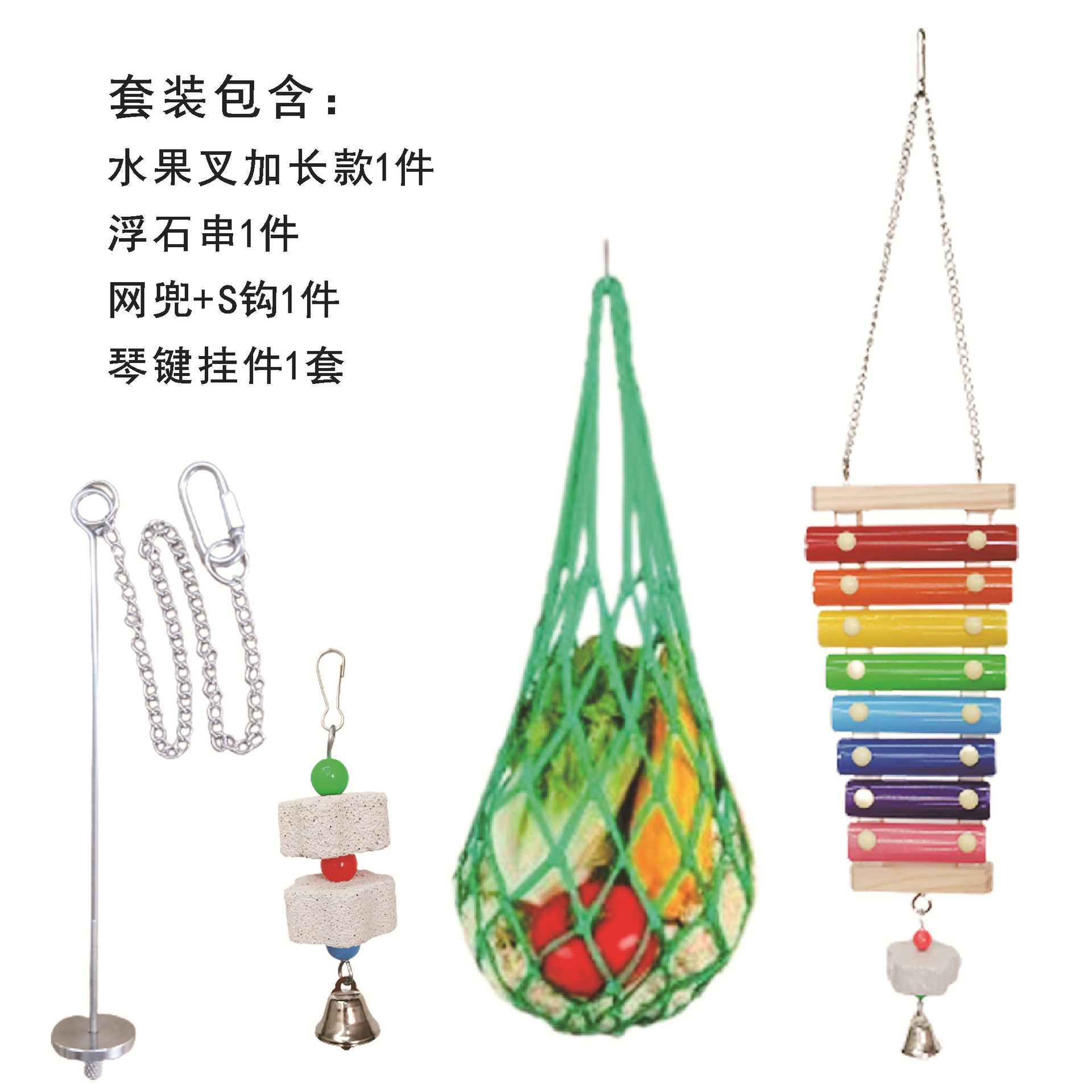 Стук по блоку ключей Игрушка Пемза Колокол Кальций Тканая сетка Сумка Вилка для фруктов Инструмент для кормления Укус Попугай Птица