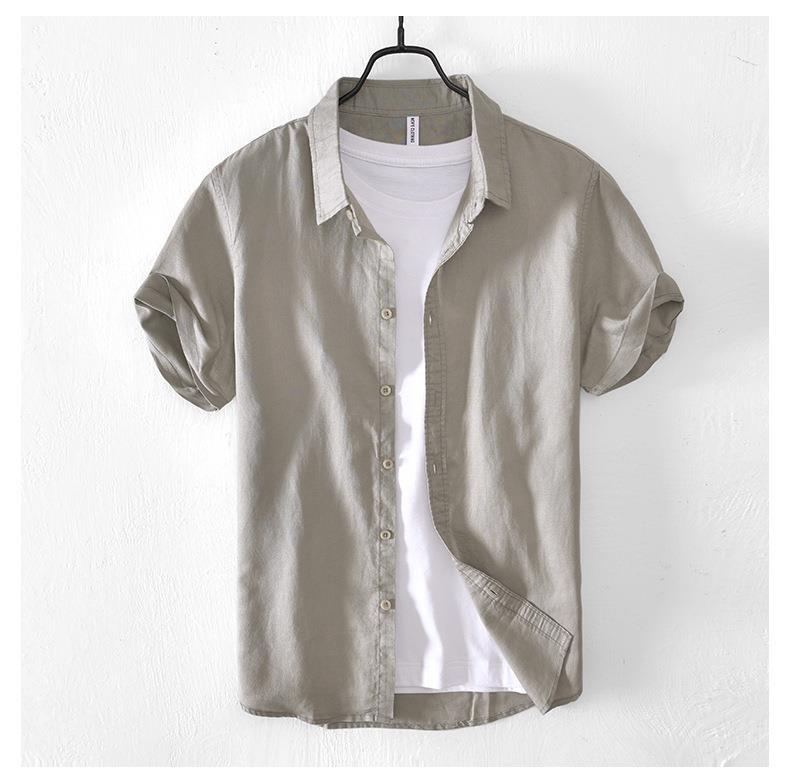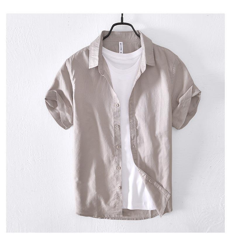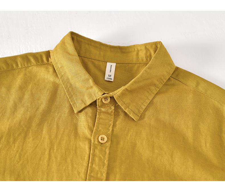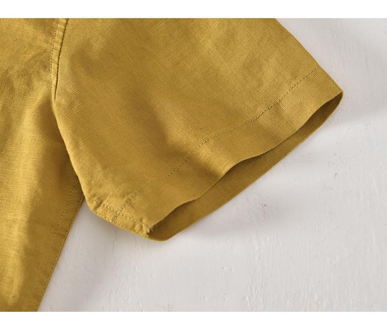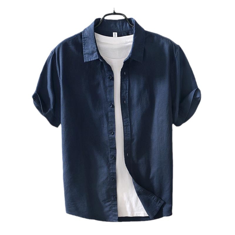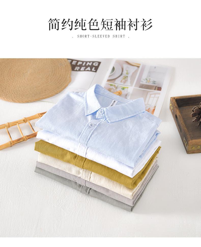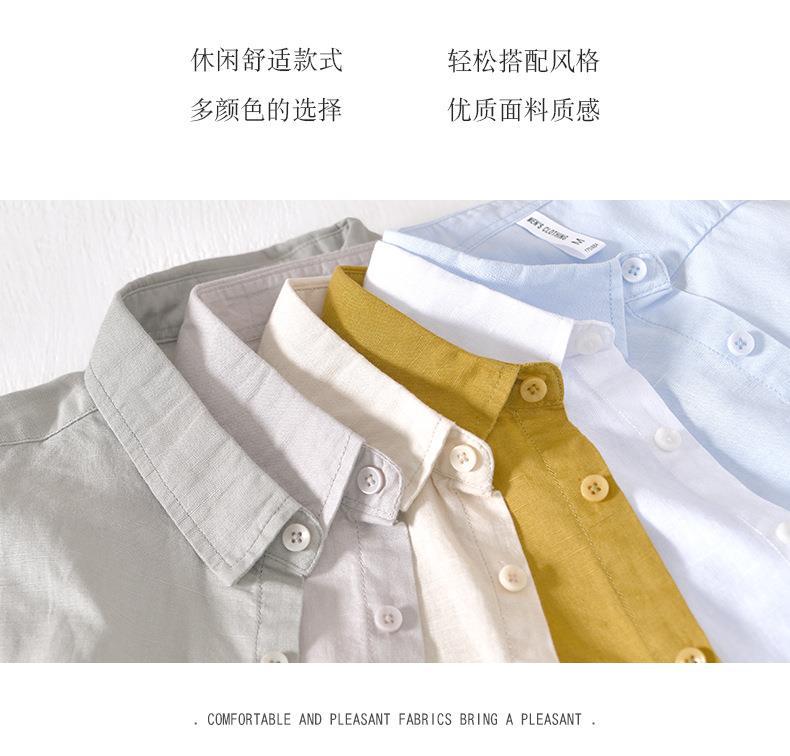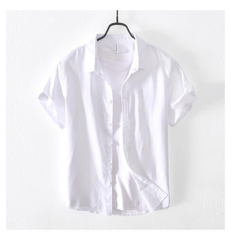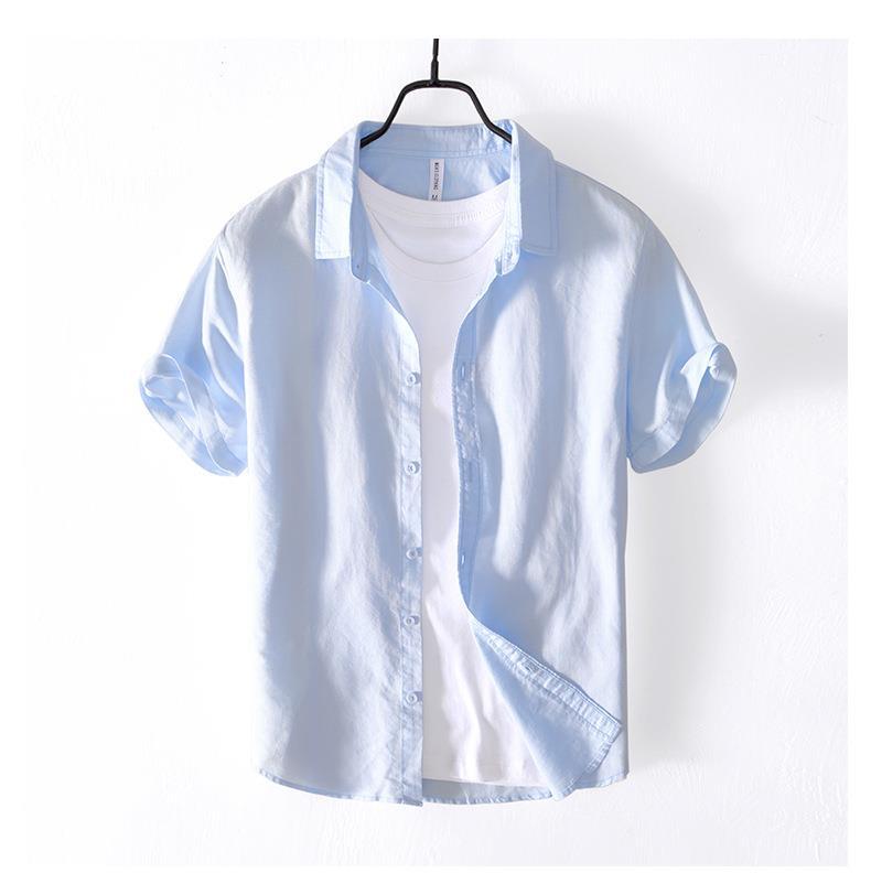 L3321 летняя однотонная короткая рубашка внутри и снаружи, мужская повседневная рубашка из хлопка и льна с короткими рукавами, Мужская поколение волос