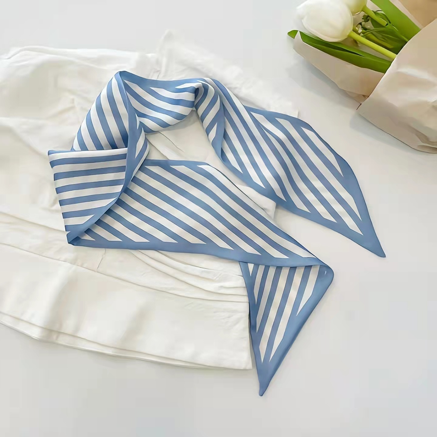 Корейский Стиль Синий Шелковый шарф лента галстук для волос сумка двусторонний шелковый шарф галстук Подарочная коробка многофункциональная оптовая продажа с фабрики