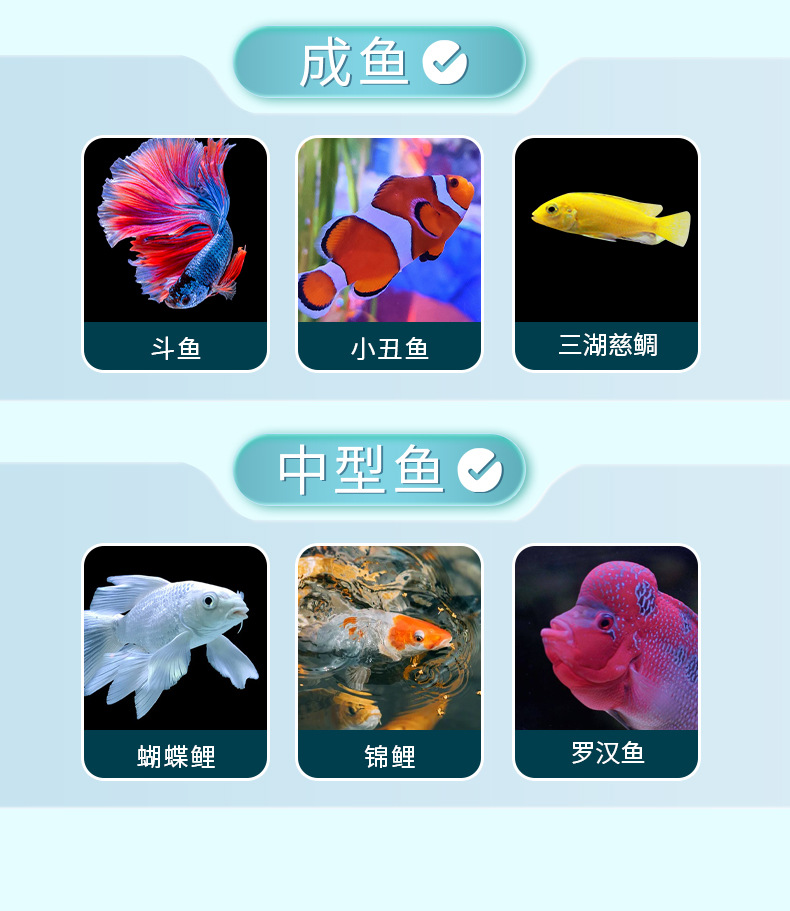 50 г Плавающие частицы серии A 0,25 мм (подходят для яйцекладущих мальков); 50 г плавающих частиц серии B1 0,36 мм (подходит для мелких мальков и молоди); 50 г медленно тонущих гранул серии B2 0,36-0,65 мм (подходит для рыб в пределах 3 см); 50 г медленно тонущих гранул серии C1 0,58-0,91 мм (подходит для рыб в пределах 5 см); 50 г медленно тонущих гранул серии C2 0,91-1,41 мм (подходит для рыбы 5-10 см); 50 г серии S1 с быстрым медленным осаждением серии 1 мм (подходит для рыб 5-8 см); 50 г быстро и медленно тонущих гранул серии S2 1,4 мм (подходит для рыбы 6-10 см); 50 г быстро и медленно тонущих гранул серии EP0 1,2 мм (подходит для рыбы 6-8 см); 50 г быстро и медленно тонущих гранул серии EP1 1,5 мм (подходит для рыбы выше 8 см); 100 г Плавающие частицы серии A 0,25 мм (подходят для яйцекладущих мальков); 100 г плавающих частиц серии B1 0,36 мм (подходит для мелких мальков и молоди); 100 г медленно тонущих гранул серии B2 0,36-0,65 мм (подходит для рыб в пределах 3 см); 100 г медленно тонущих гранул серии C1 0,58-0,91 мм (подходит для рыб в пределах 5 см); 100 г медленно тонущих гранул серии C2 0,91-1,41 мм (подходит для рыбы 5-10 см); 100 г быстро и медленно тонущих гранул серии S1 1 1 мм (подходит для рыбы 5-8 см); Быстро и медленно погружающиеся гранулы серии 100 г S2 1,4 мм (подходят для рыбы 6-10 см); 100 г быстро и медленно тонущих гранул серии EP1 1,5 мм (подходит для рыбы выше 8 см); 100 г тонущих частиц серии EP2 2 мм (подходит для рыб выше 10 см); Тонущие частицы серии 100 г EP3 3,1 мм (подходят для рыб выше 14 см); 100 г тонущих гранул серии EP4 4,1 мм (подходит для рыбы выше 17 см); 500 г быстро и медленно тонущие гранулы серии S1 1 1 мм (подходят для рыбы 5-8 см); Быстро тонущие гранулы серии S2 500 г 1,4 мм (подходят для рыбы 6-10 см); 500 г гранул серии EP0 Быстро тонущие 1,2 мм (подходят для рыбы 6-8 см); 500 г быстро и медленно тонущих гранул серии EP1 1,5 мм (подходит для рыбы выше 8 см); Тонущие частицы серии EP2 500 г 2 мм (подходит для рыб выше 10 см); Тонущие гранулы серии EP4 500 г 4,1 мм (подходят для рыбы выше 17 см)