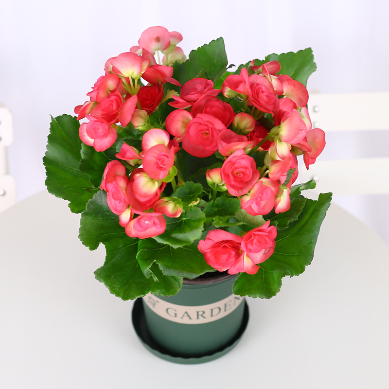 Rieger Двойной цветок Бегонии в горшке Четыре сезона Цветущий комнатный цветок Балкон Цветочное растение для рассады Большой лист Бегонии с бутоном цветка