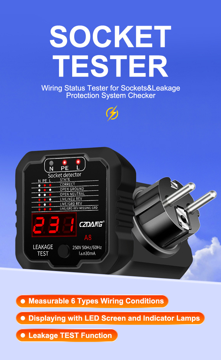 A8 цифровой дисплей гнездо тестер; CZDANG A8 цифровой дисплей гнездо тестер (европейский); Тестер цифровых дисплеев CZDANG A8 (английский); CZDANG A8 цифровой дисплей гнездо тестер (американский)