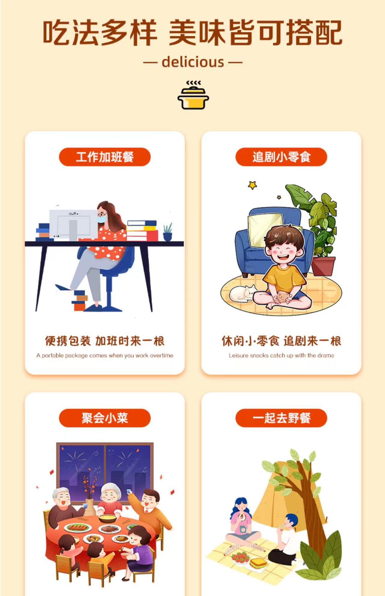 Острая хрустящая колбаса 32г/шт [заказывайте 60 штук на всю коробку]; Кукурузная колбаса 32г/шт [заказывайте 60 штук за всю коробку]; Увлажняющий и сладкий король 38 г/шт. [взять 60 штук за всю коробку]; Instant Noodle Partner 35 г/шт. [взять 60 штук за всю коробку]; Оригинальная тайваньская колбаса-гриль 38 г/шт. [заказывайте 60 штук за всю коробку]; Тайваньская колбаса на гриле со вкусом тмина 38 г/шт. [заказывайте 60 штук на всю коробку]; Король из королей 60 г/шт. [взять 60 штук за всю коробку]