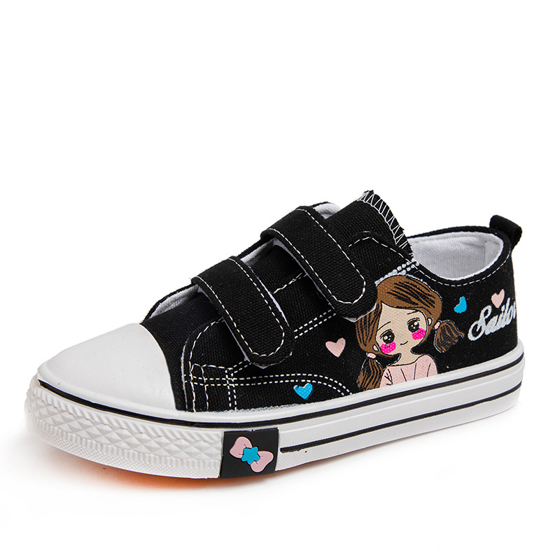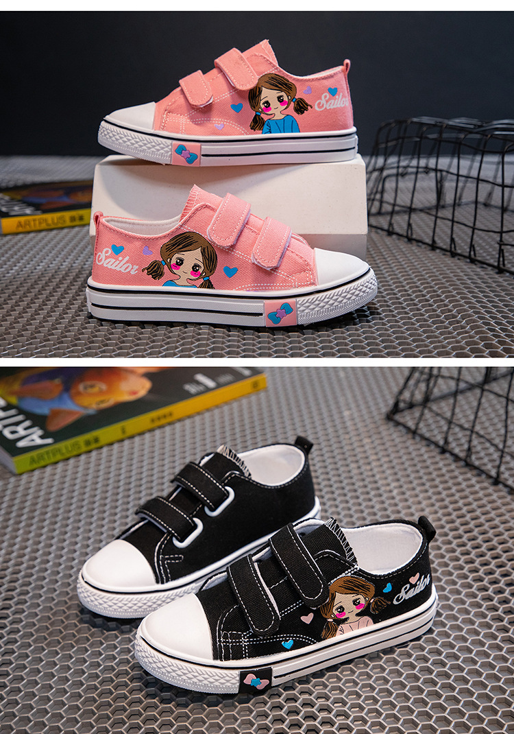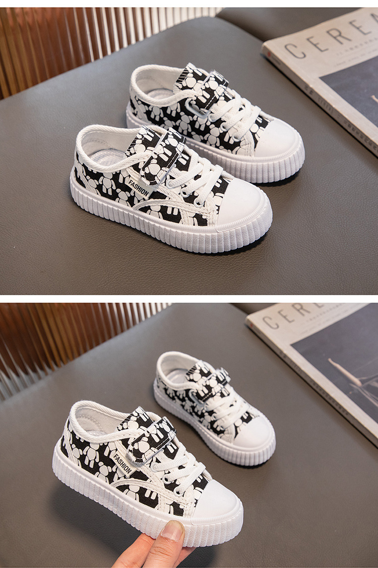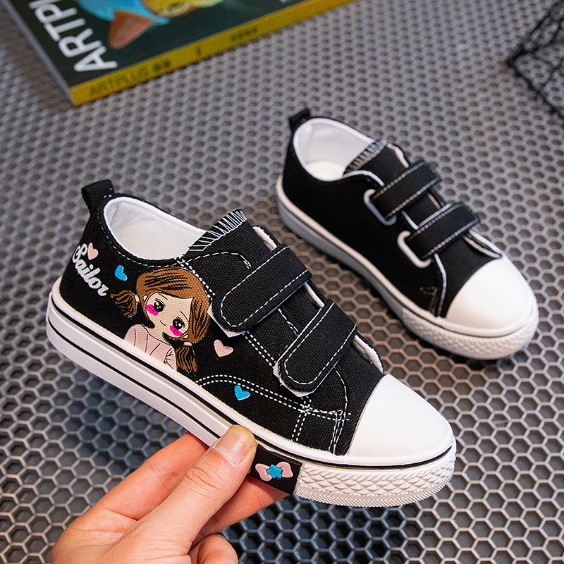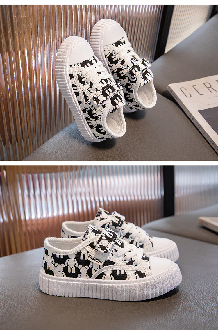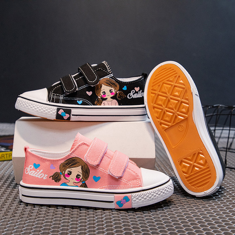 Детские кеды из канваса, мягкие кроссовки для девочек, осенние милые детские туфли, нескользящие повседневные туфли для девочек с мультяшным принтом, универсальные и удобные.
