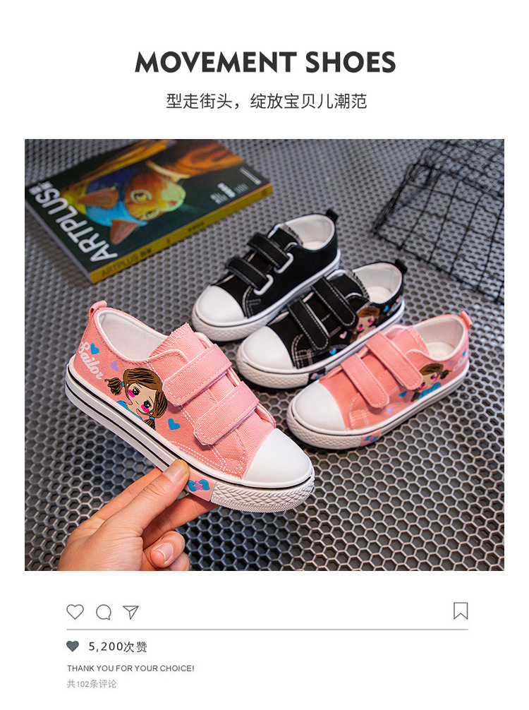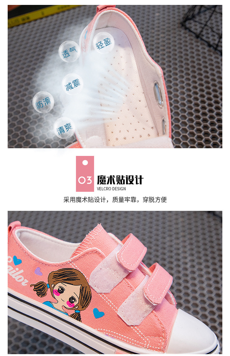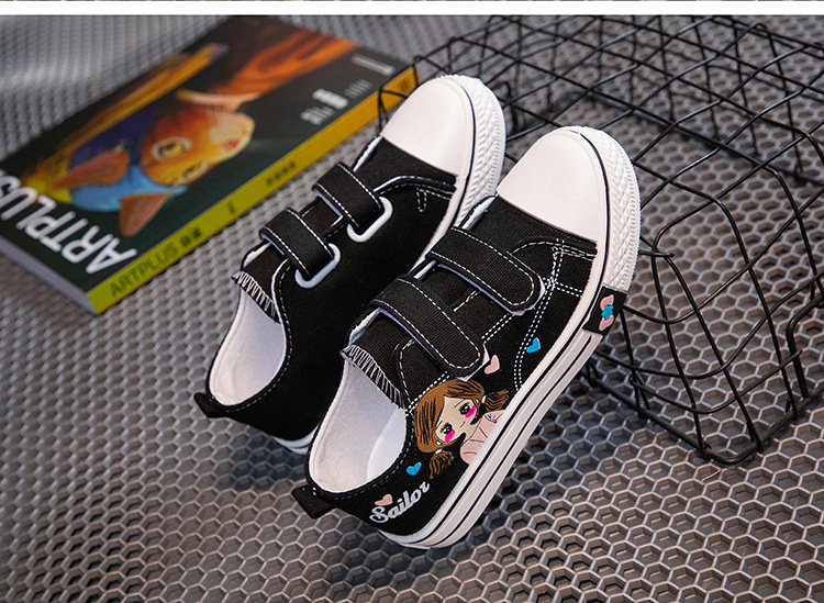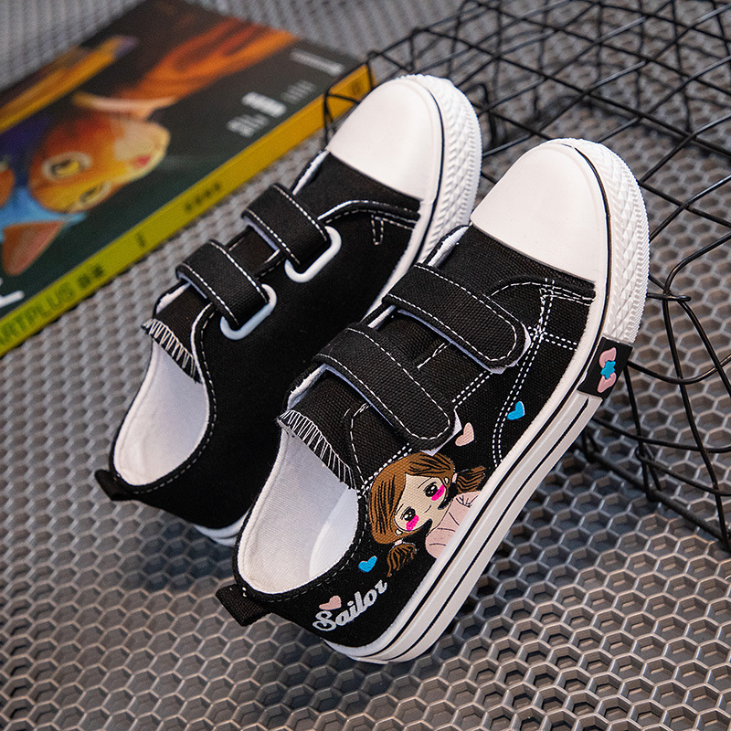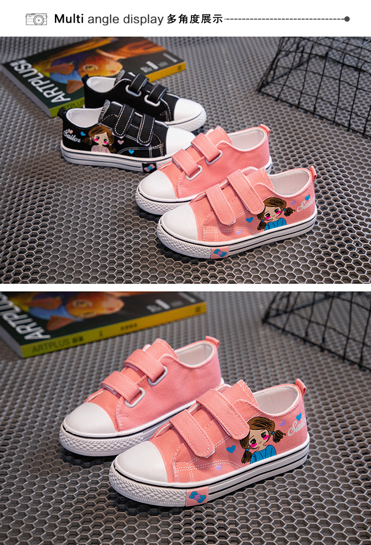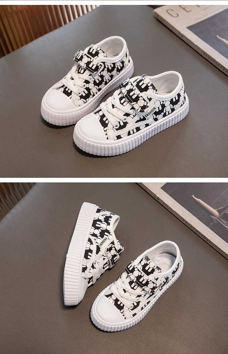 Детские кеды из канваса, мягкие кроссовки для девочек, осенние милые детские туфли, нескользящие повседневные туфли для девочек с мультяшным принтом, универсальные и удобные.