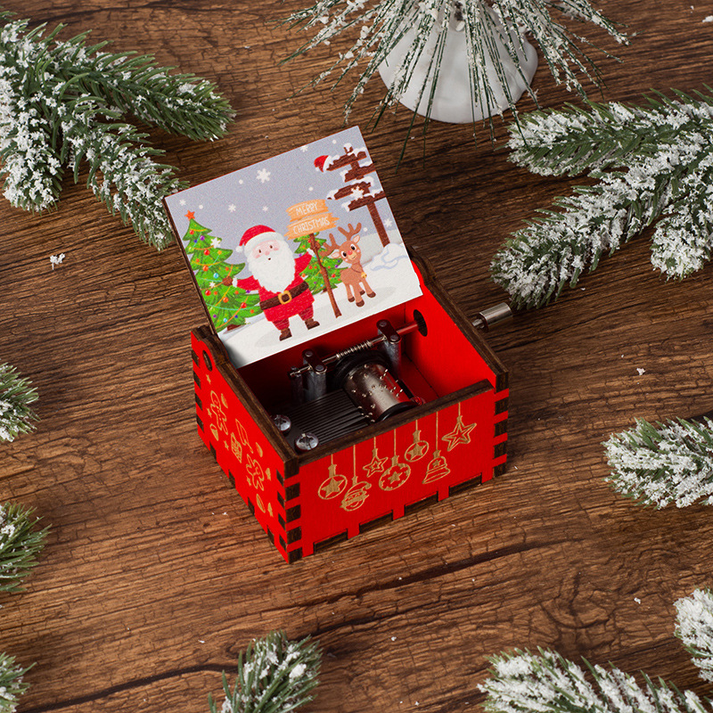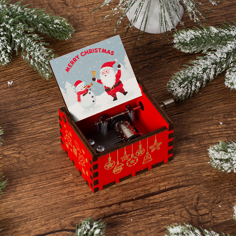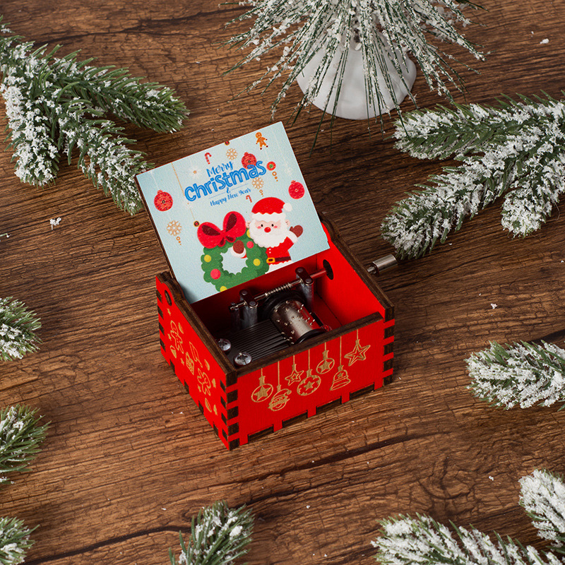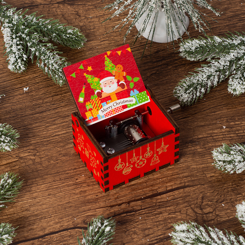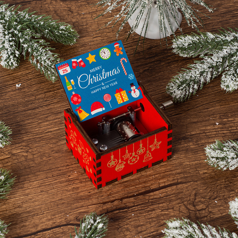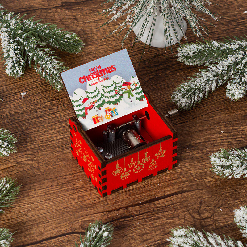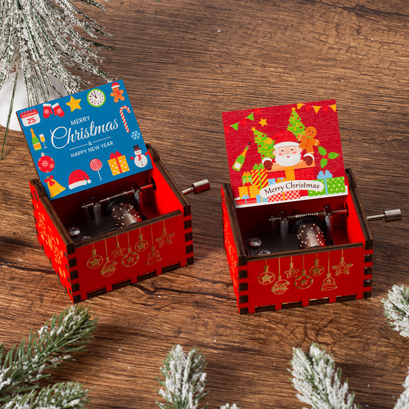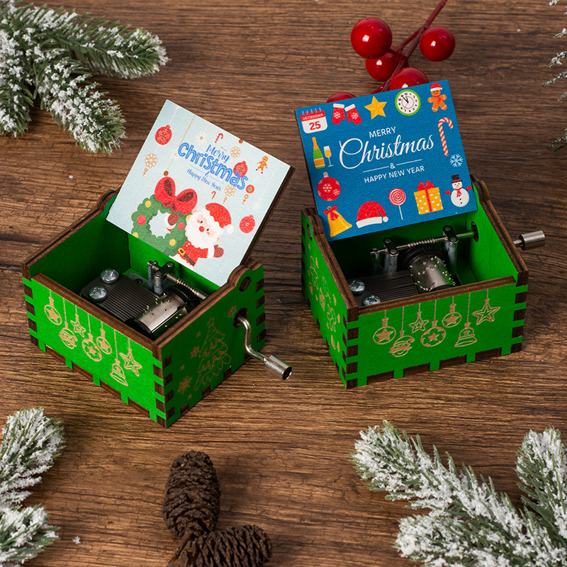 Трансграничная Рождественская музыкальная шкатулка Подарочная деревянная музыкальная шкатулка Украшения Деревянная Wish You Merry Christmas Музыкальная шкатулка с ручным приводом