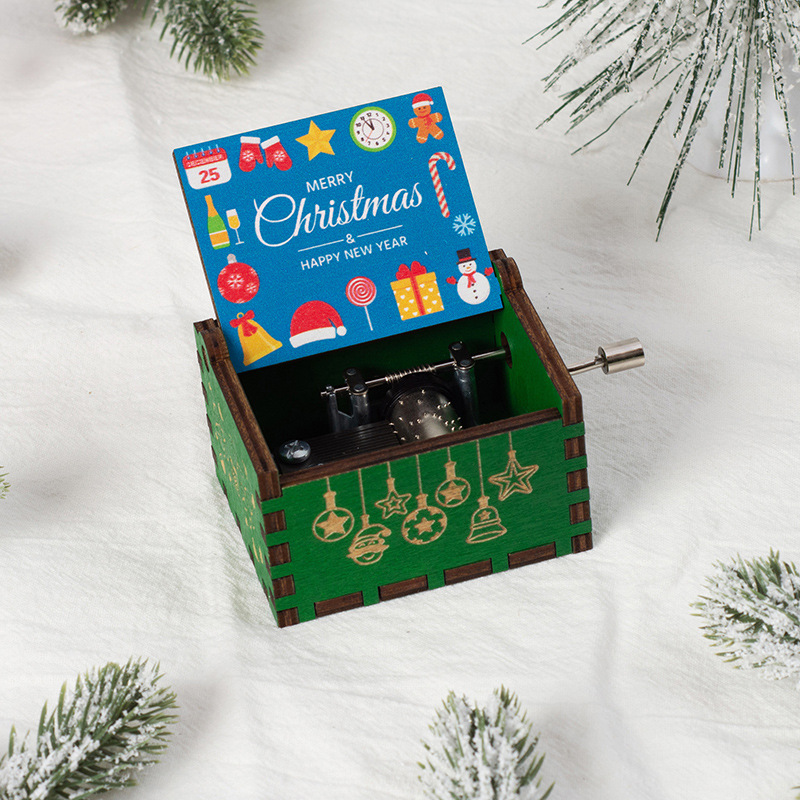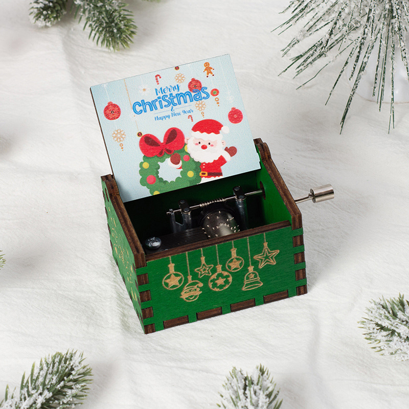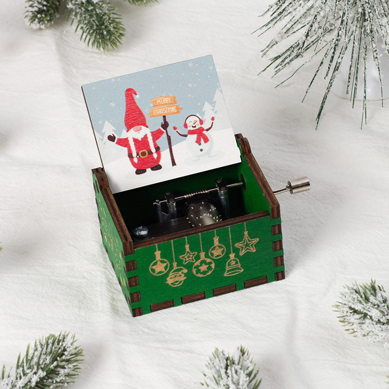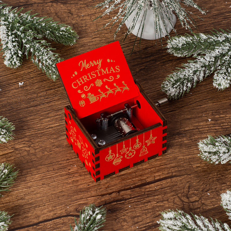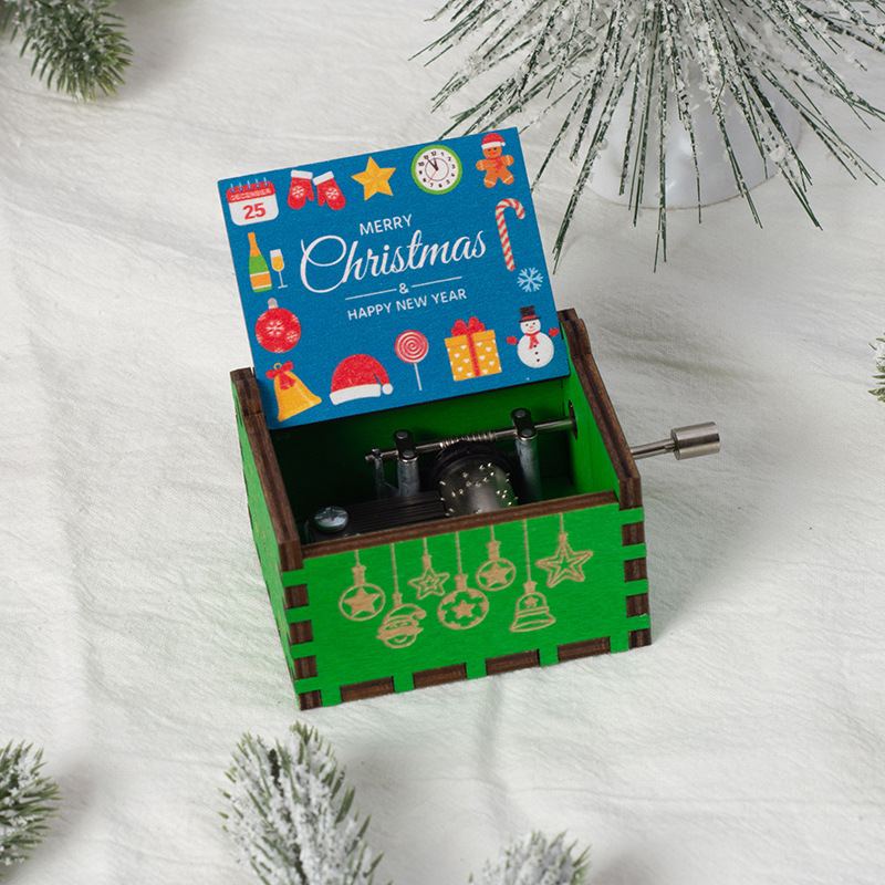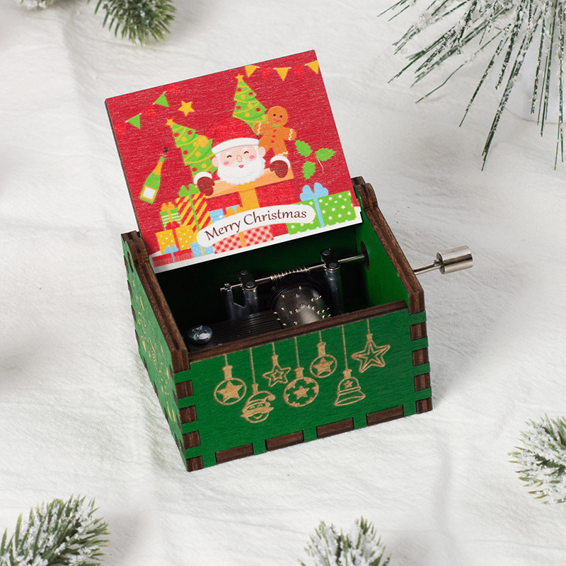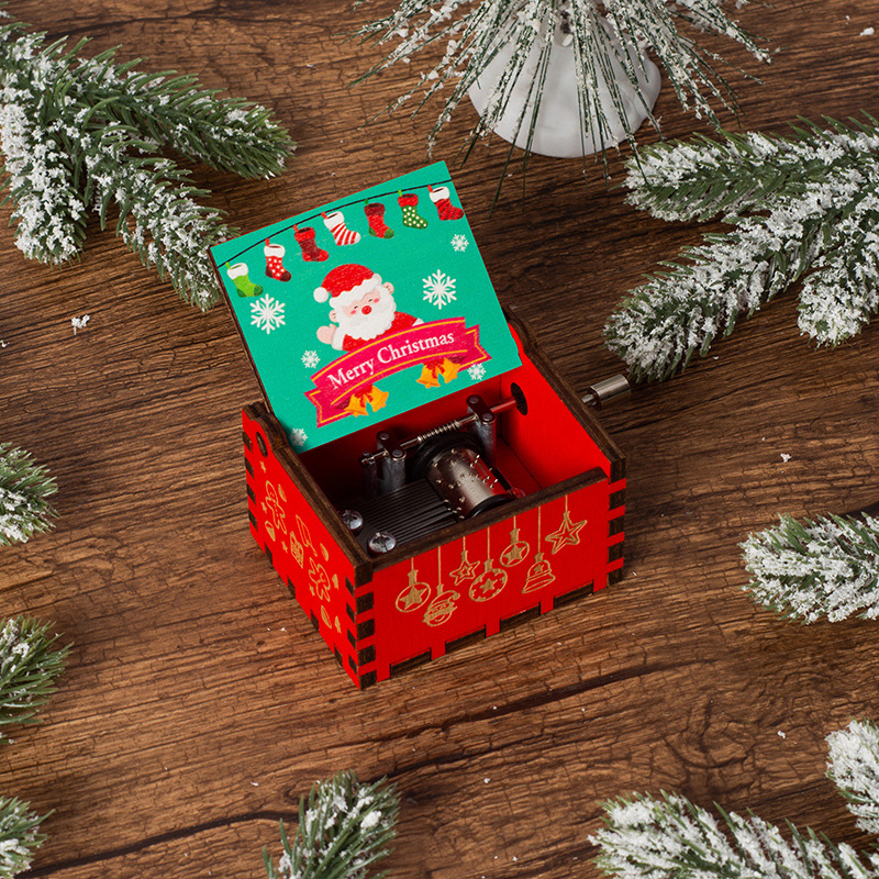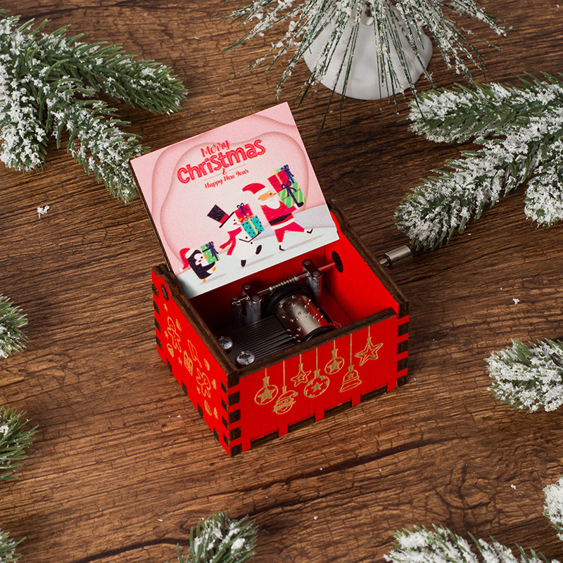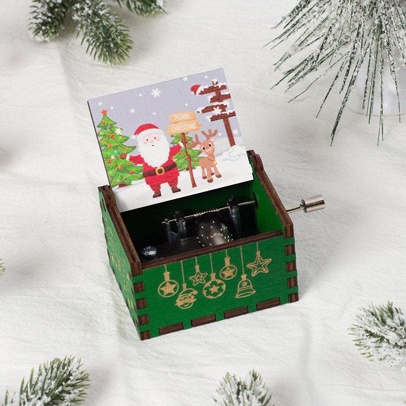 Трансграничная Рождественская музыкальная шкатулка Подарочная деревянная музыкальная шкатулка Украшения Деревянная Wish You Merry Christmas Музыкальная шкатулка с ручным приводом