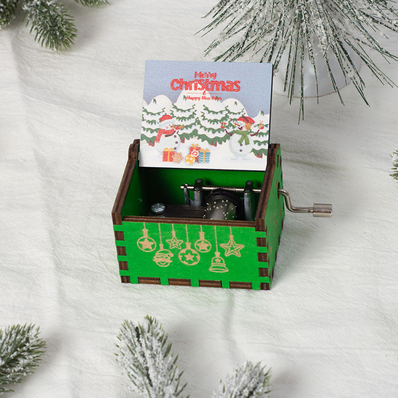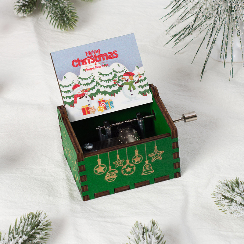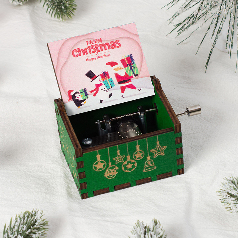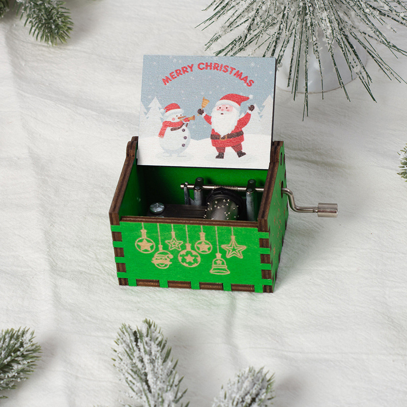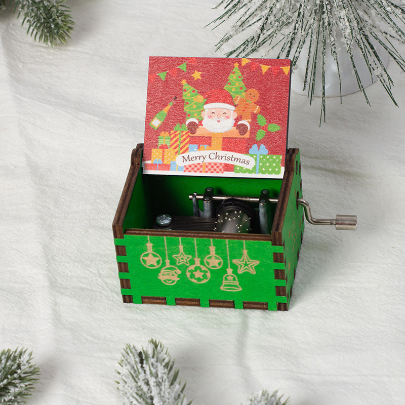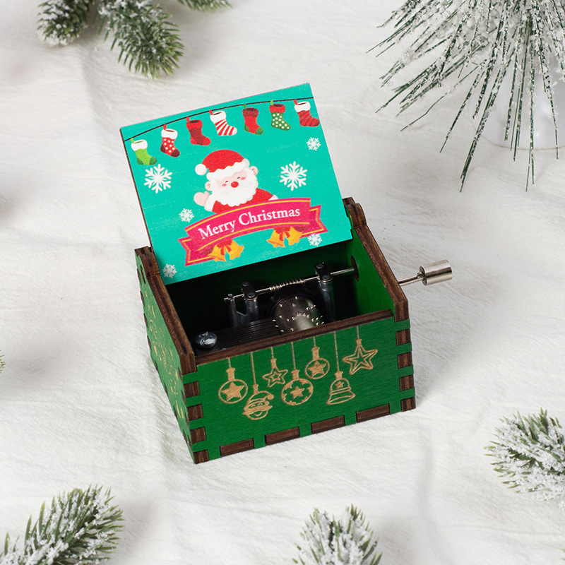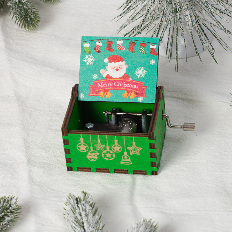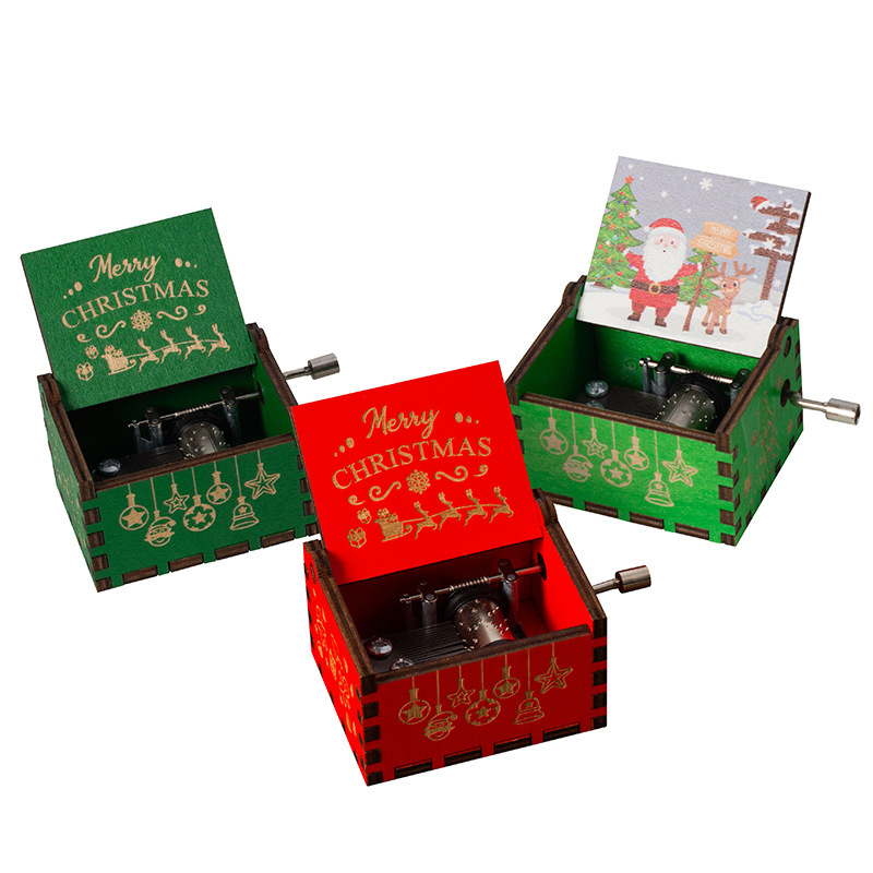 Трансграничная Рождественская музыкальная шкатулка Подарочная деревянная музыкальная шкатулка Украшения Деревянная Wish You Merry Christmas Музыкальная шкатулка с ручным приводом