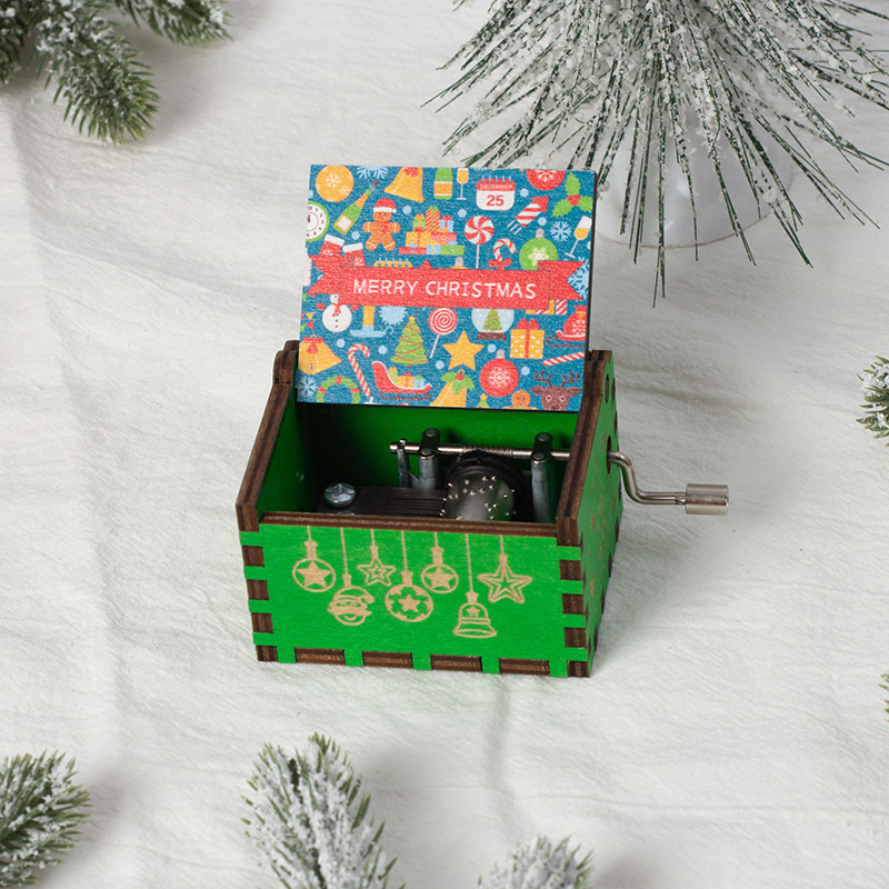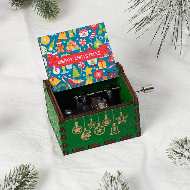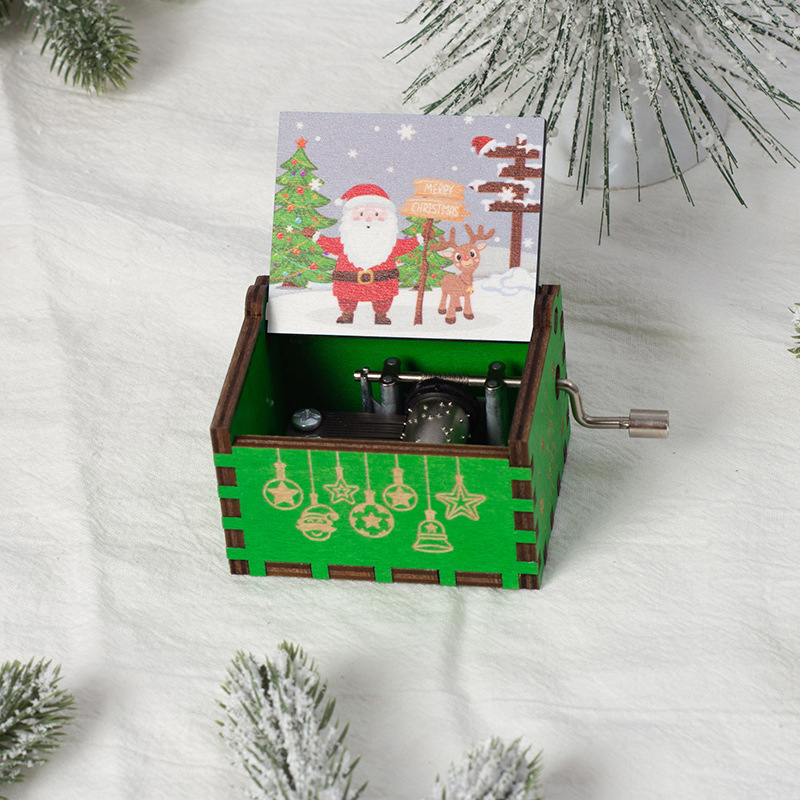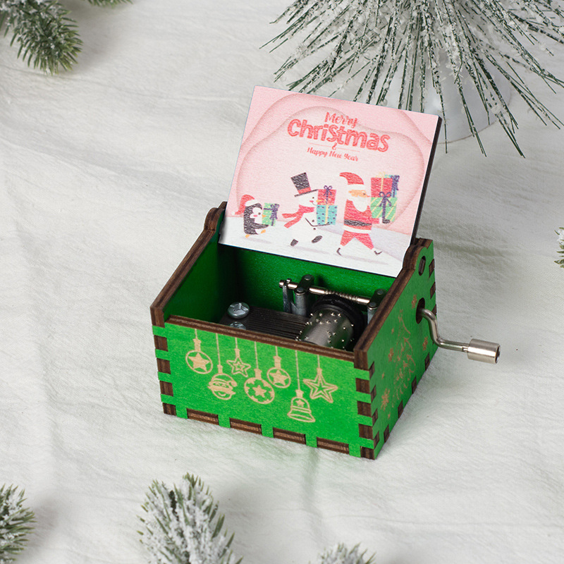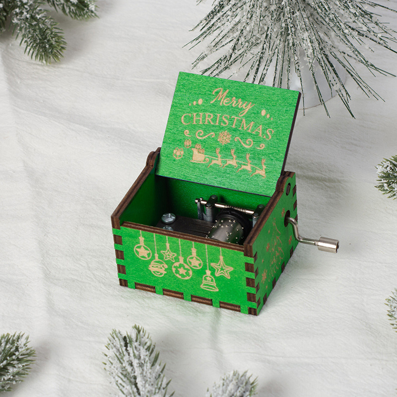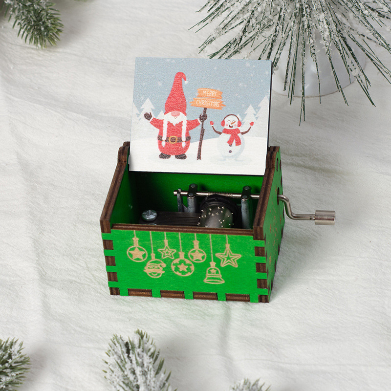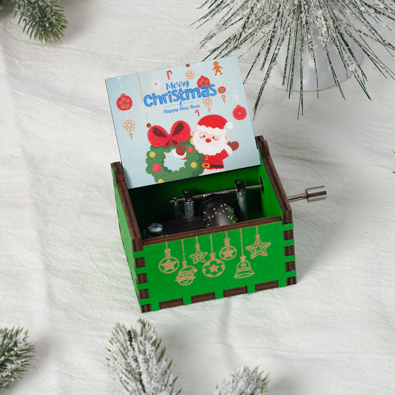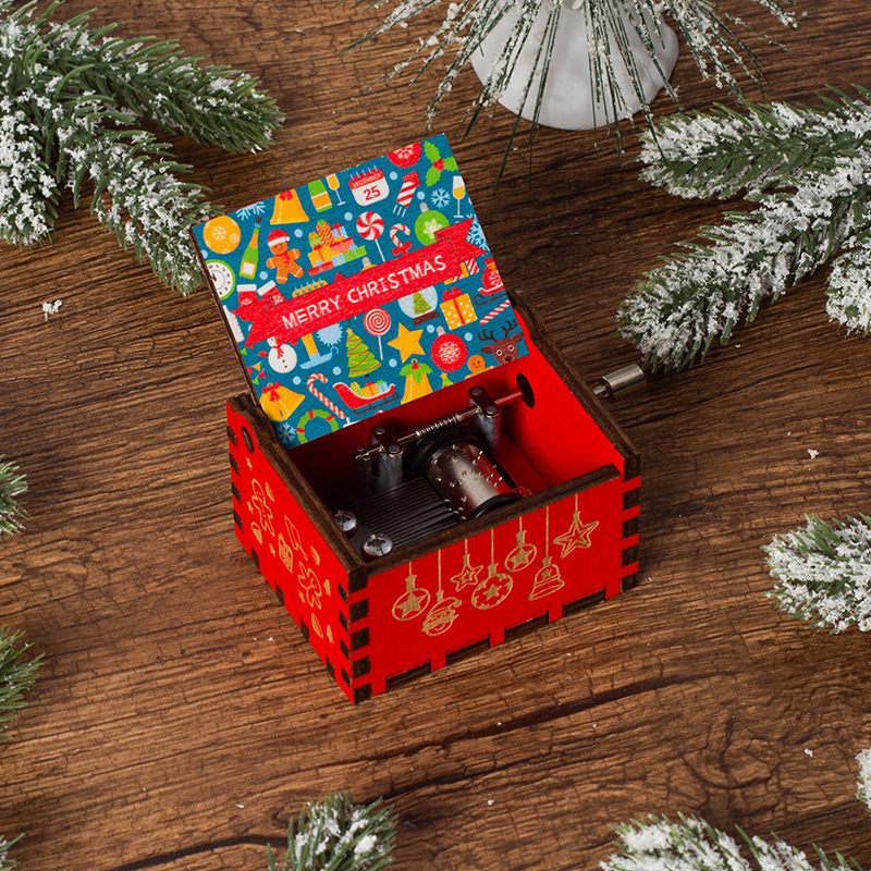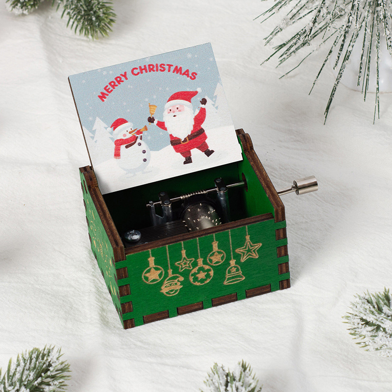 Трансграничная Рождественская музыкальная шкатулка Подарочная деревянная музыкальная шкатулка Украшения Деревянная Wish You Merry Christmas Музыкальная шкатулка с ручным приводом