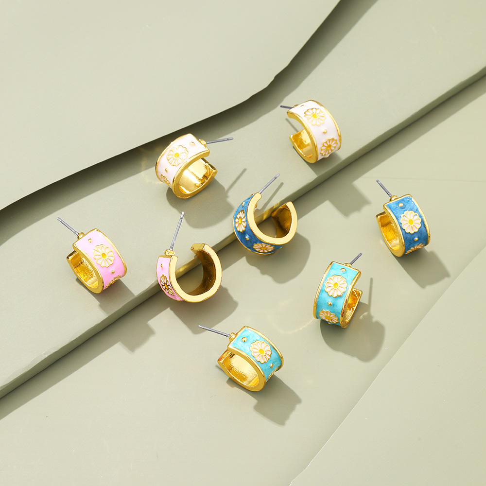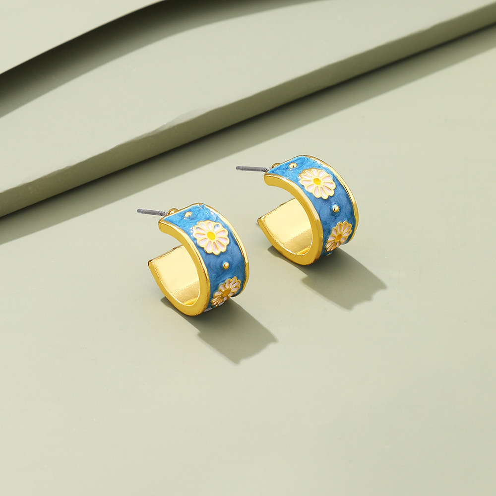 2023 Amazon новые винтажные цветочные серьги, капающие масло, цветочные серьги, серьги-гвоздики, ювелирные изделия, личность, полый Тип C