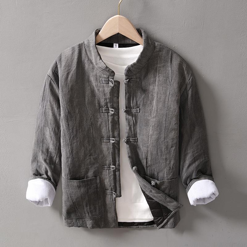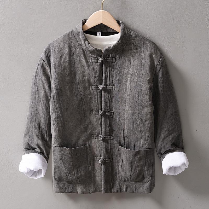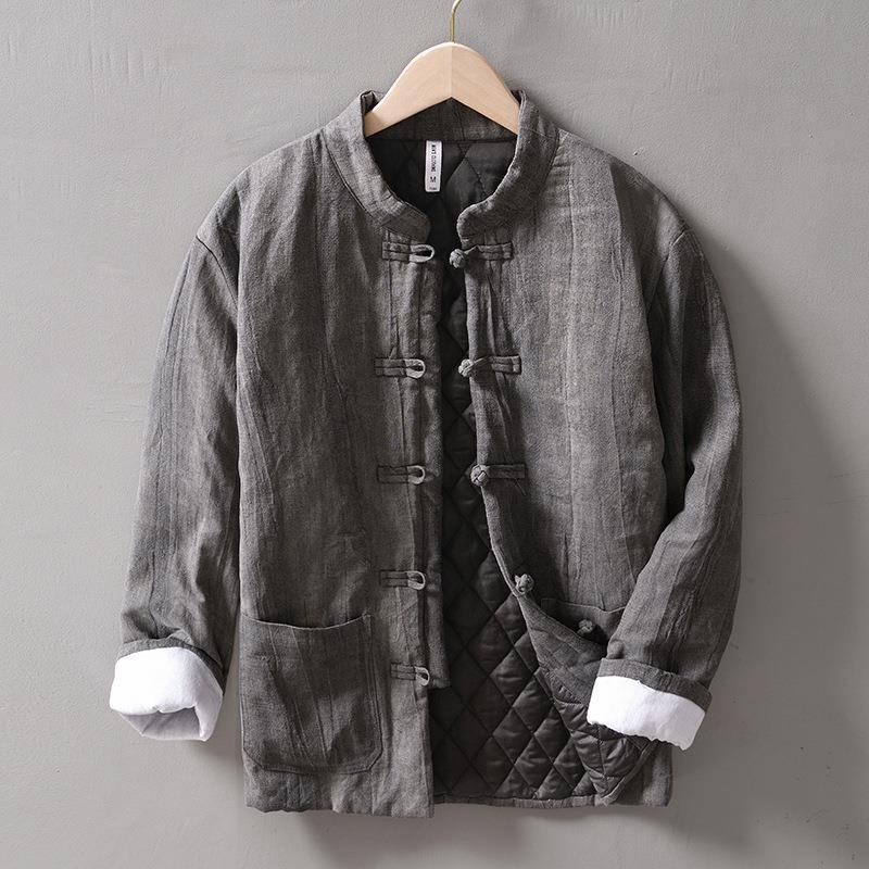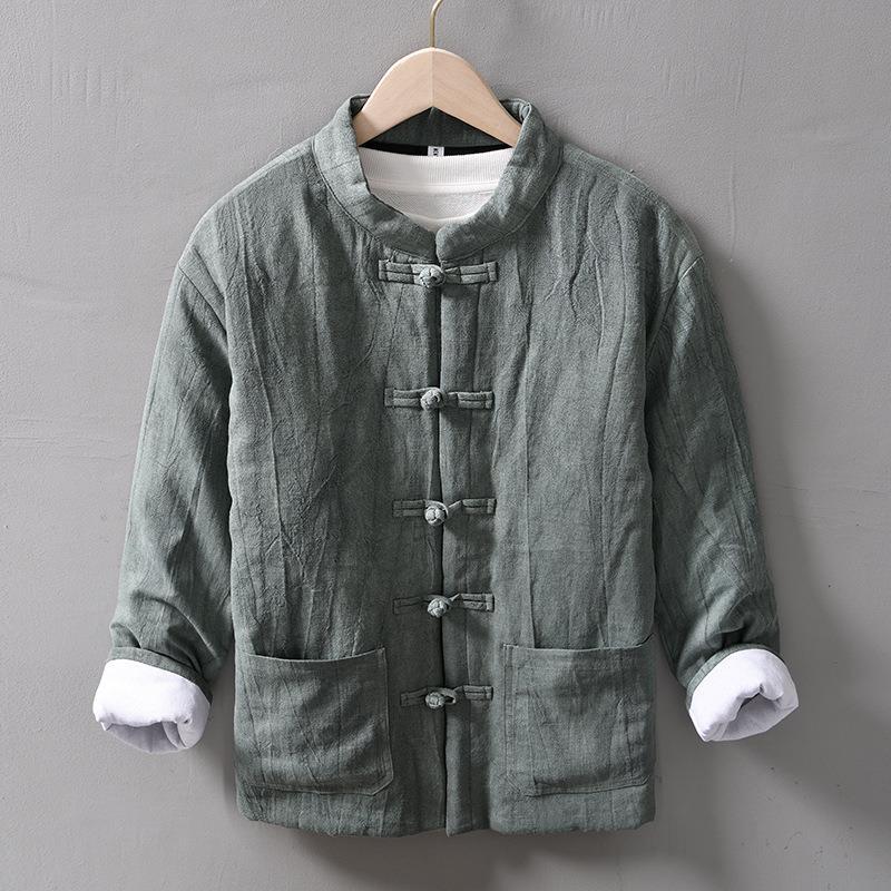 L116 Китайский стиль ретро Джокер свободная Пряжка для воротника-стойки Толстая Теплая мужская шерсть рами с хлопковой подкладкой