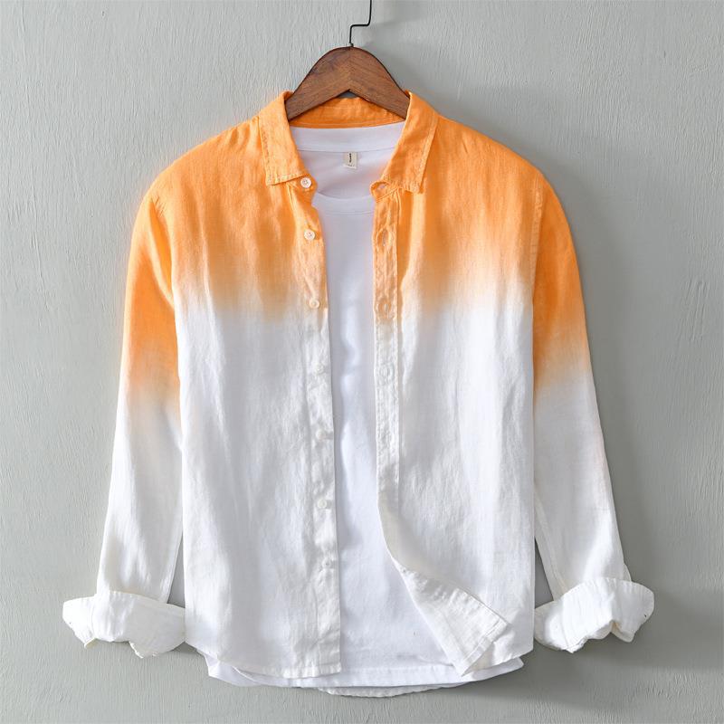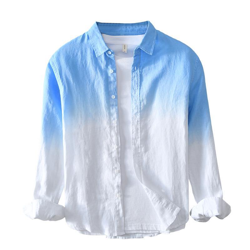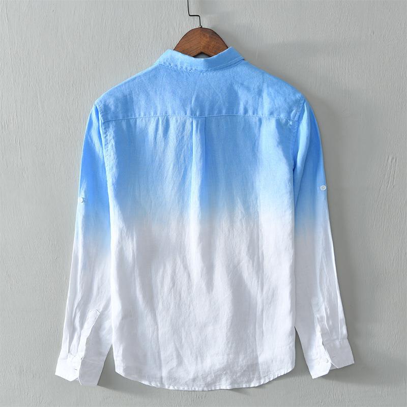 L734 японская индивидуальная градиентная рубашка Мужская льняная Повседневная дышащая рубашка с длинным рукавом, поколение волос
