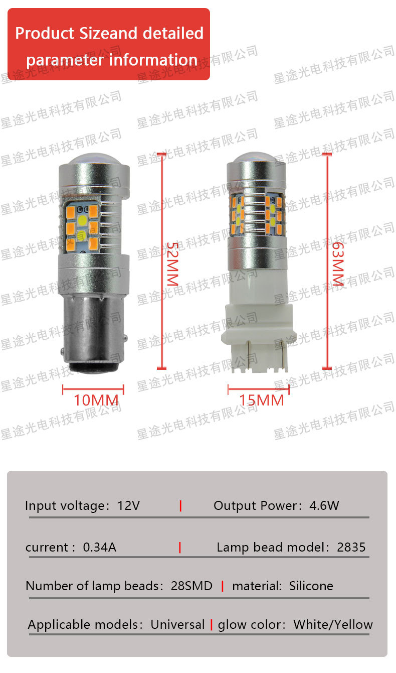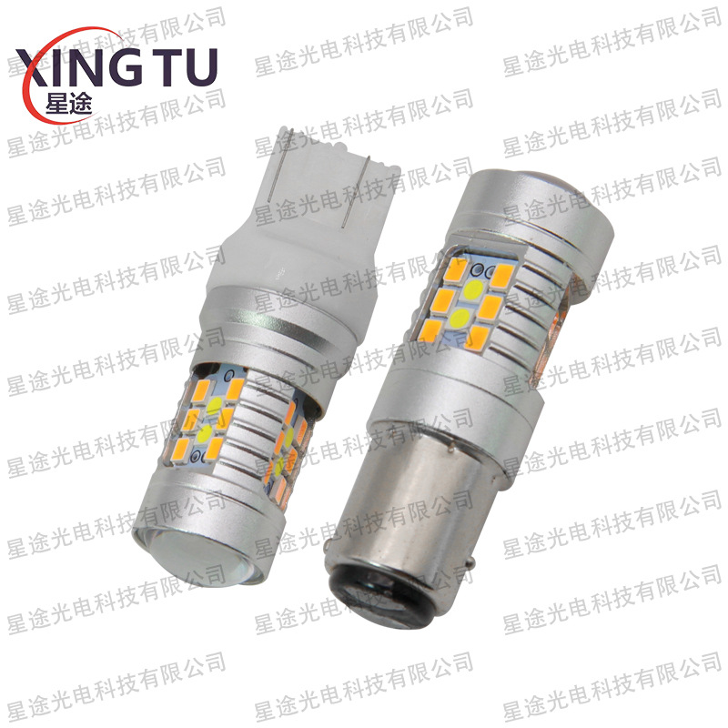 Автомобильный светодиодный двухцветный поворотник 7443 1157 3157 28smd декодированный задний фонарь 2835 T20