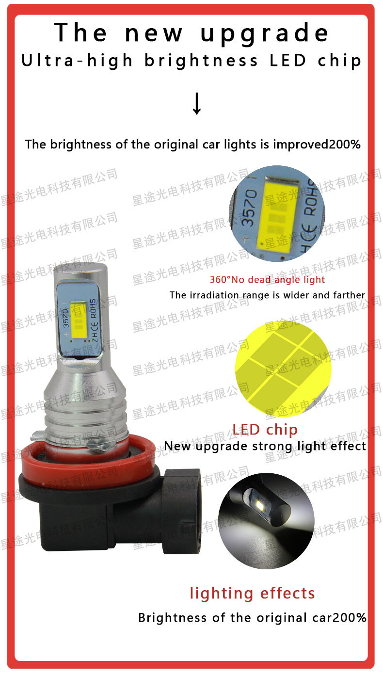 Светодиодный автомобильный фонарь H8 H11 3570 2SMD 80W Противотуманная фара с высокой мощностью 9005 9006
