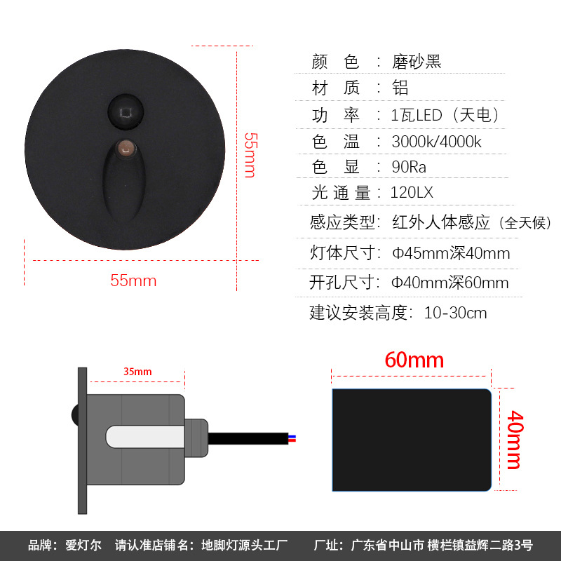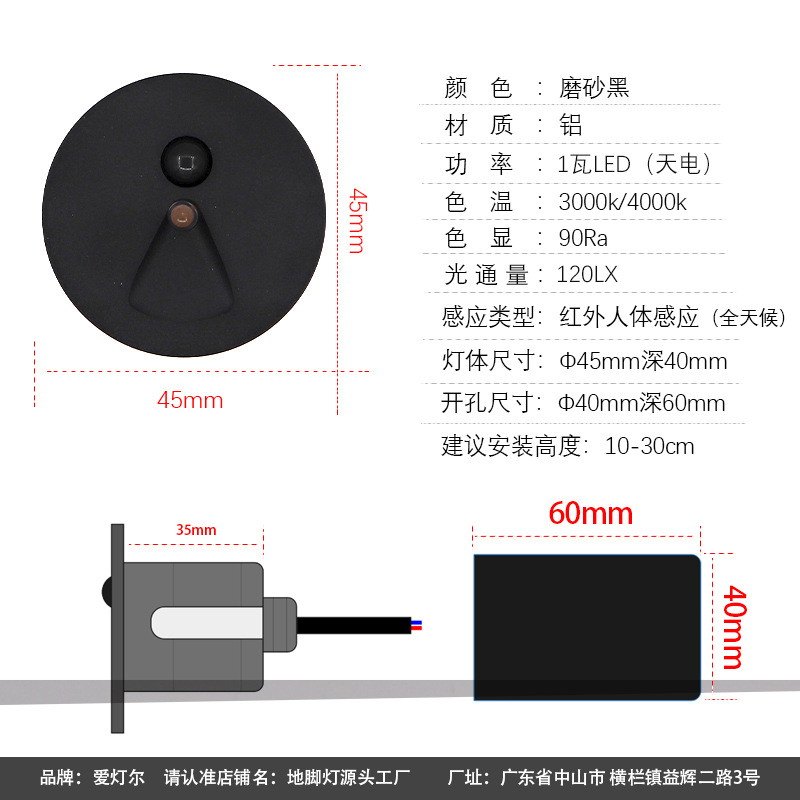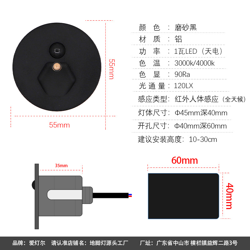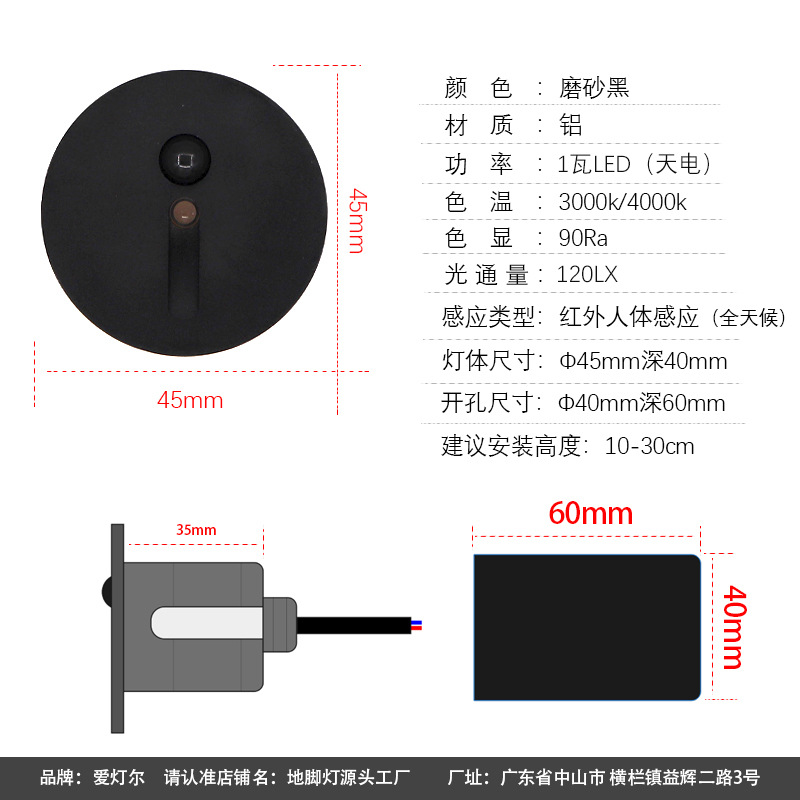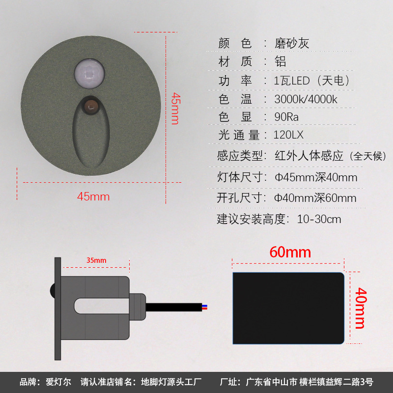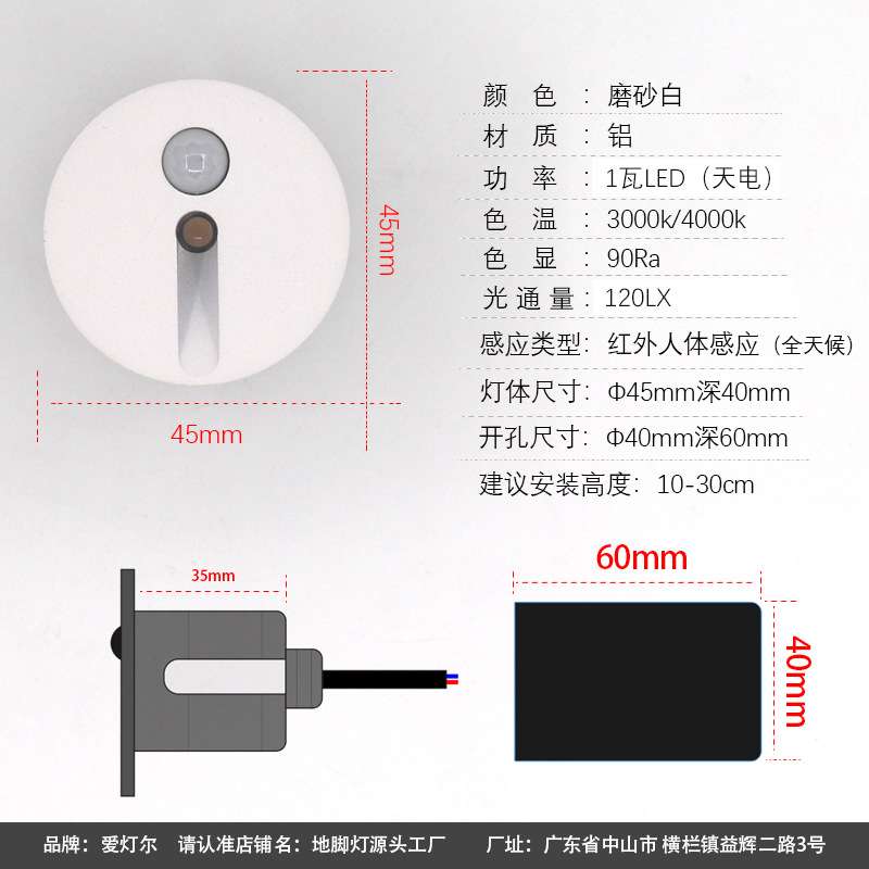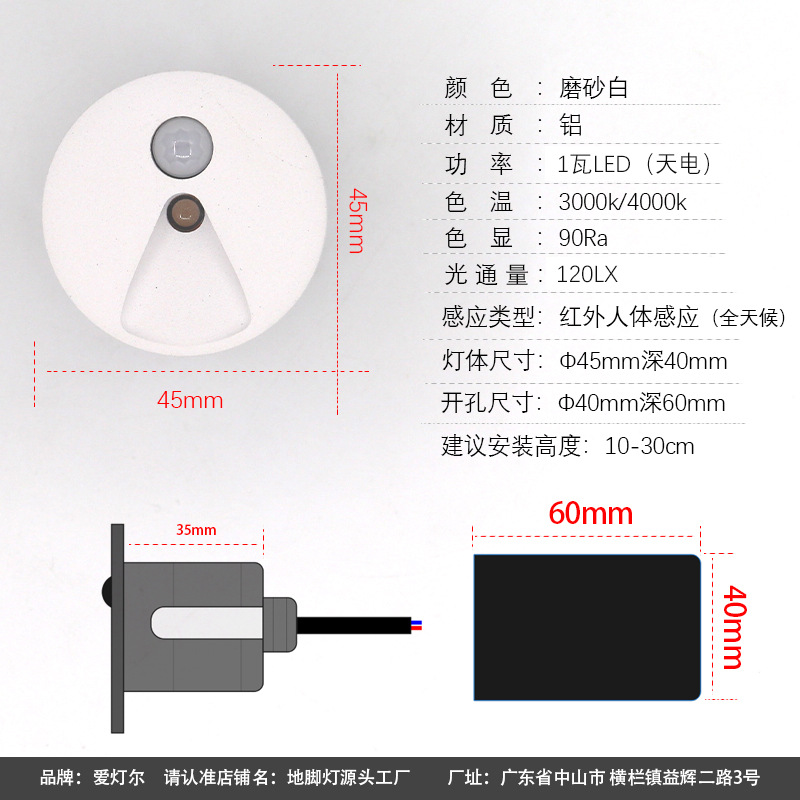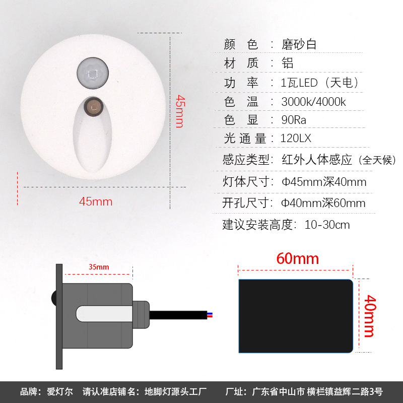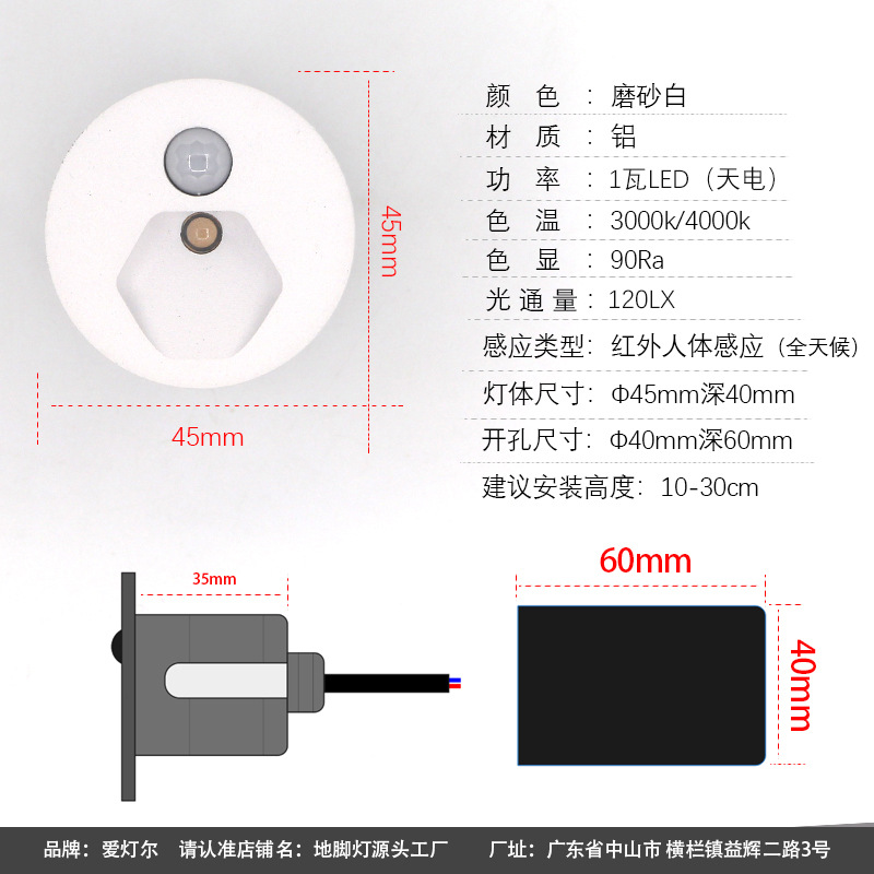 Круглый инфракрасный индукционный торшер человеческого тела диаметр 45 мм 55 лестничный проход ступенька Ультра маленький угловой плинтус ночник