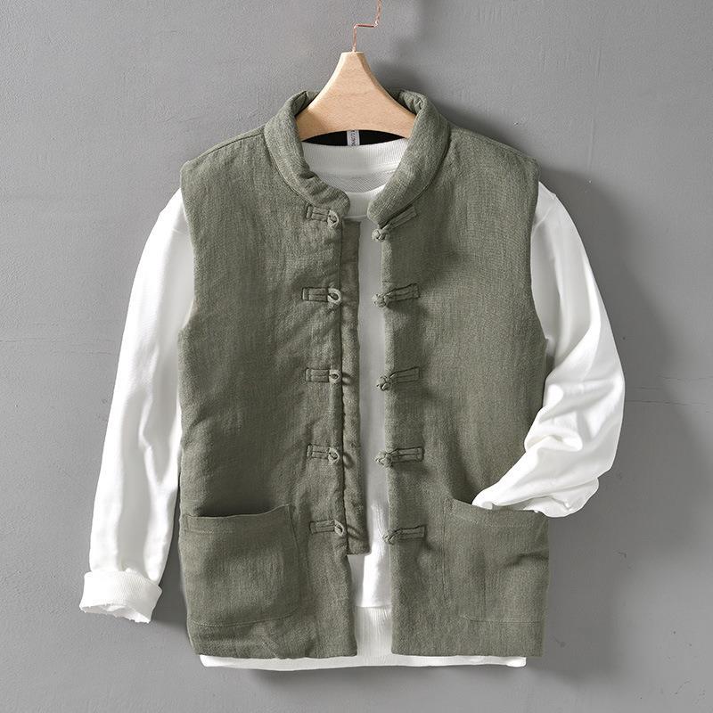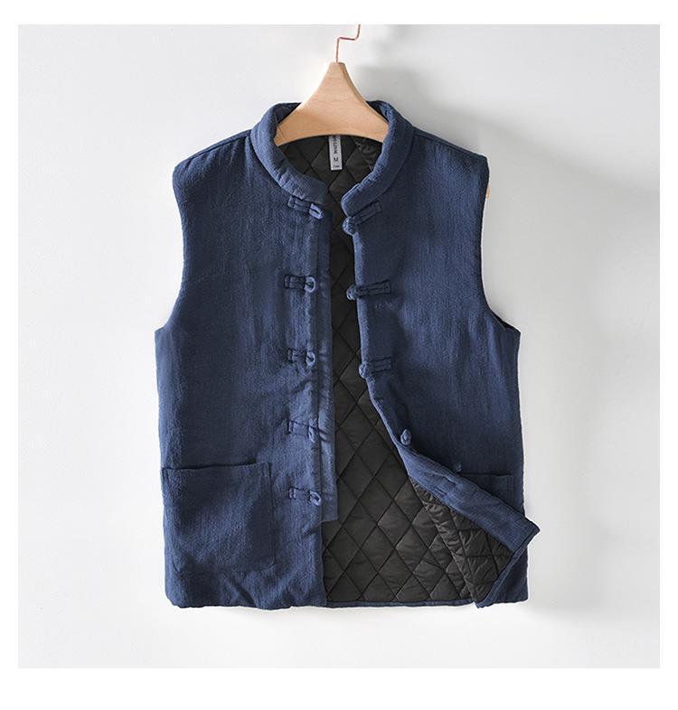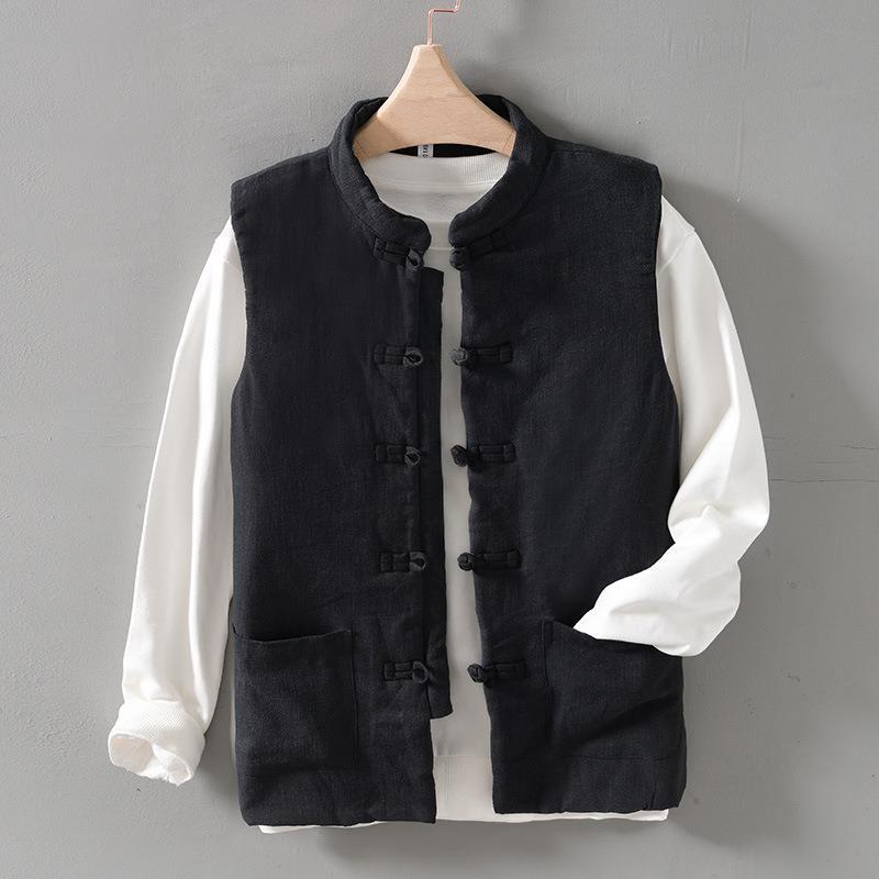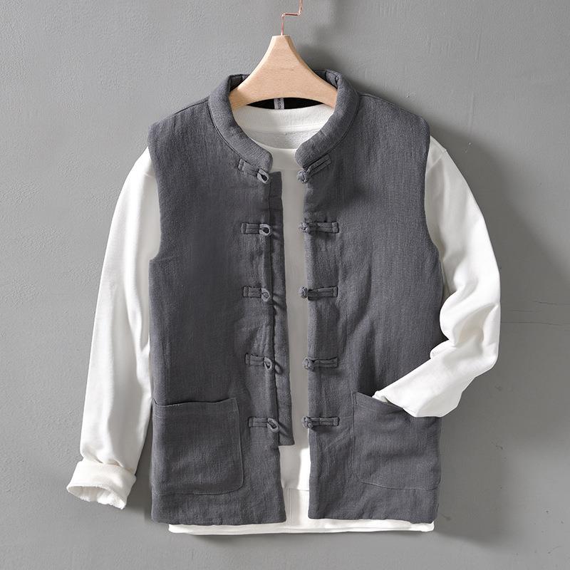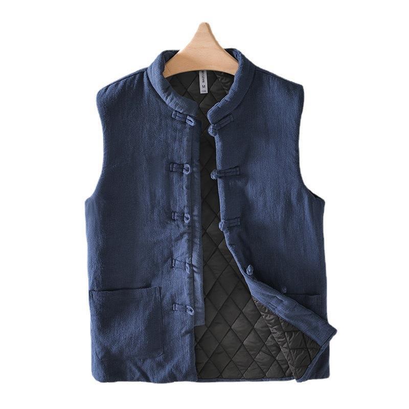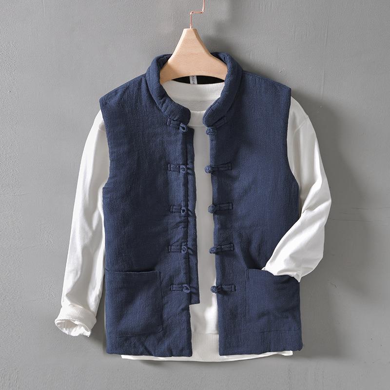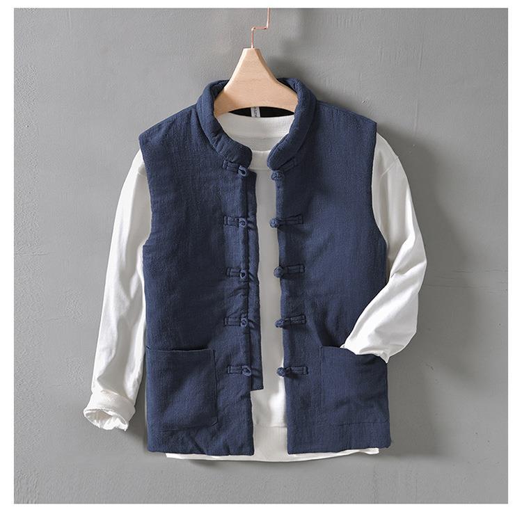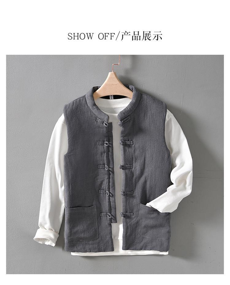 L119 Китайский стиль, пуговица-стойка, воротник без рукавов, верхняя одежда, хлопковый и льняной стеганый жилет, куртка для мужчин, цельный, Прямая доставка