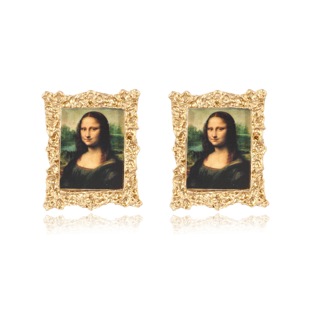 2023 Мона Лиза Серьги Amazon Новые креативные популярные серьги для фотоальбомов Голова Пейзаж Серьги из сплава
