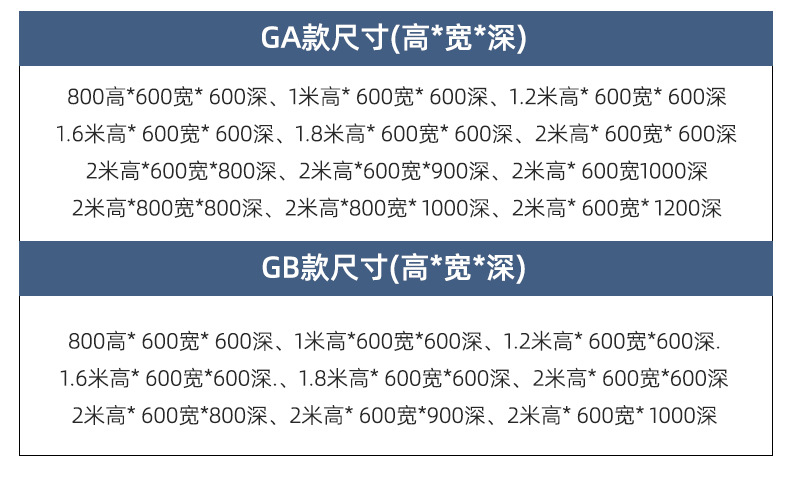 9У 600*450*500; 2У 600*450*600; 12У 600*600*600
