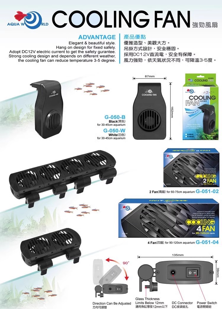 Тайвань Yabai Water World Fan полностью Пластиковый черный Регулируемый угловой вентилятор с четырьмя головками Вентилятор охлаждения аквариума