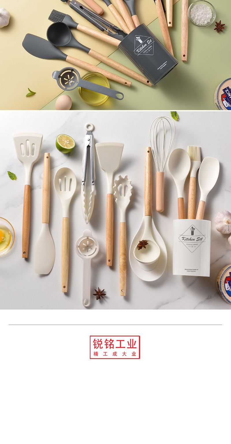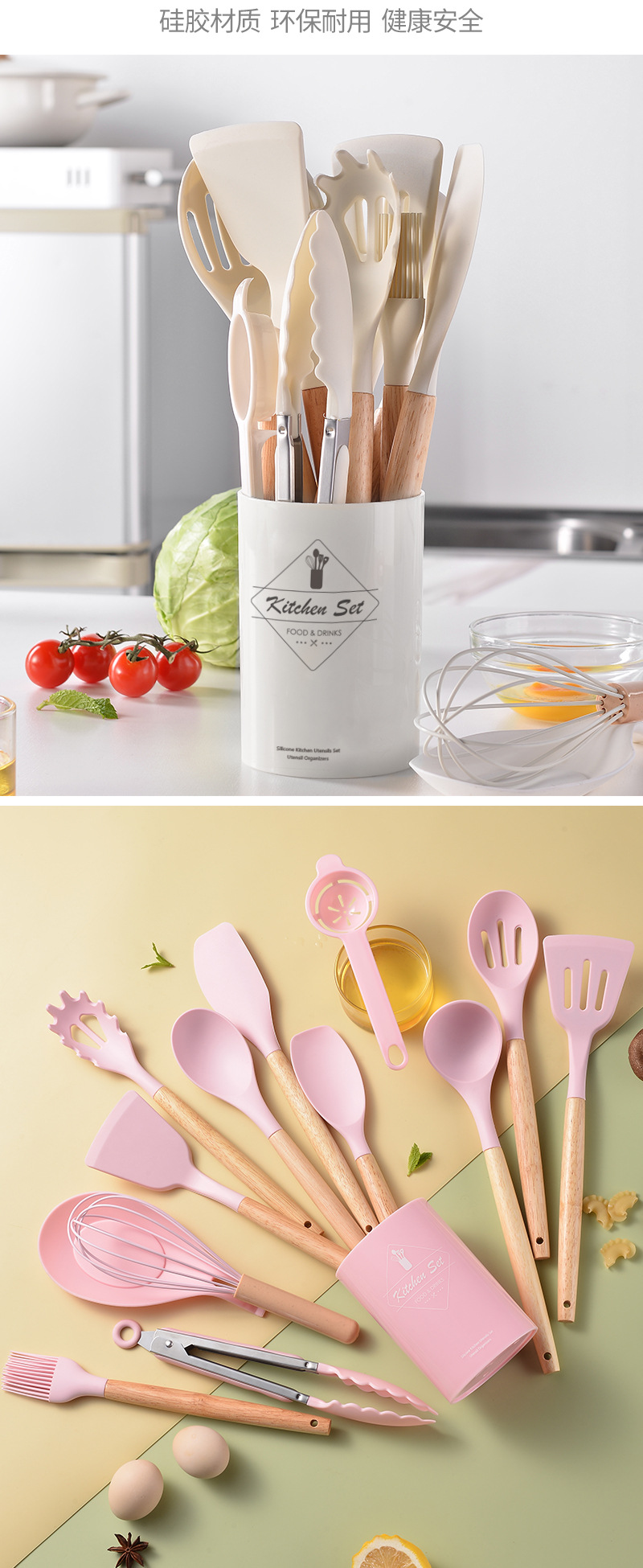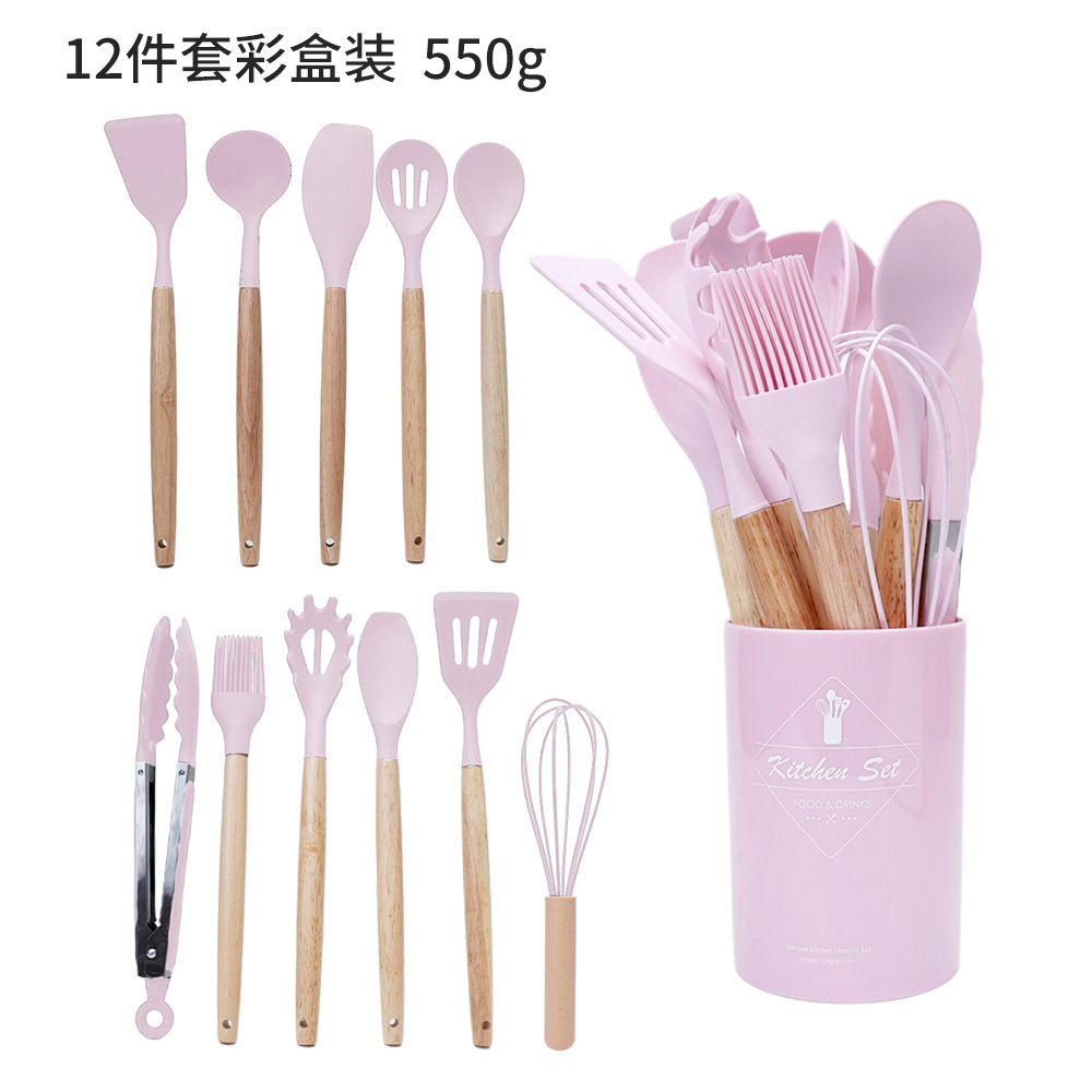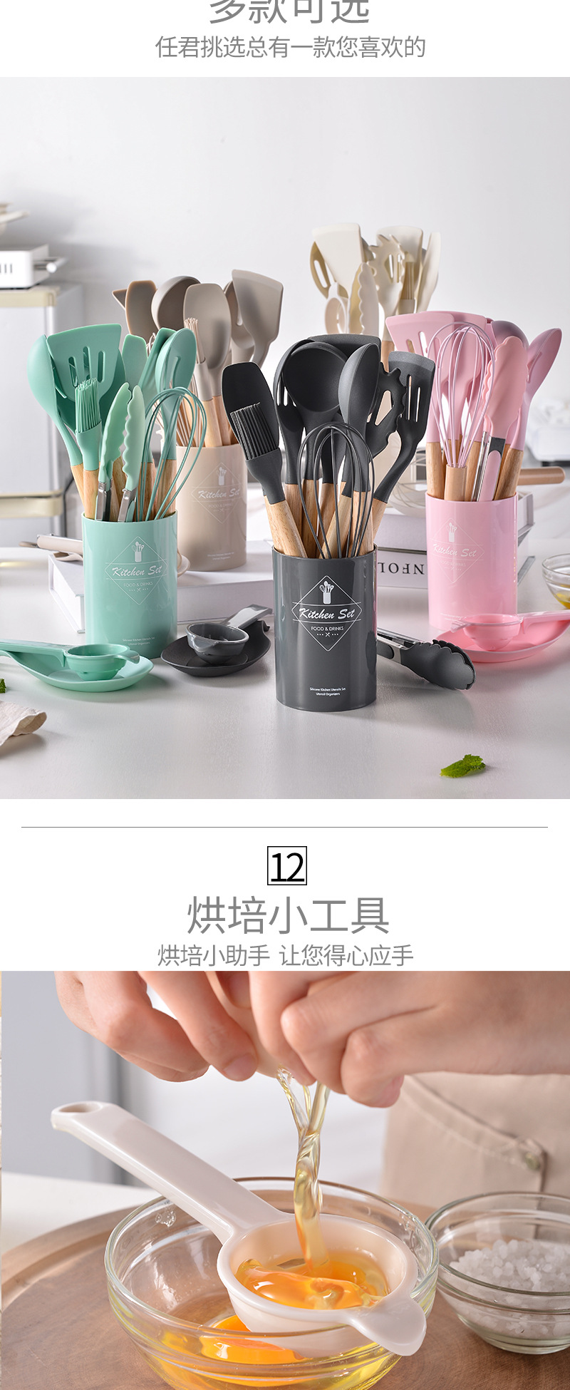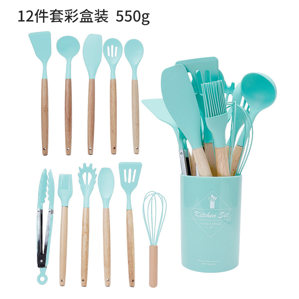 В наличии Легкая версия силиконовая посуда с круглым стволом и деревянной ручкой Набор из 14 предметов силиконовая кухонная утварь лопатка с антипригарным покрытием кухонные принадлежности