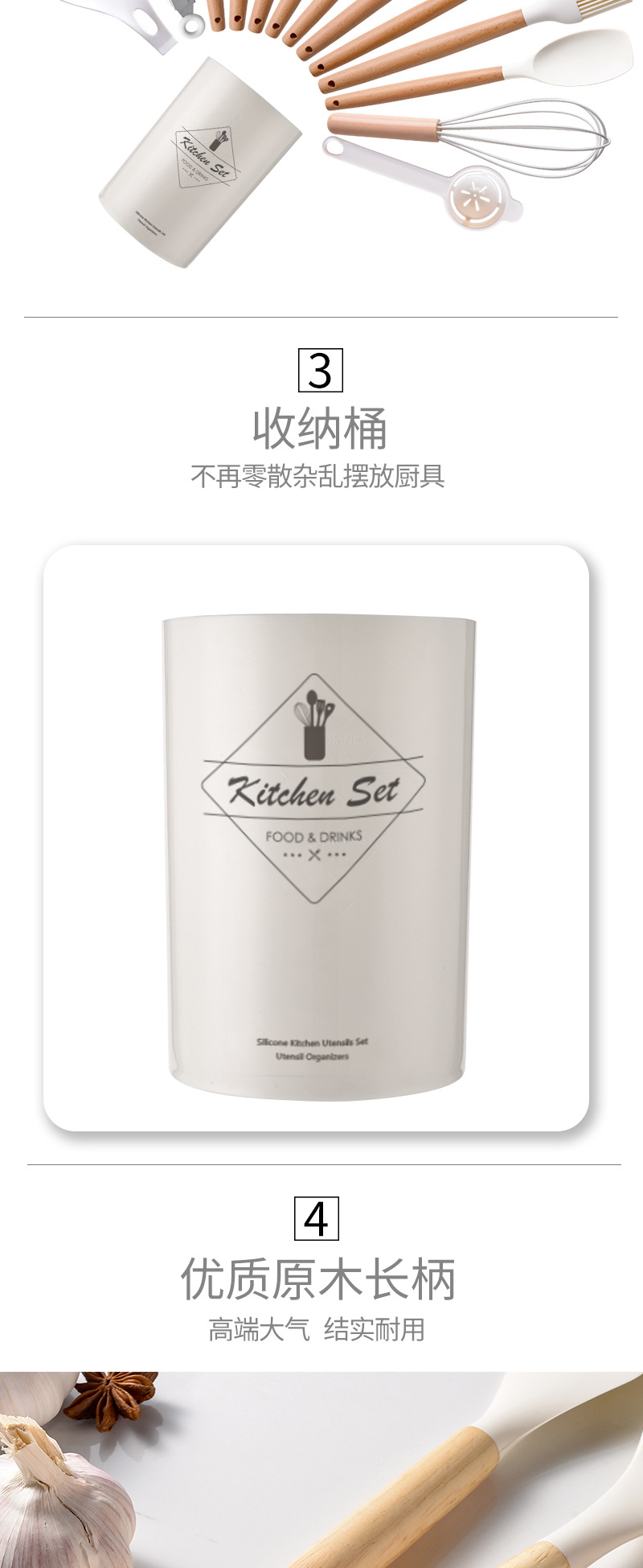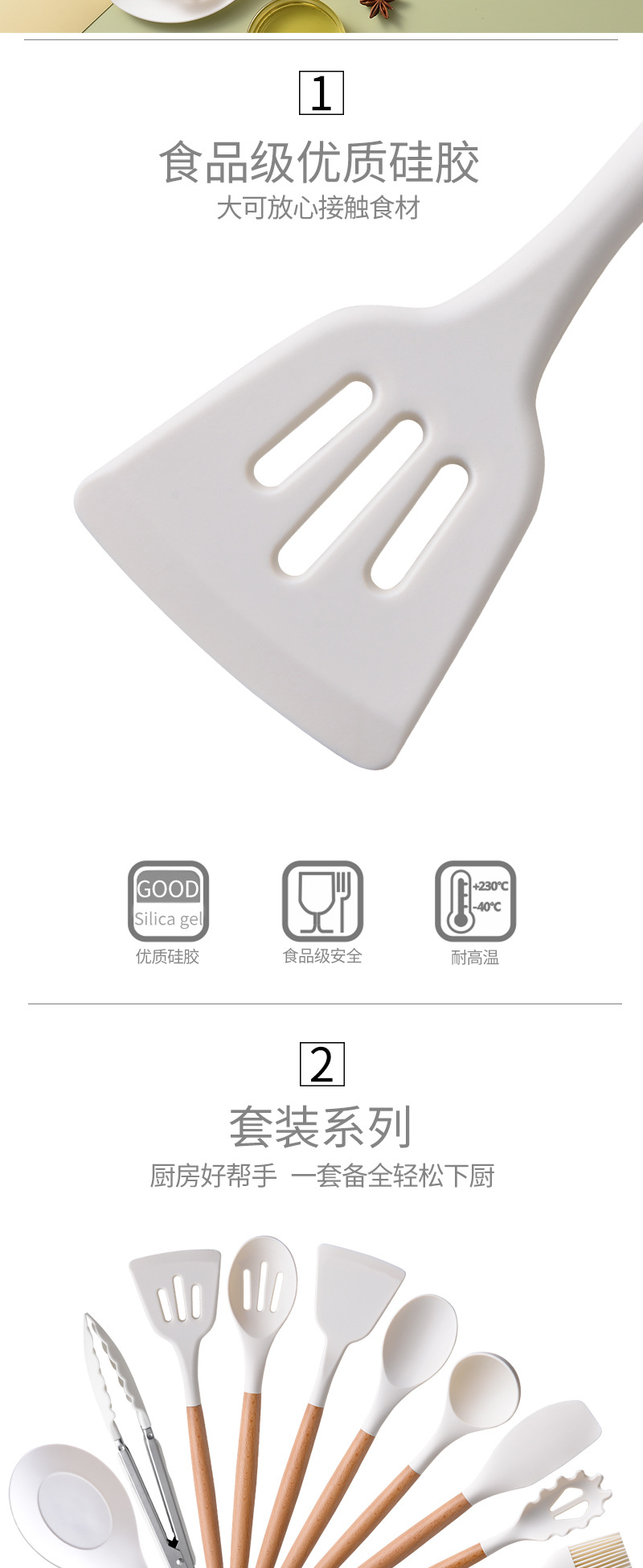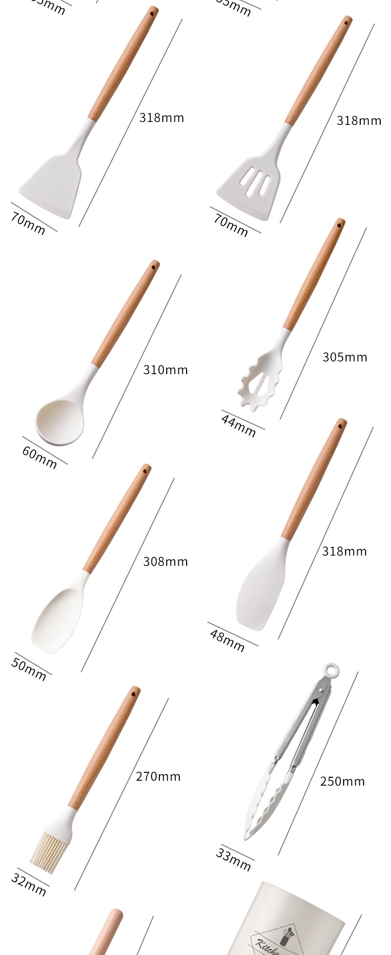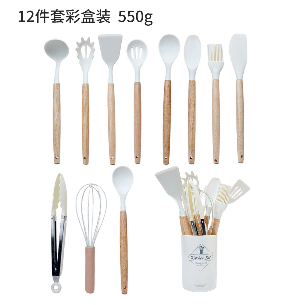 В наличии Легкая версия силиконовая посуда с круглым стволом и деревянной ручкой Набор из 14 предметов силиконовая кухонная утварь лопатка с антипригарным покрытием кухонные принадлежности