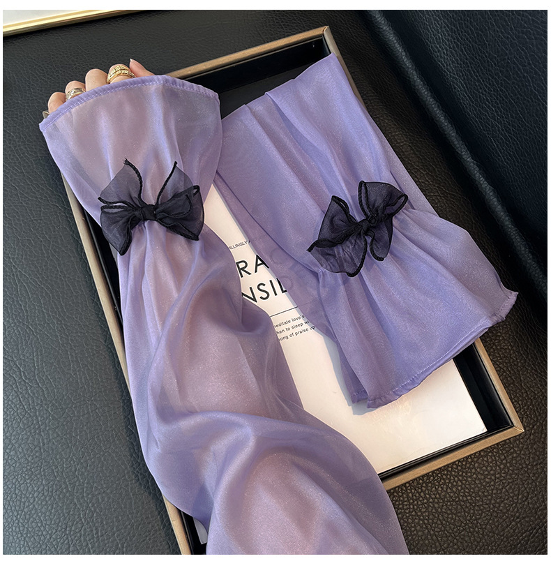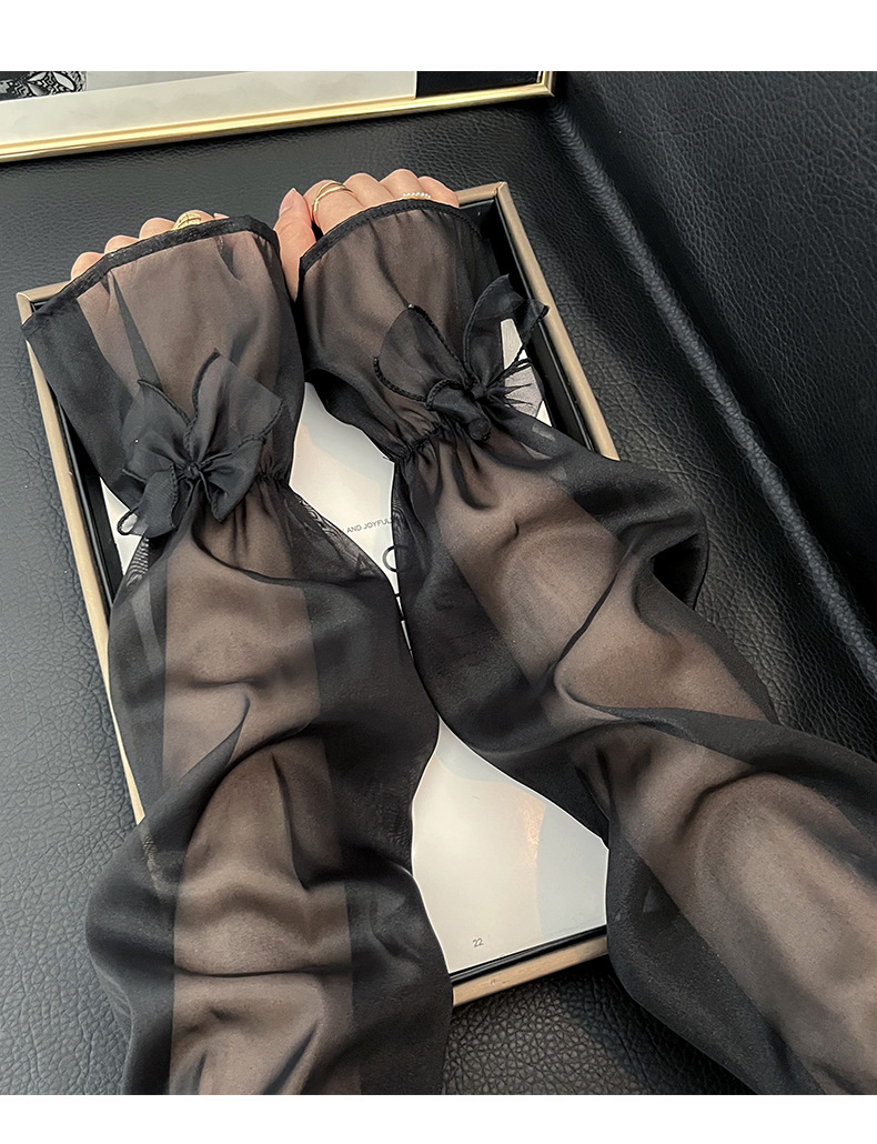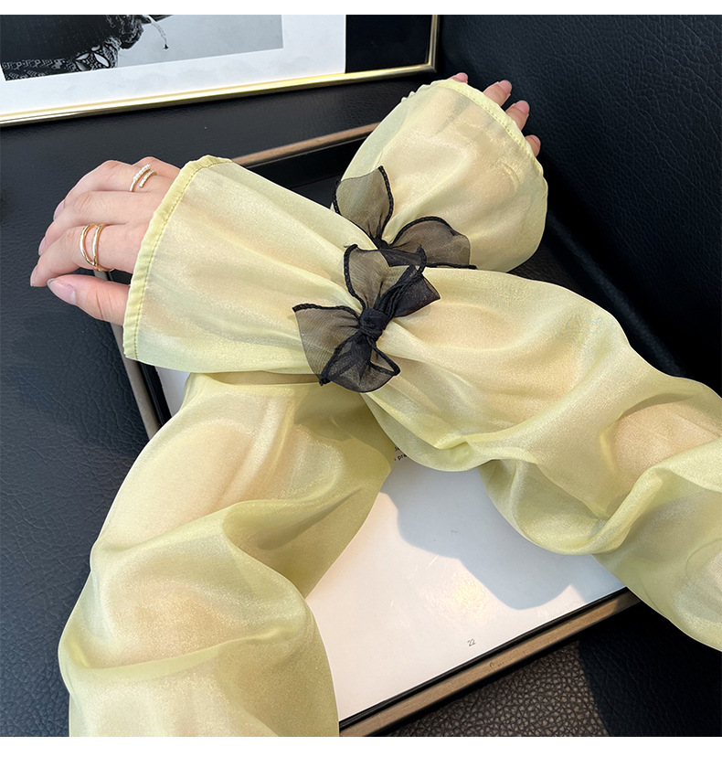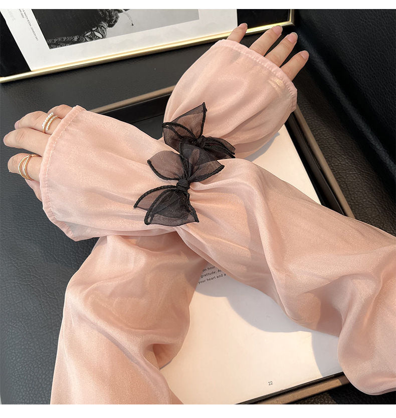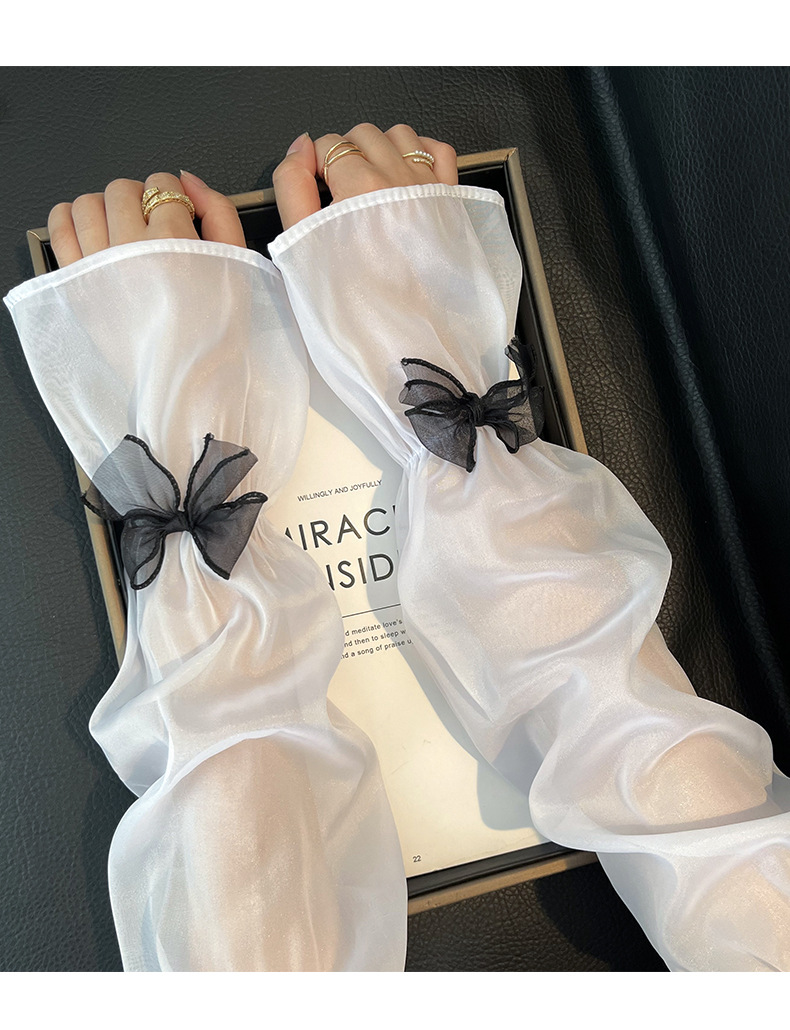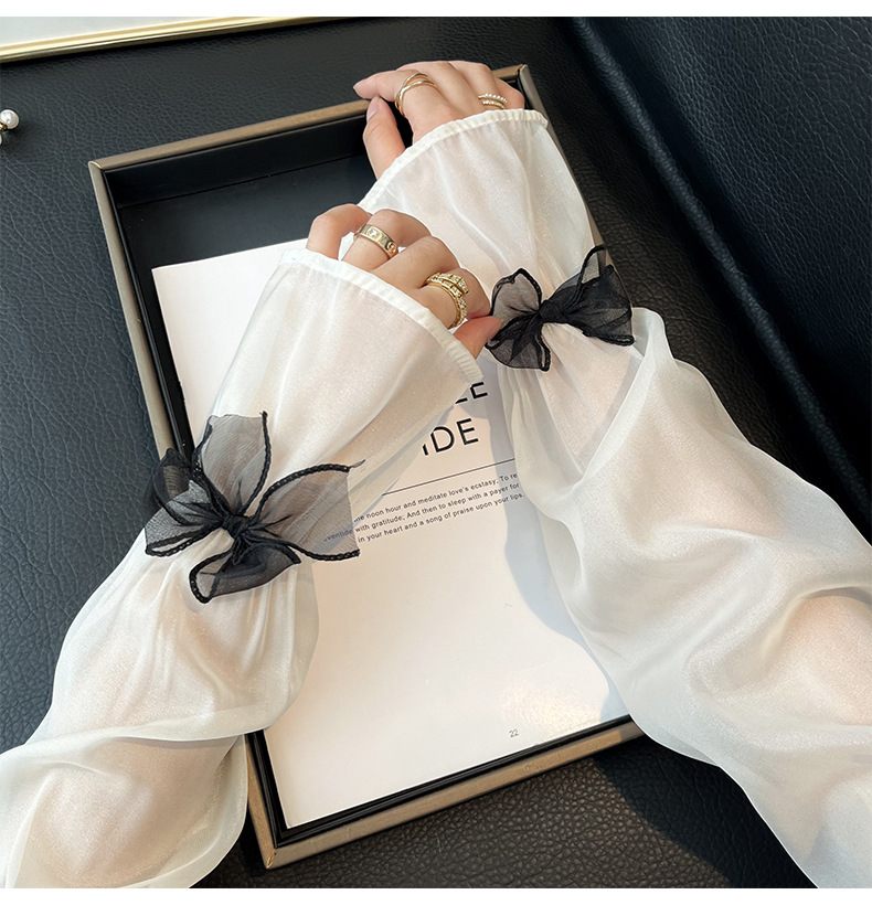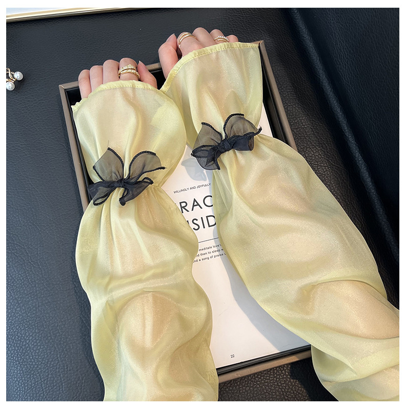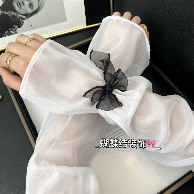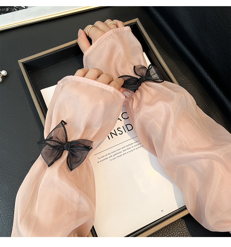 Летний солнцезащитный нарукавник женский однотонный бант принцессы милый кружевной длинный сетчатый большой тонкий рукав для льда