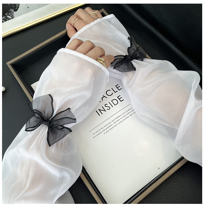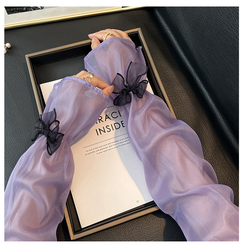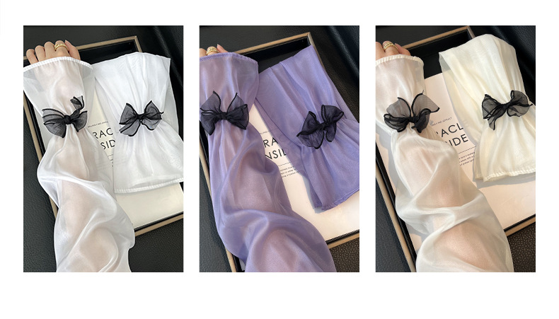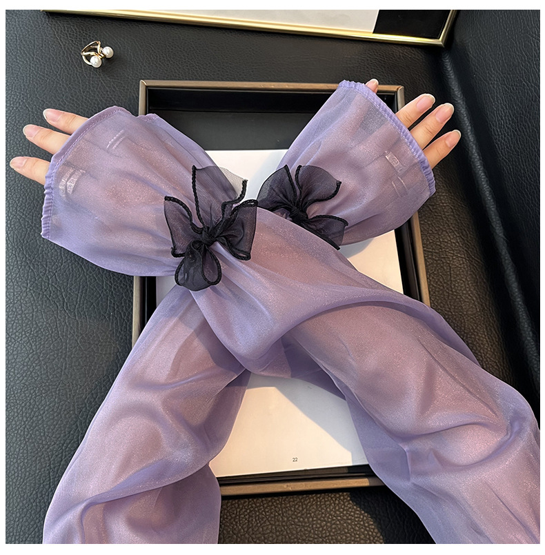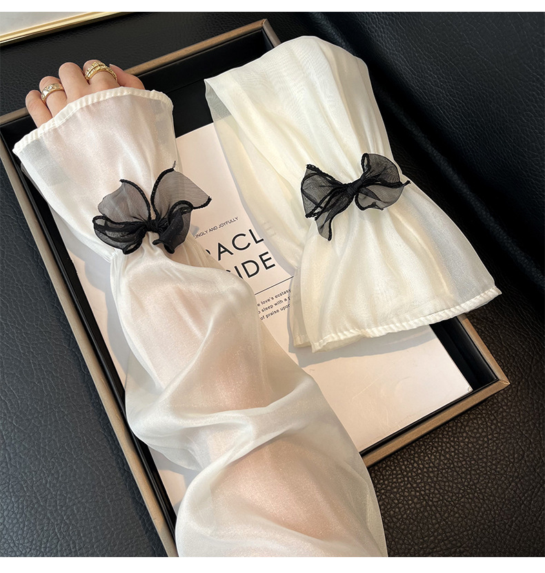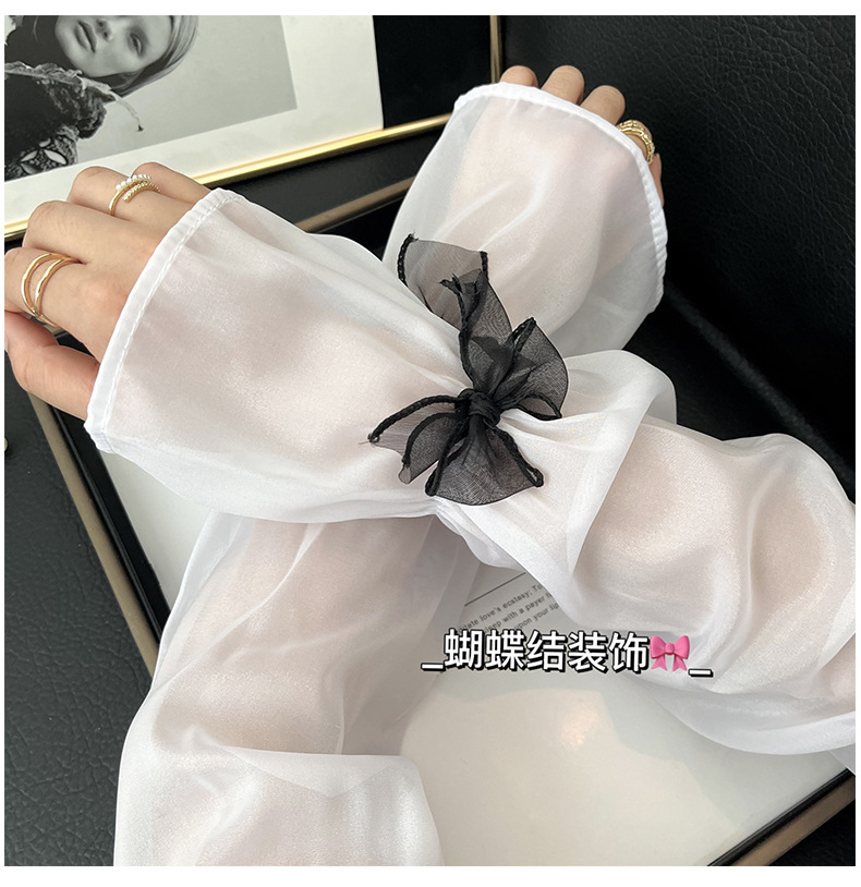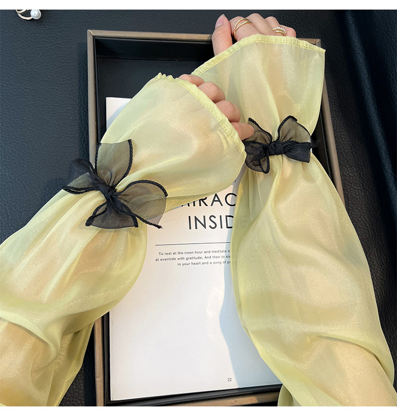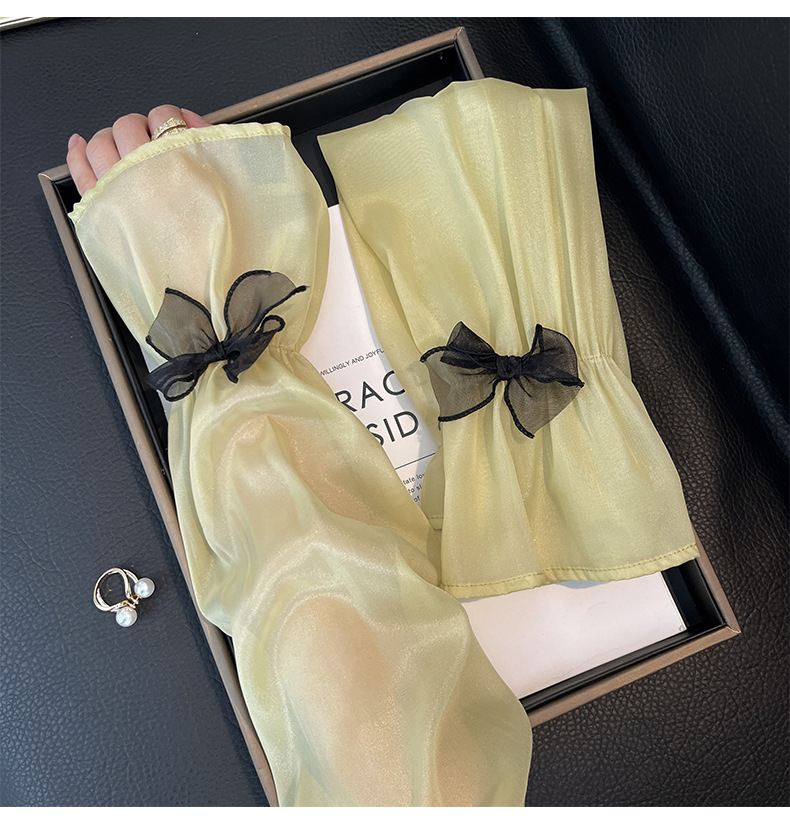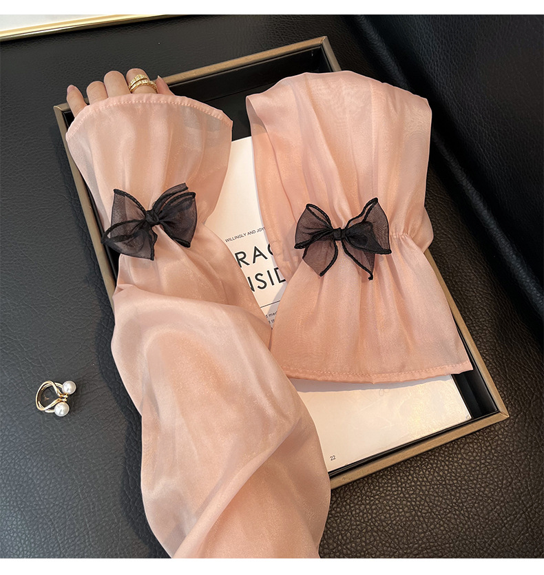 Летний солнцезащитный нарукавник женский однотонный бант принцессы милый кружевной длинный сетчатый большой тонкий рукав для льда