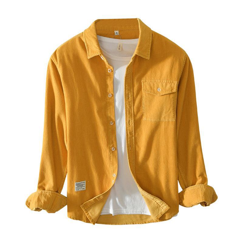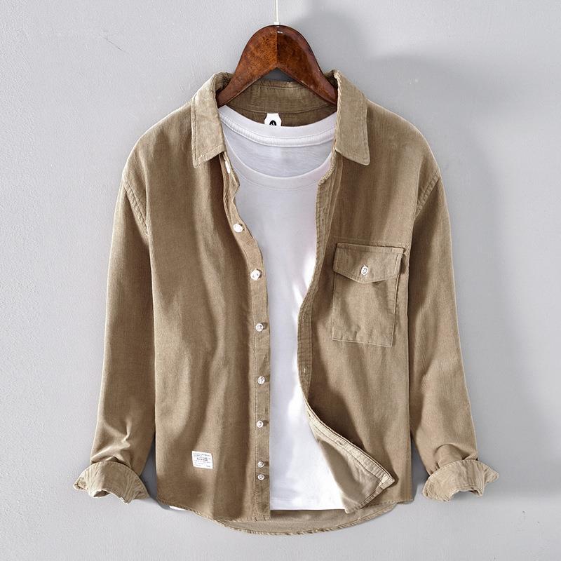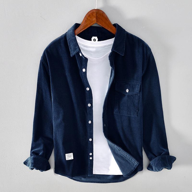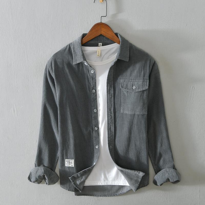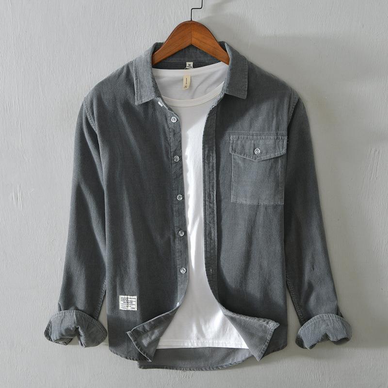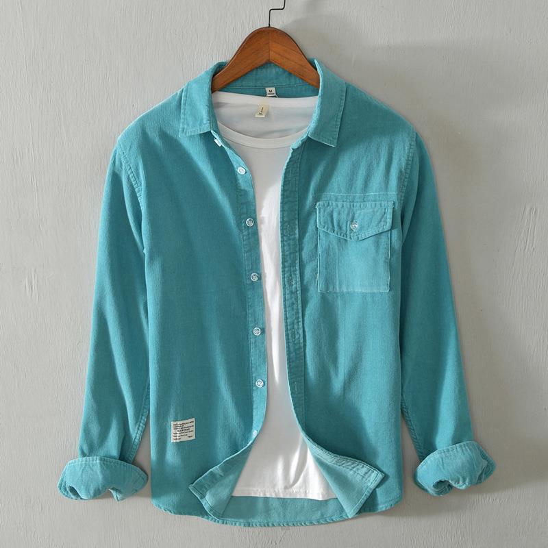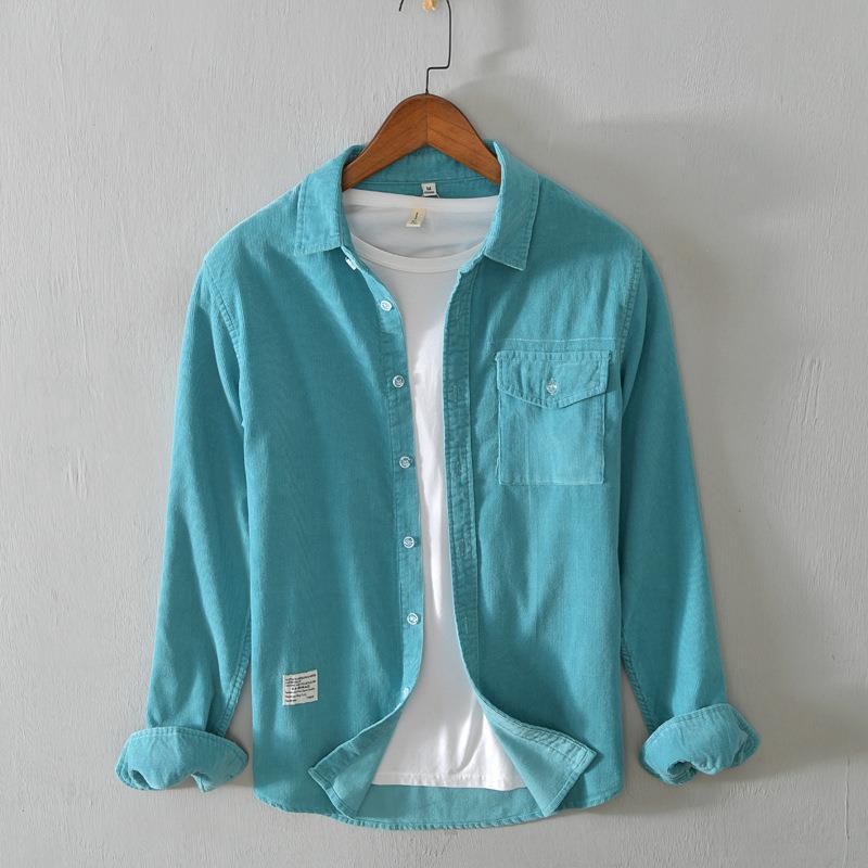 5080 осенне-зимняя хлопковая Вельветовая рубашка в стиле ретро, Мужская Однотонная рубашка с длинными рукавами, поколение волос