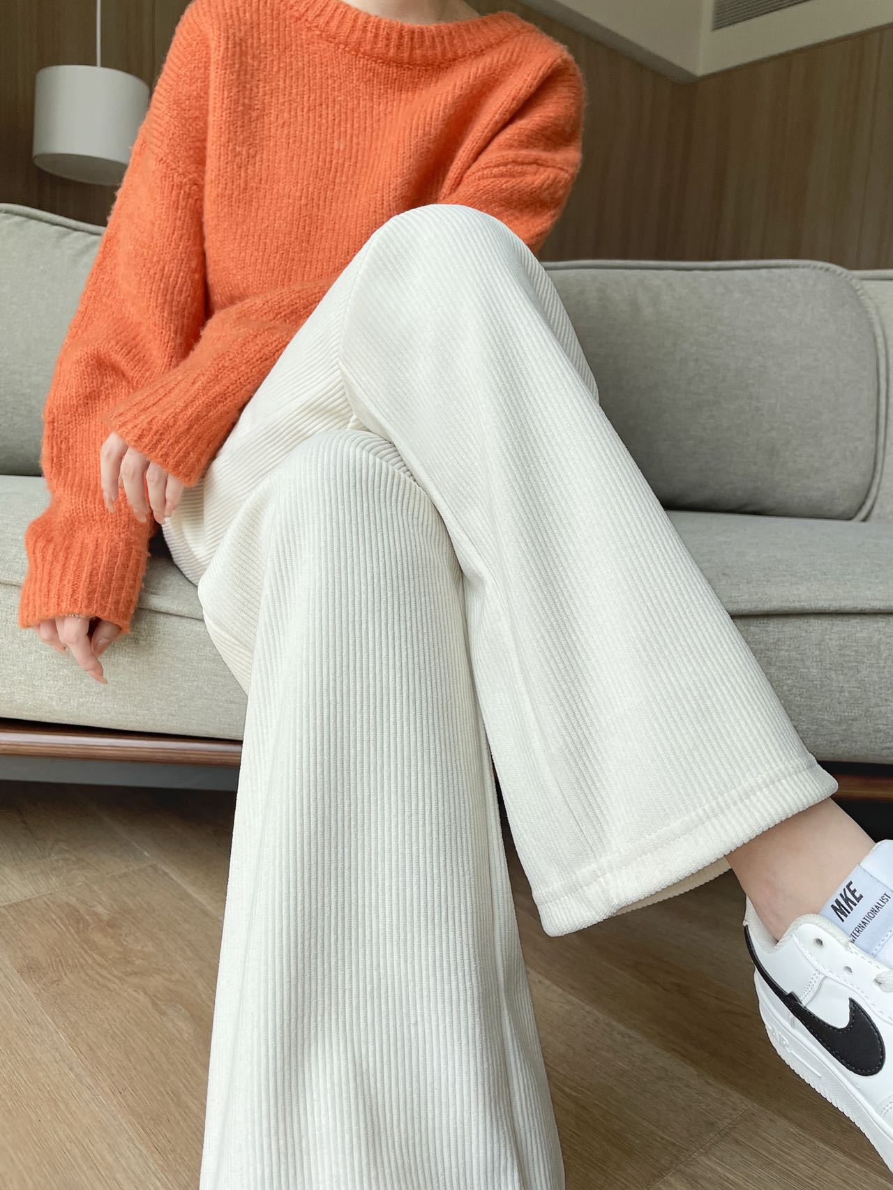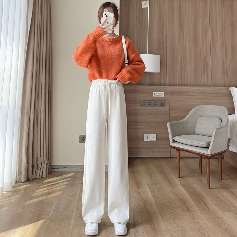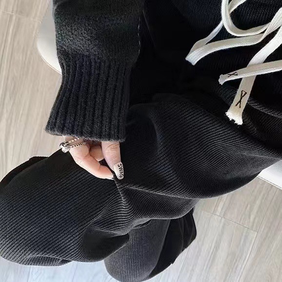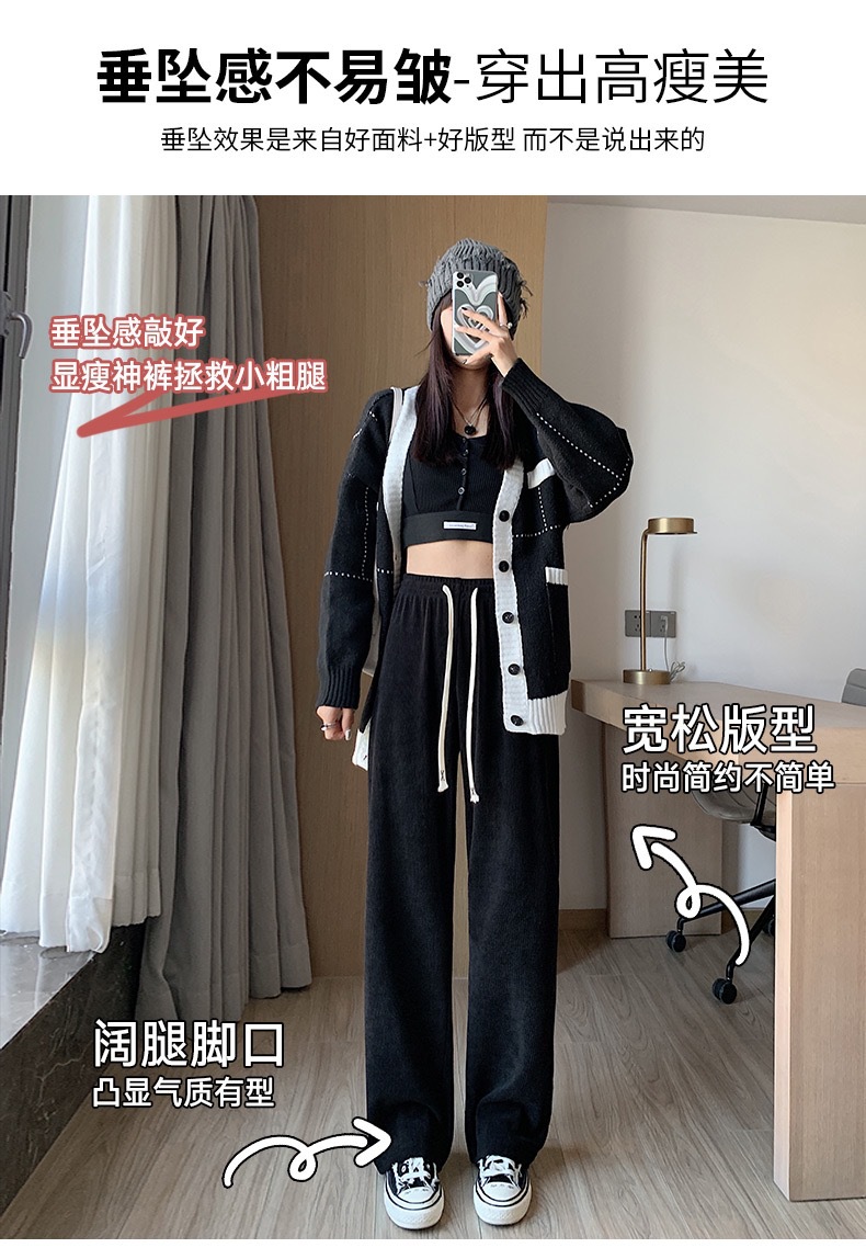 Вельветовые широкие брюки для женщин 2023 весна и осень Новые облегающие подвески в Корейском стиле широкие Свободные европейские хлопковые бархатные Модные Повседневные Брюки Для Женщин