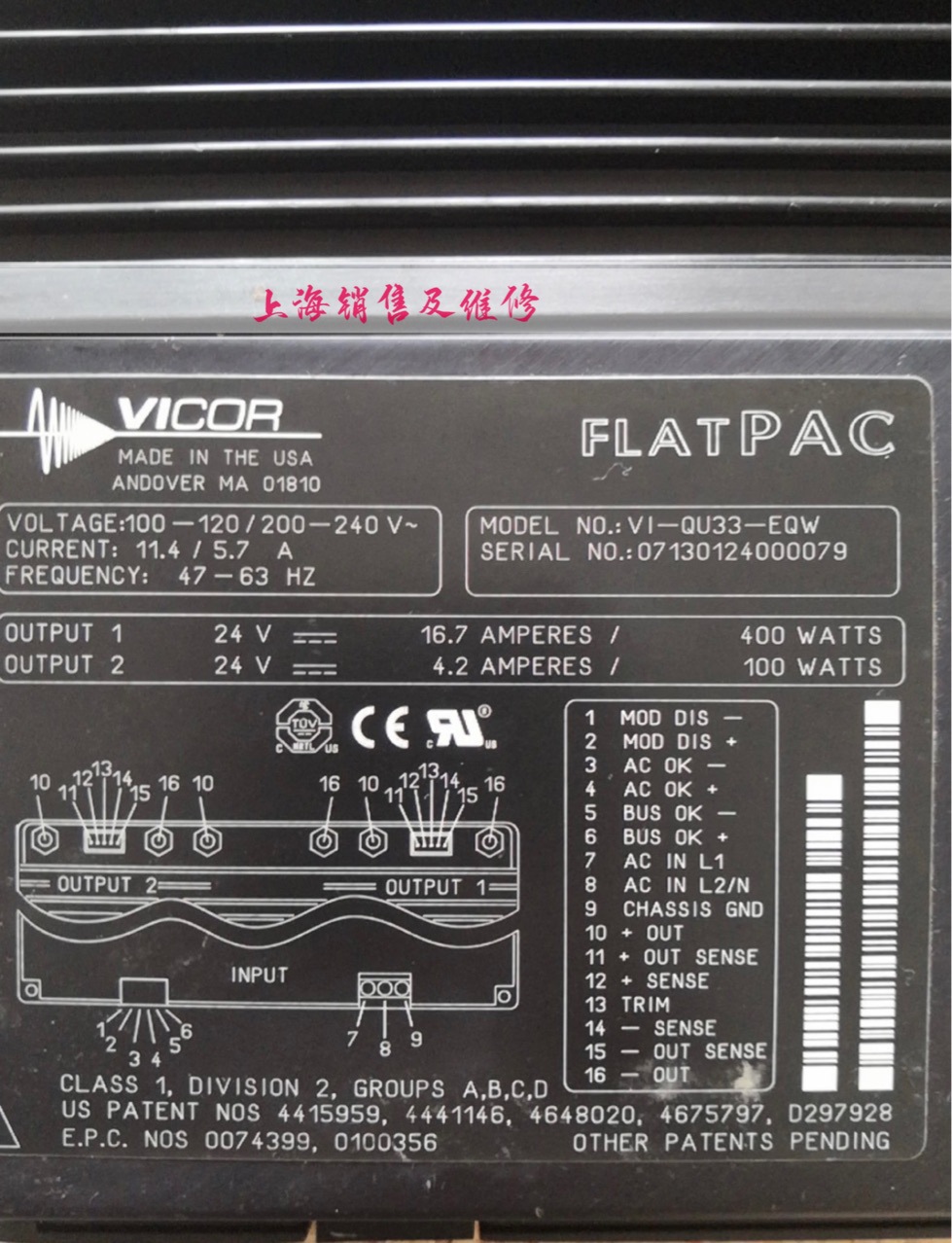 Блок питания VICOR V1-QU33-EQW также ремонт 24В 16,7А 24В 4,2А запит