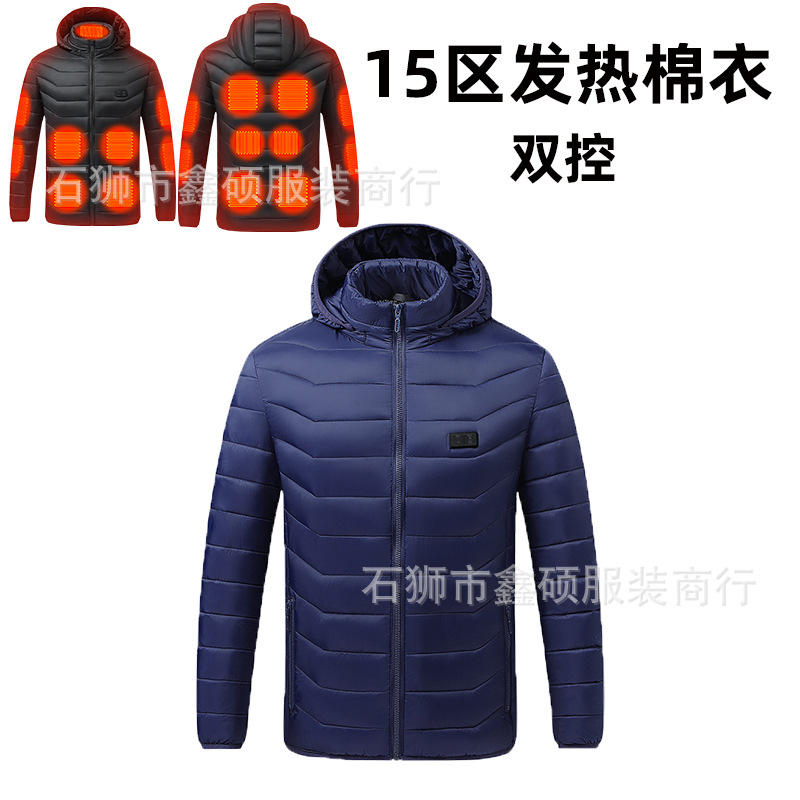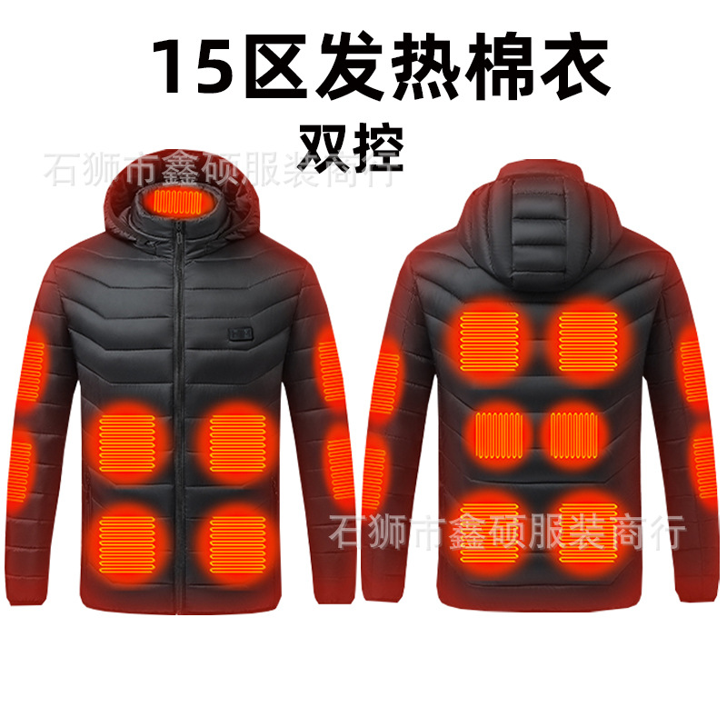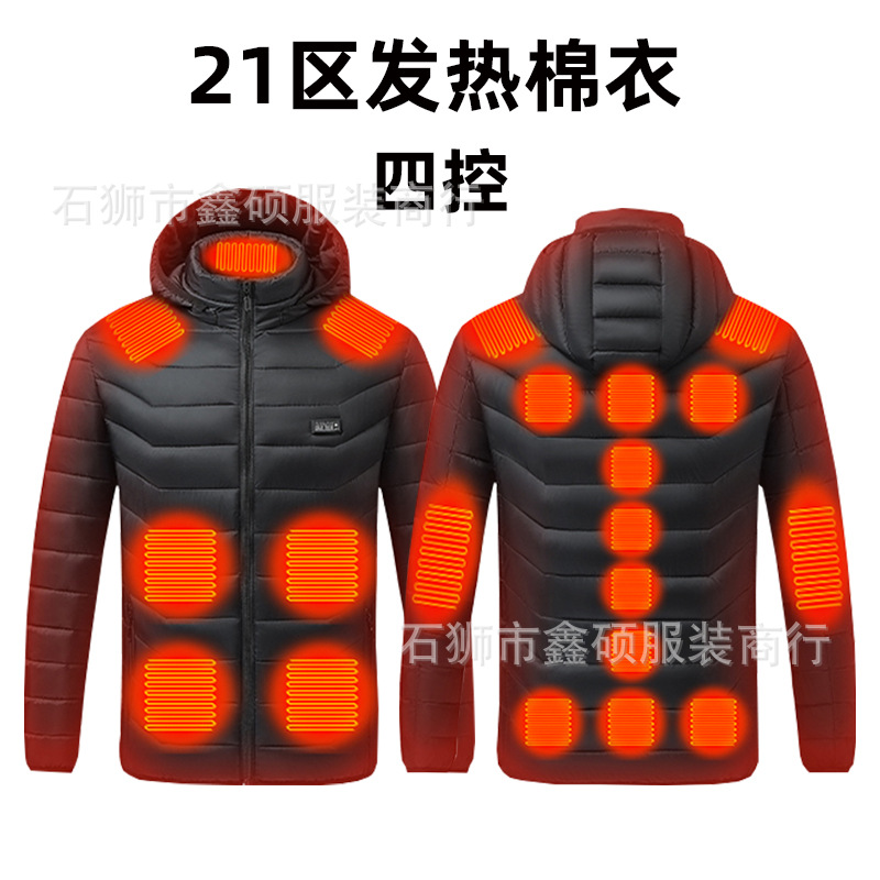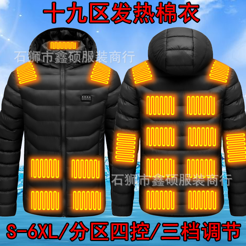 Трансграничная умная обогревающая куртка с хлопковой подкладкой для мужчин и женщин, заряжающая нагревательная одежда с хлопковой подкладкой через USB-зарядка с подогревом хлопковой подкладкой Теплое пальто с капюшоном