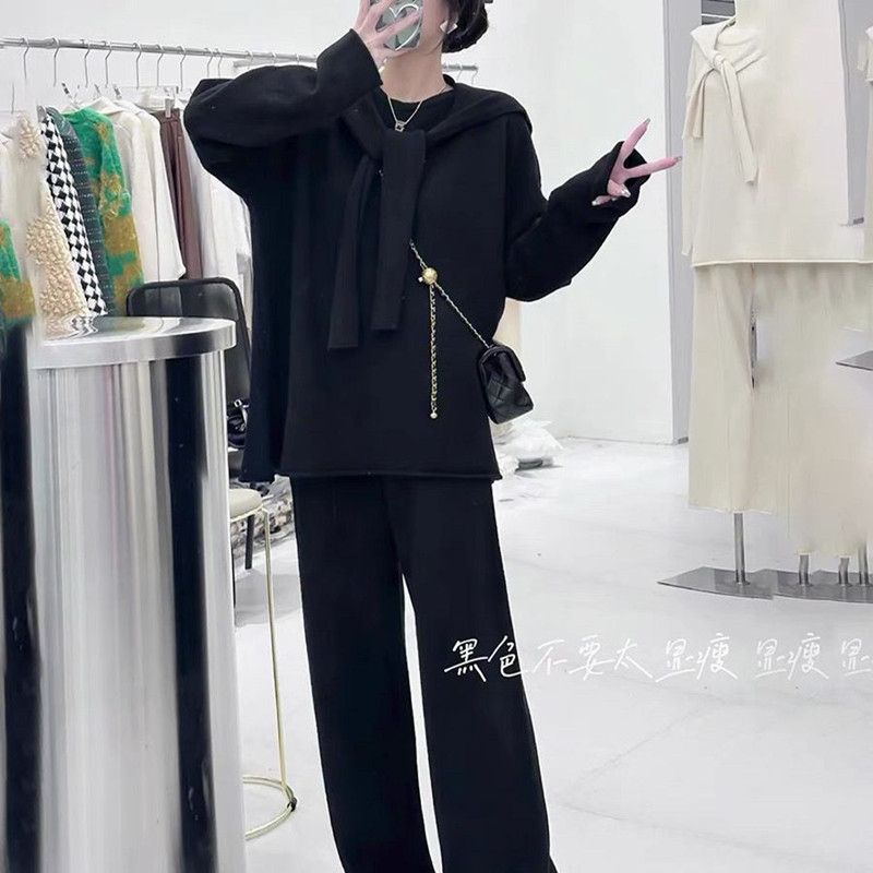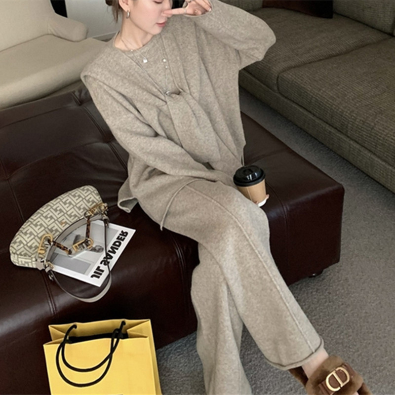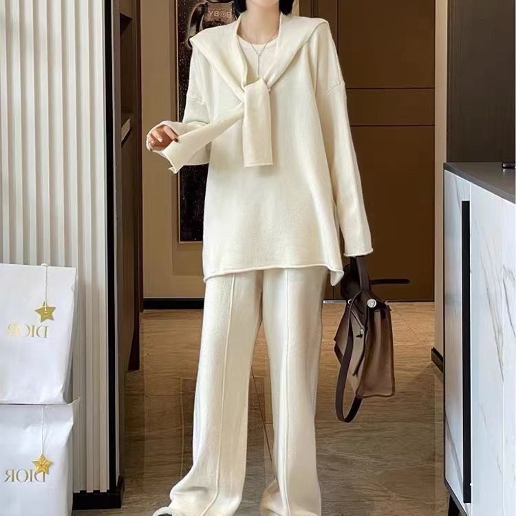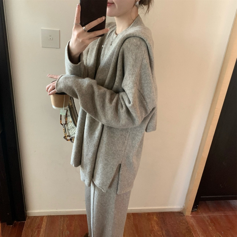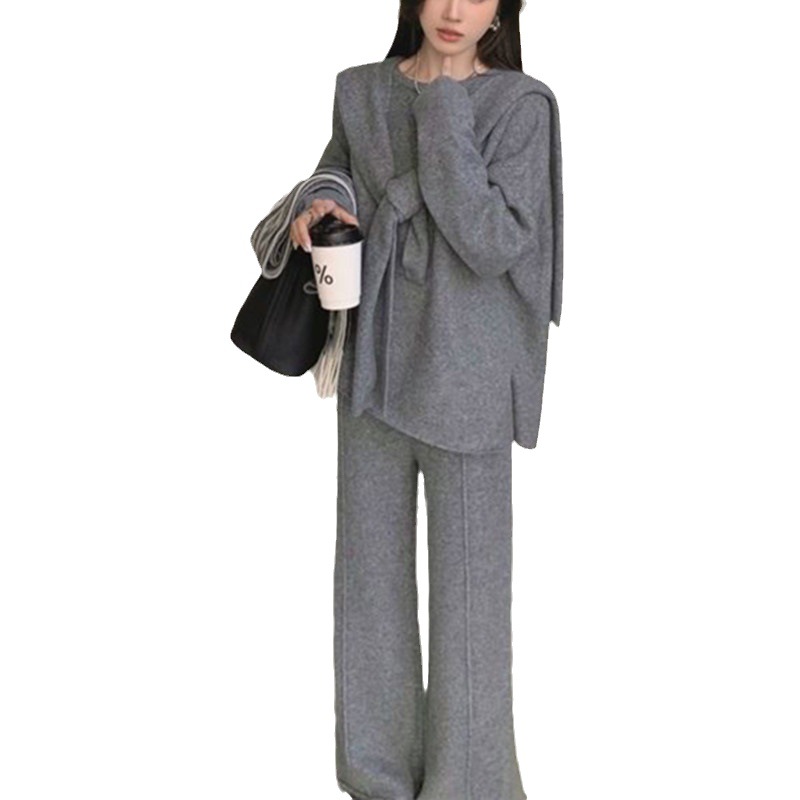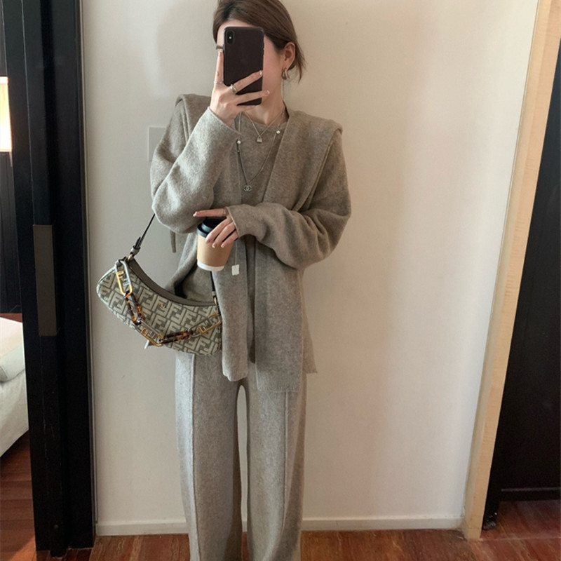 Осенне-Зимний новый вязаный Топ с шалью и широкими штанинами, комплект из трех предметов, элегантный свободный высококачественный ленивый свитер, костюм-свитер