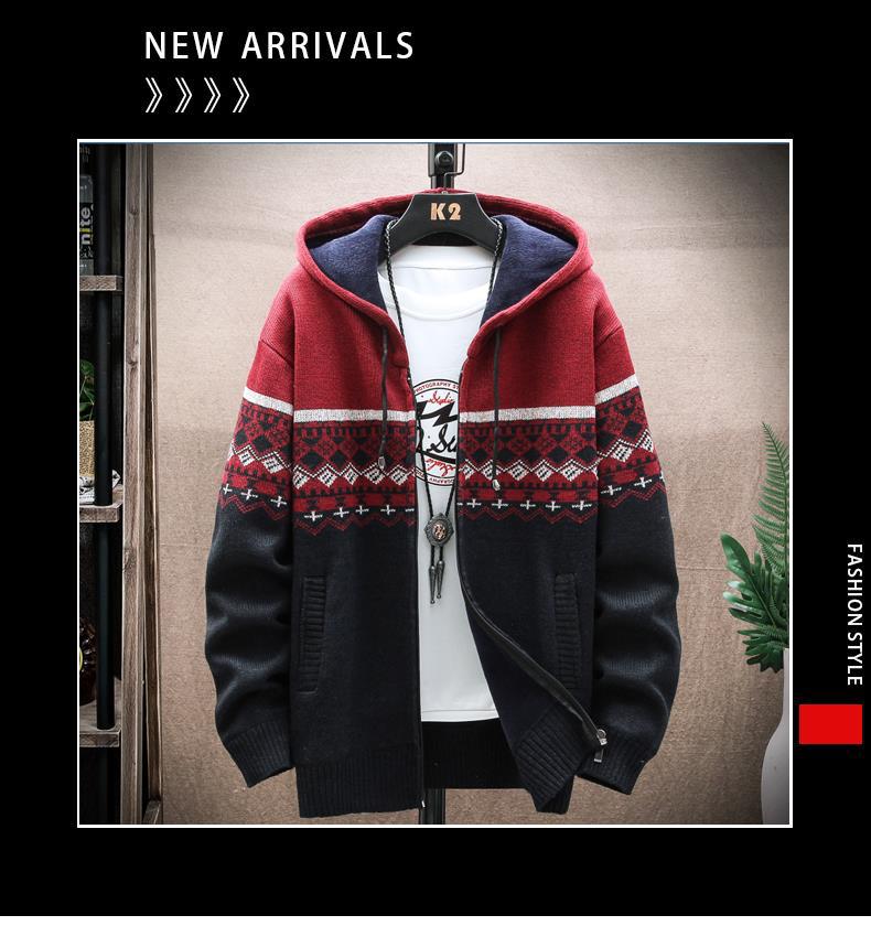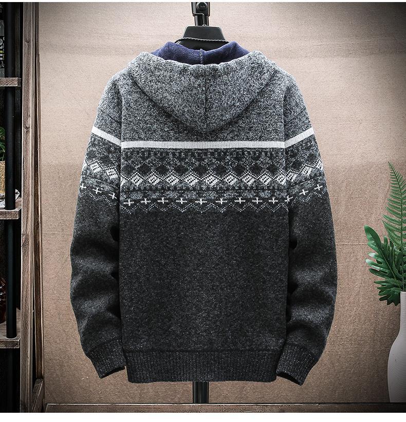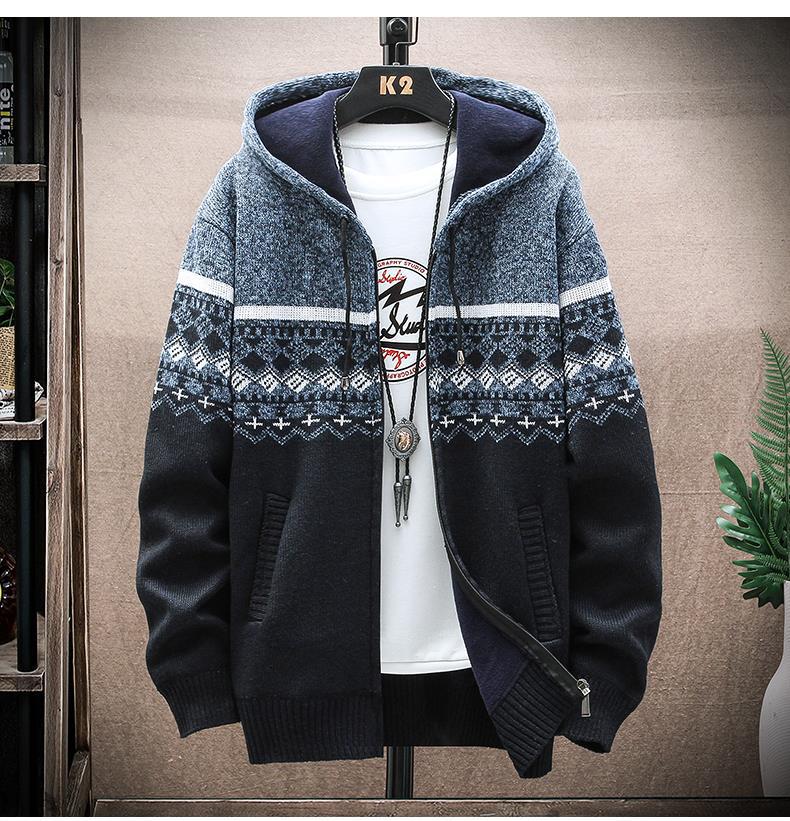Мужская верхняя одежда, куртка 2025 года, осень и зима, новый экспортный повседневный европейский и американский кардиган с капюшоном, вязаный утолщенный бархатный свитер