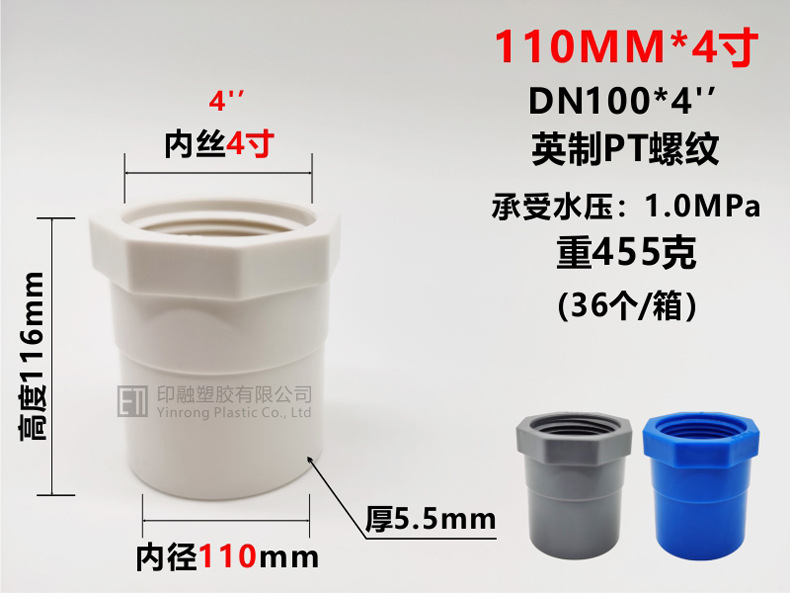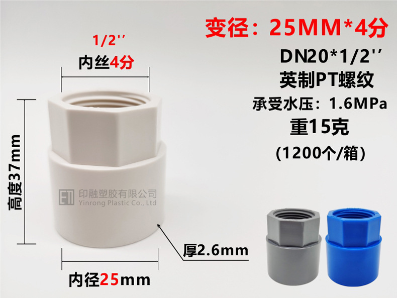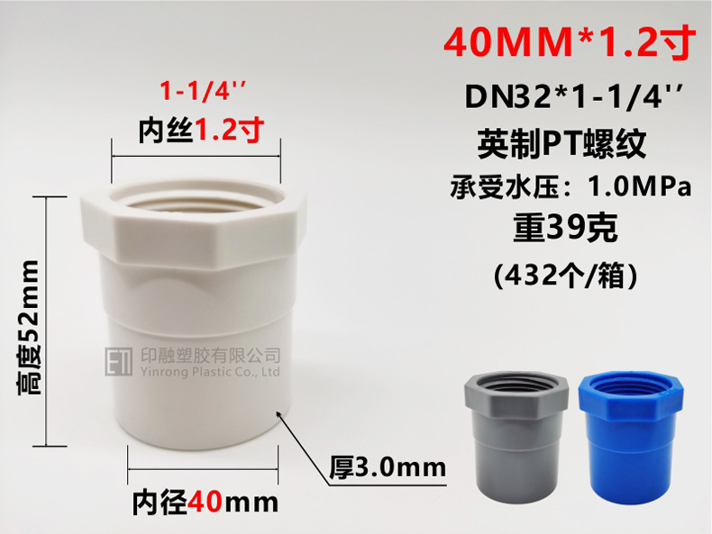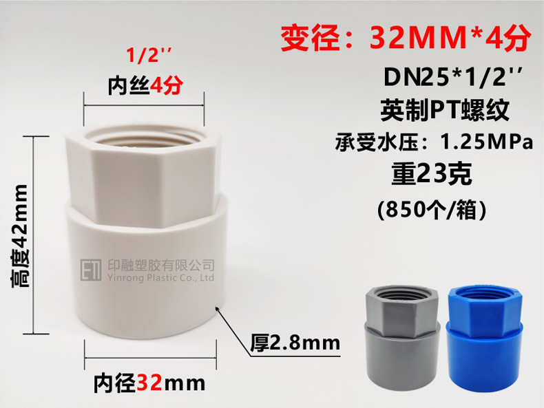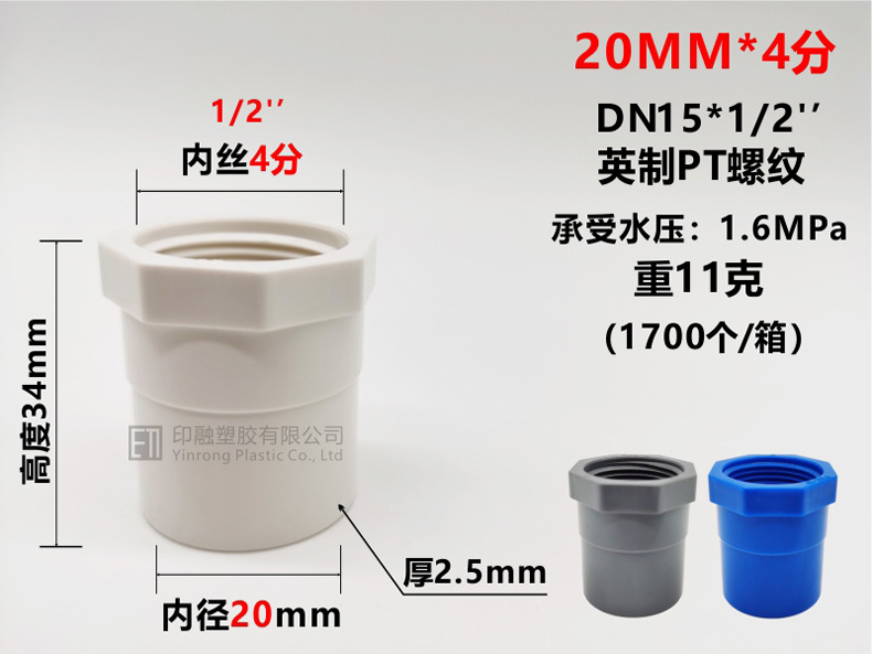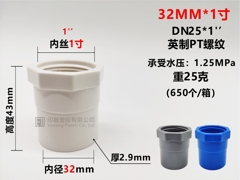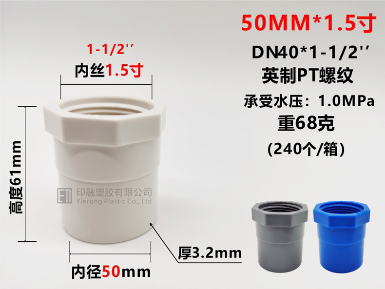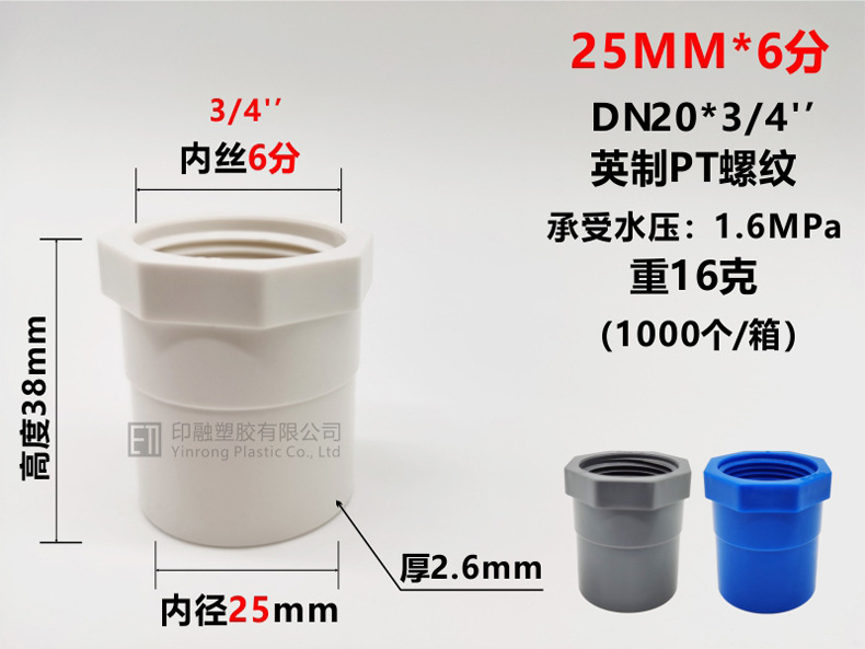 Внутренняя проволока из ПВХ напрямую 20*1/25 до 4 минут от 32 мм до 6 минут 1 дюйм 3/4 внутренняя резьба 50637590 соединение