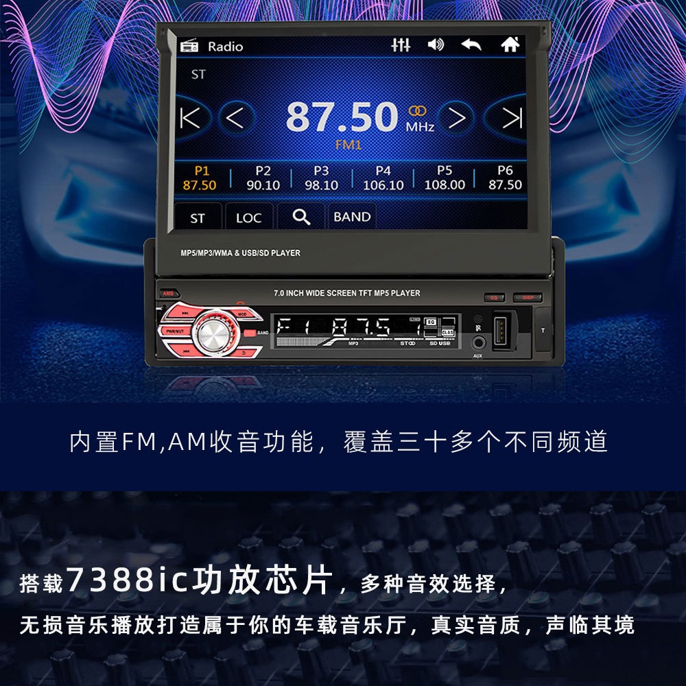 Автомобильный MP5-плеер 7inch с выдвижным экраном, GPS-навигацией, USB, поддержкой карт памяти, радио и Bluetooth (модель 9601u)