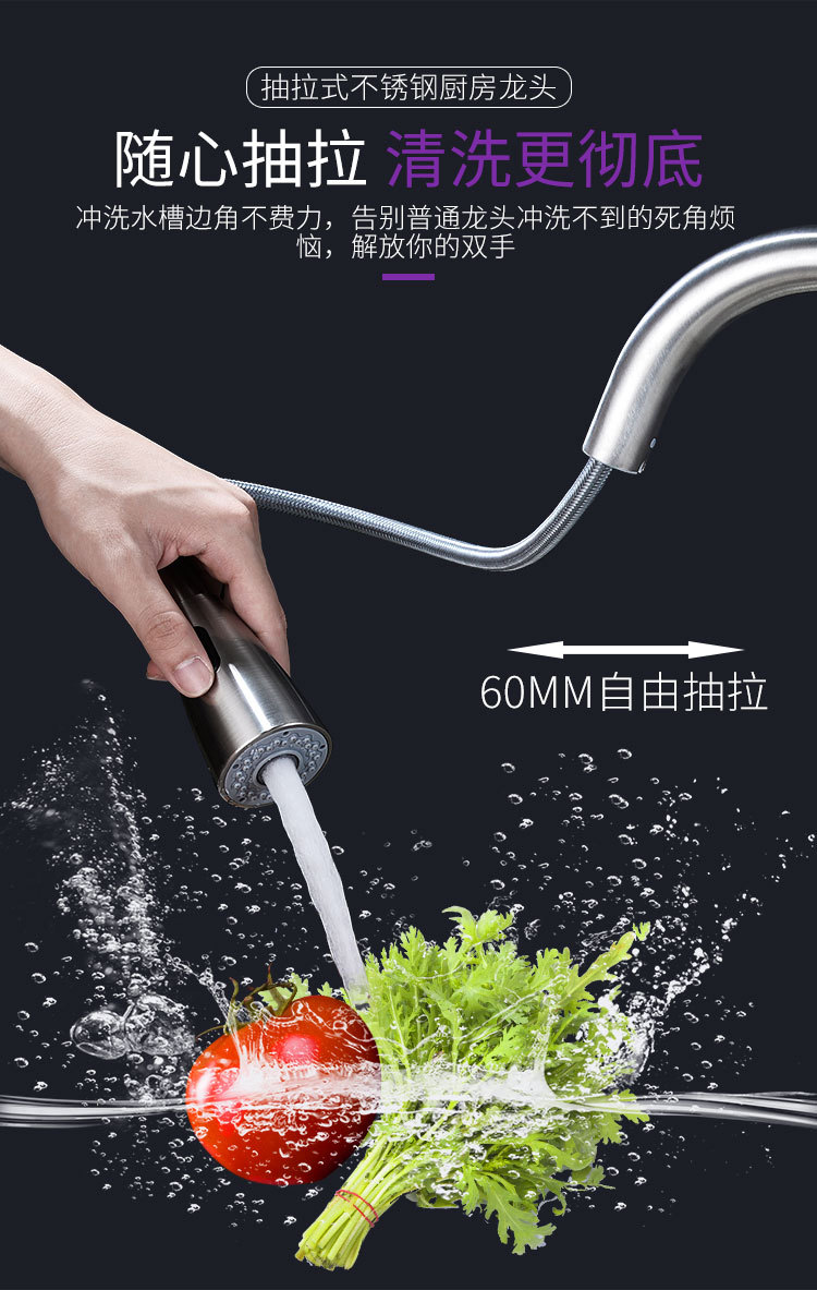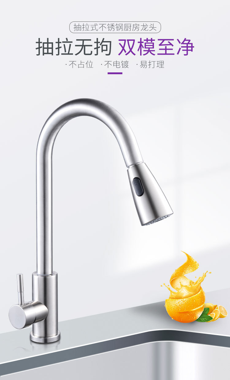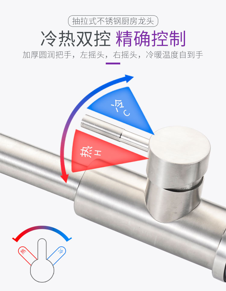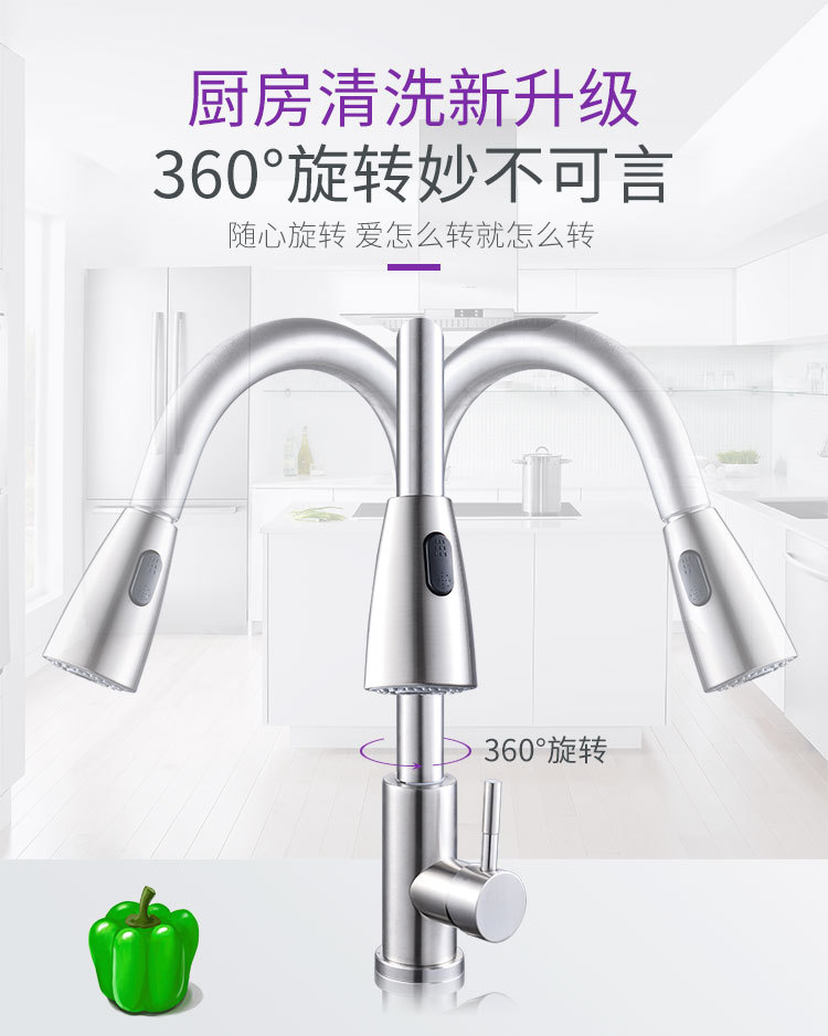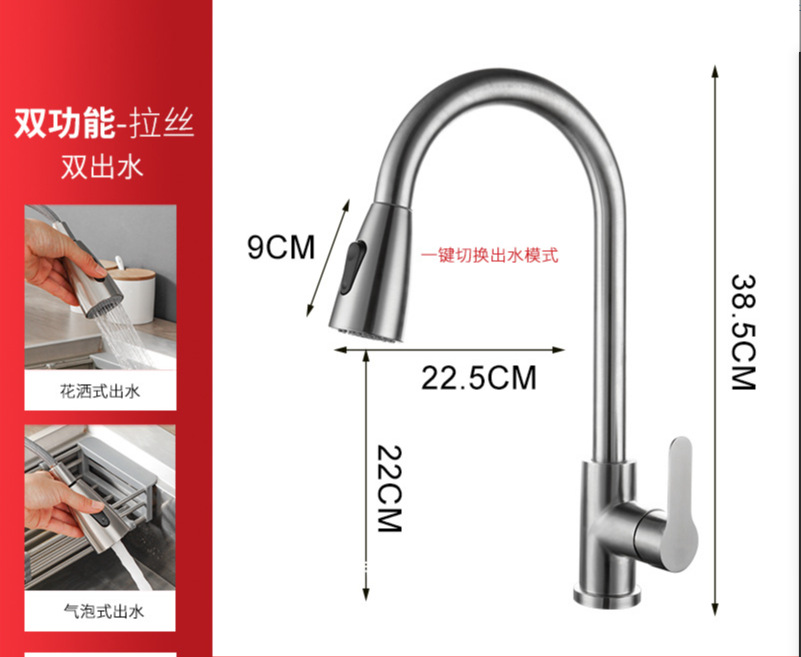 Выдвижной смеситель из нержавеющей стали для кухонной мойки с двумя режимами подачи горячей и холодной воды, волшебная насадка.