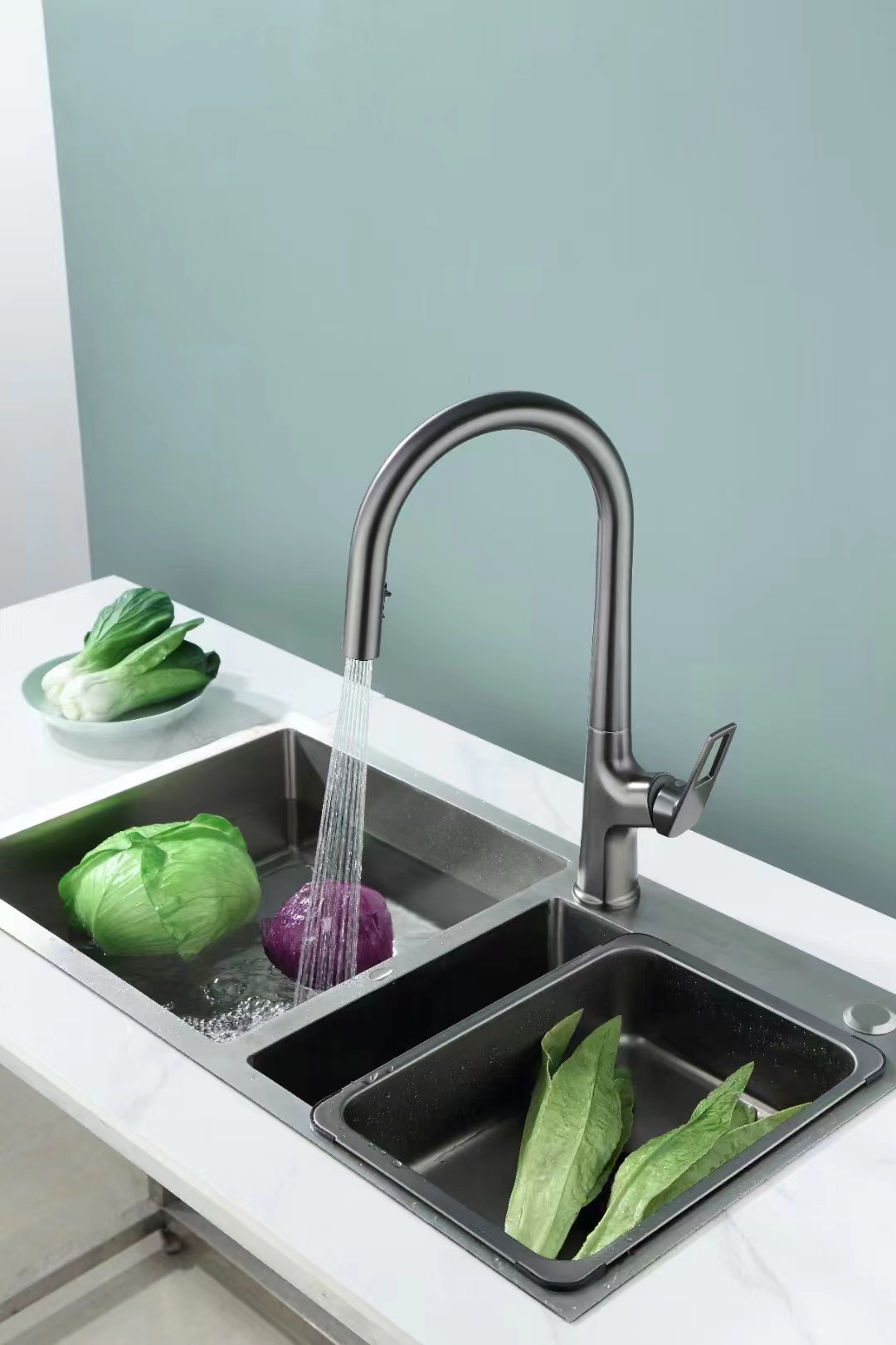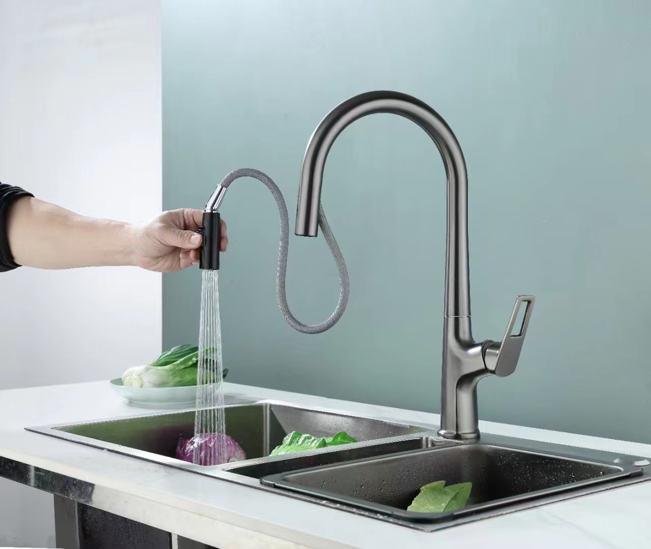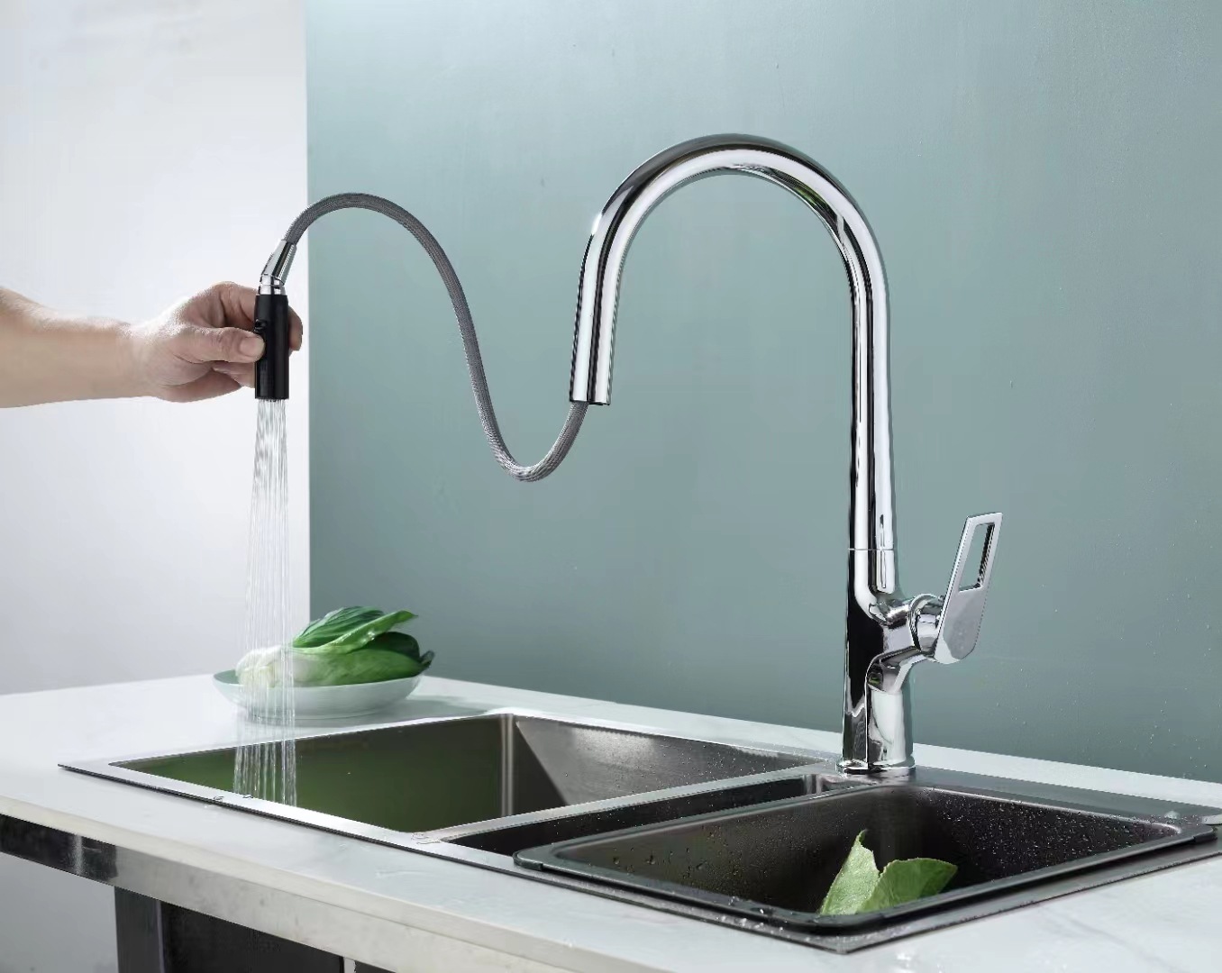 Выдвижной смеситель из нержавеющей стали для кухонной мойки с двумя режимами подачи горячей и холодной воды, волшебная насадка.