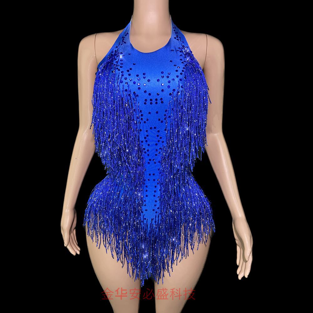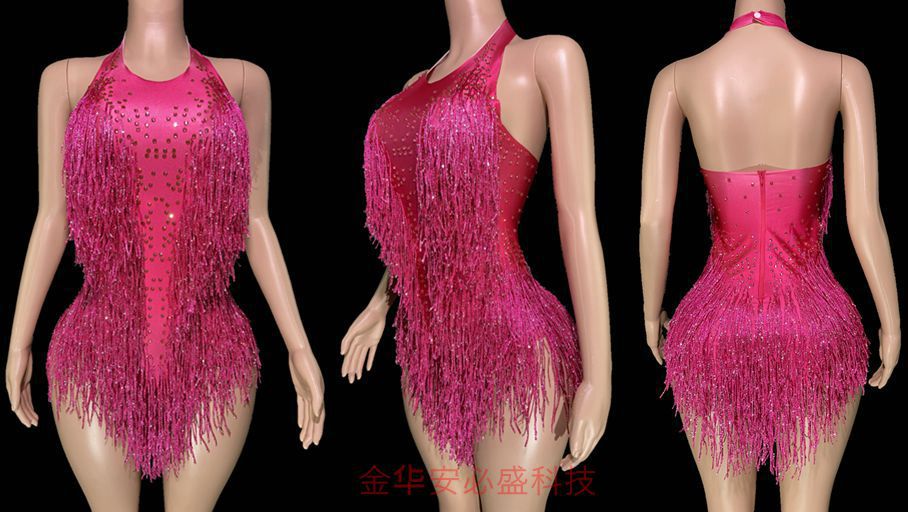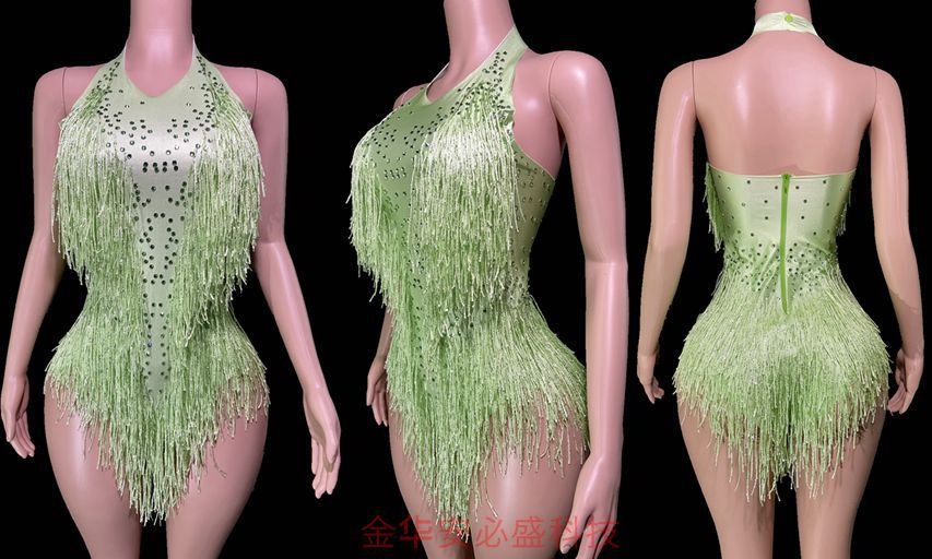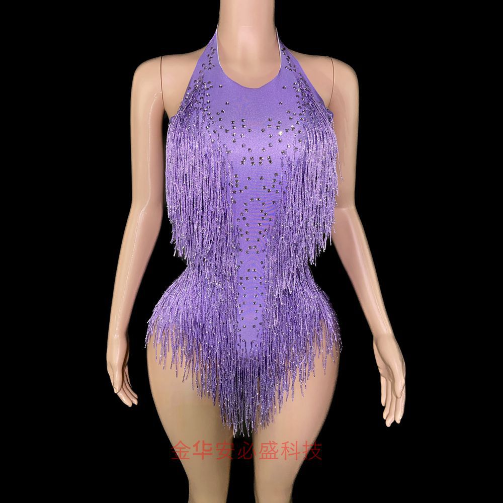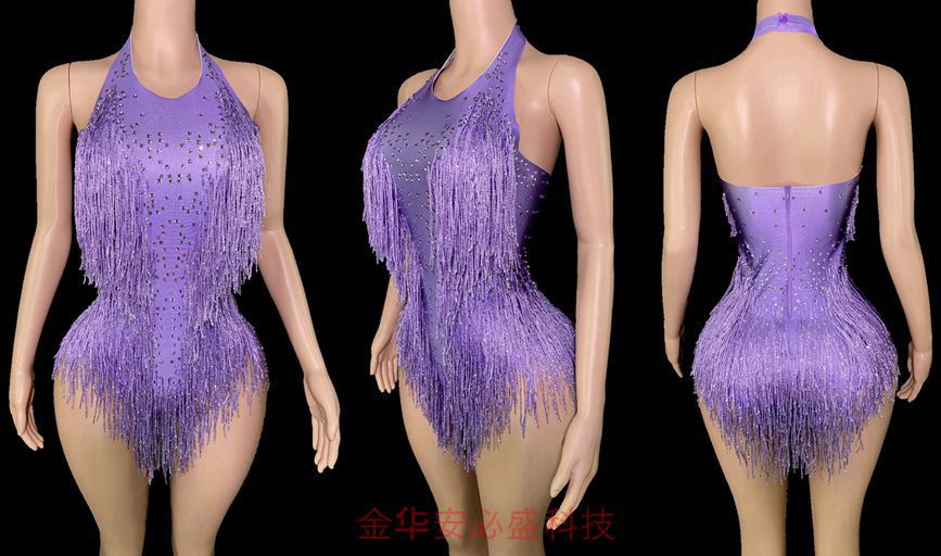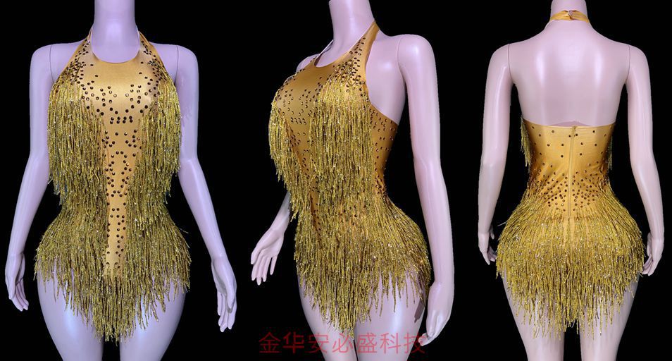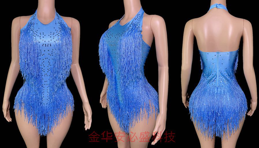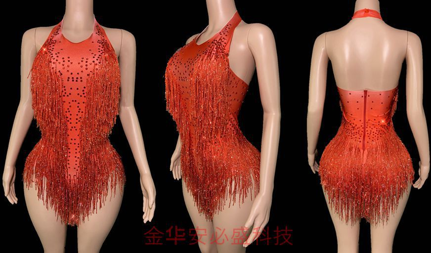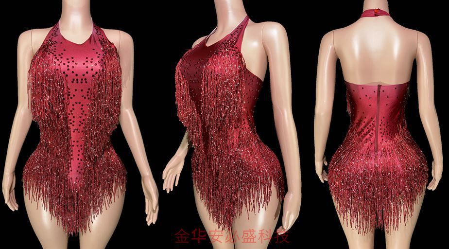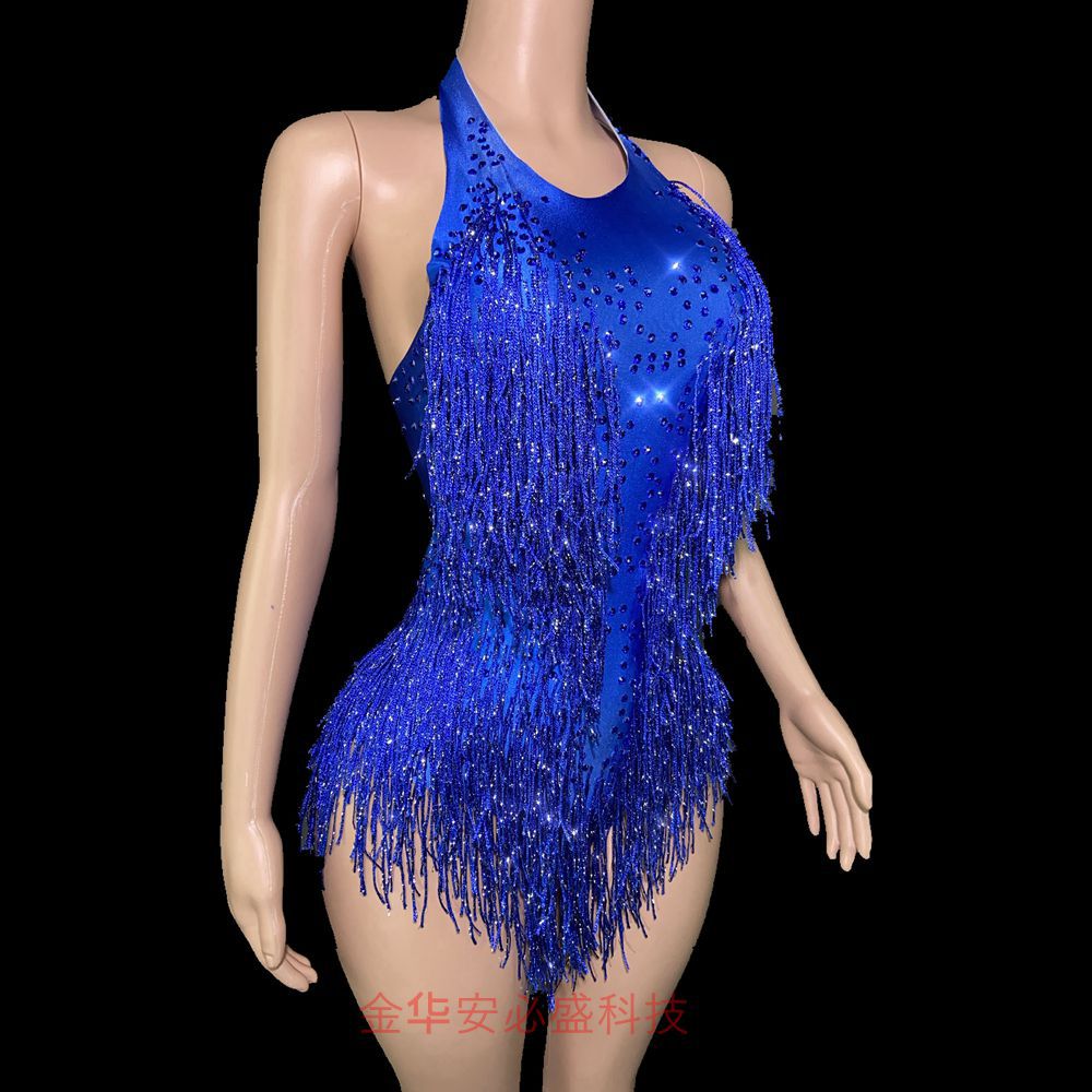 Хит продаж на Amazon: сексуальный безрукавный комбинезон с бахромой и яркими стразами для танцев, одежда для латиноамериканских танцев и соревнований.
