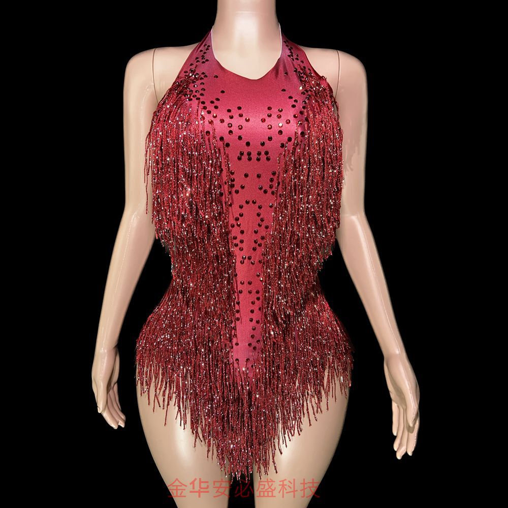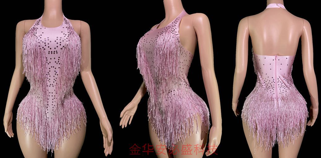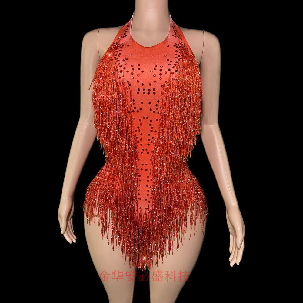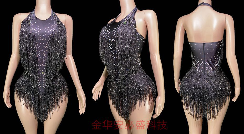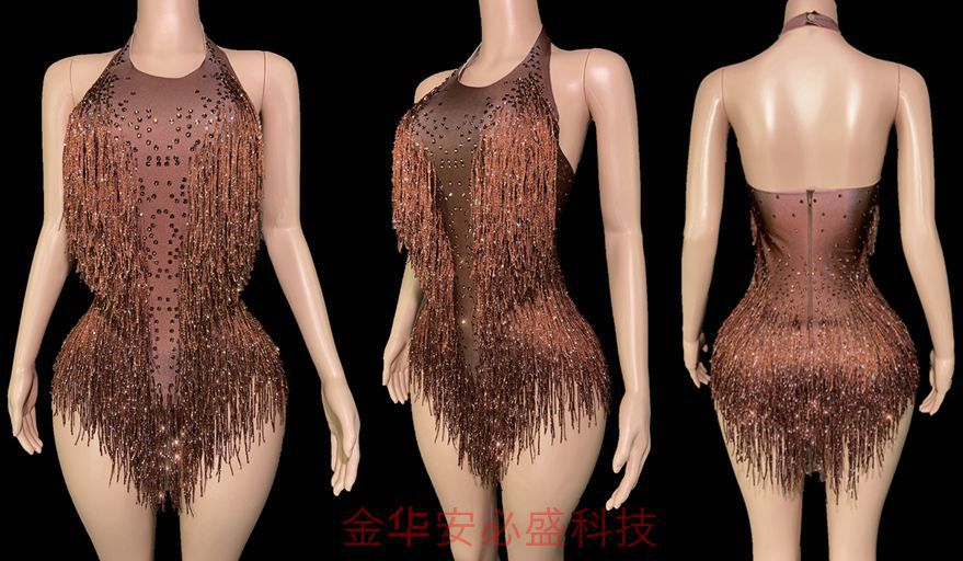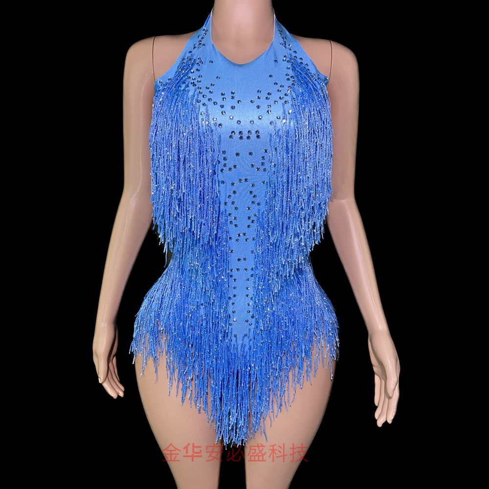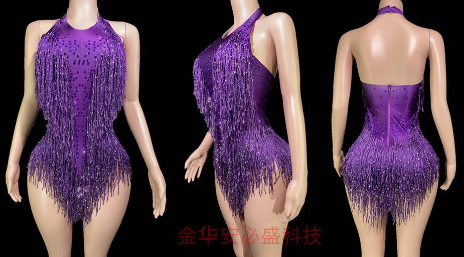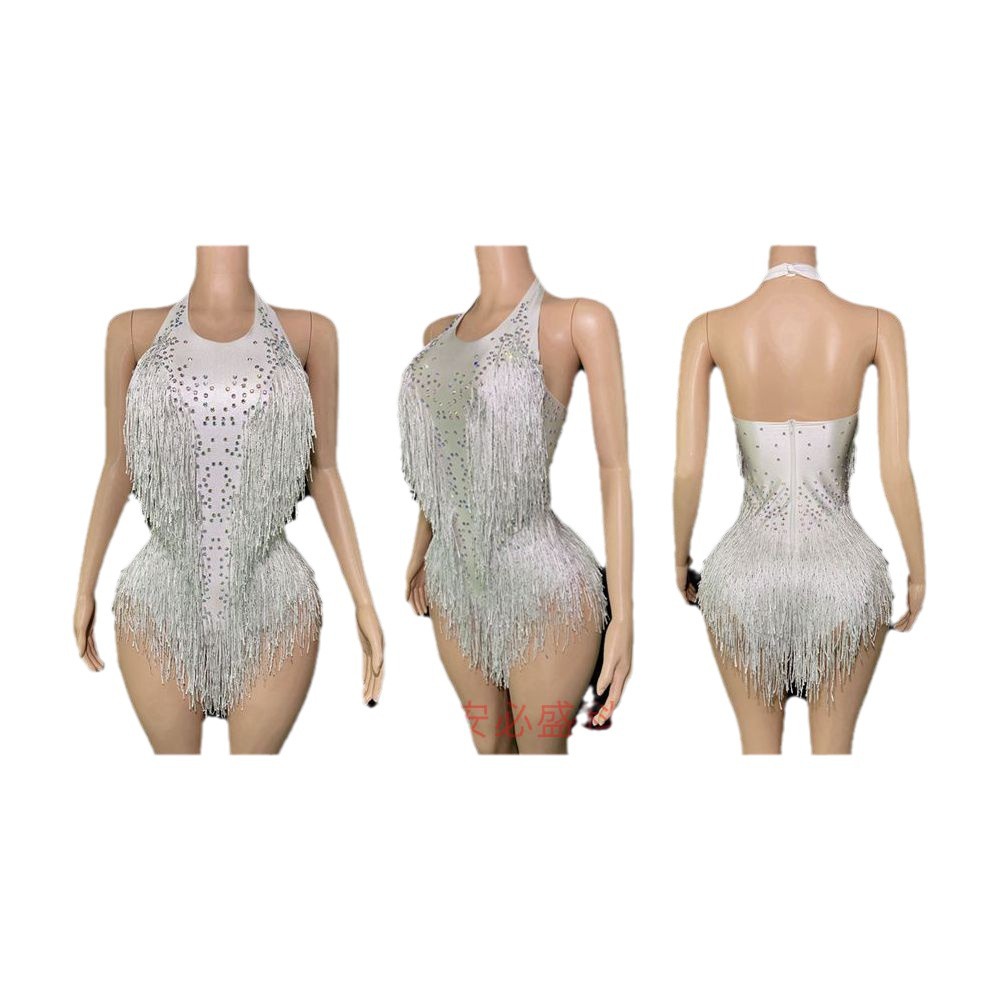 Хит продаж на Amazon: сексуальный безрукавный комбинезон с бахромой и яркими стразами для танцев, одежда для латиноамериканских танцев и соревнований.